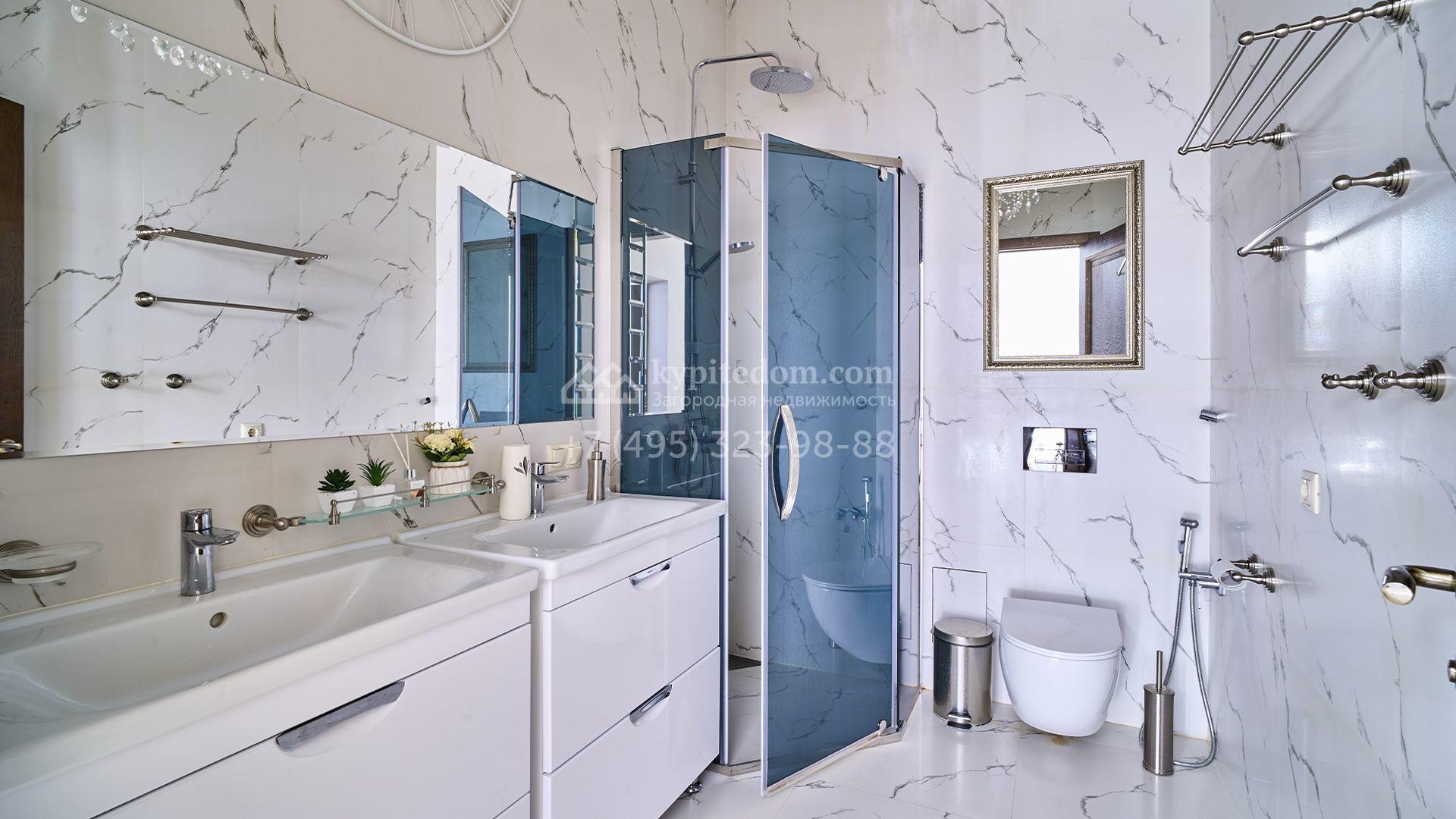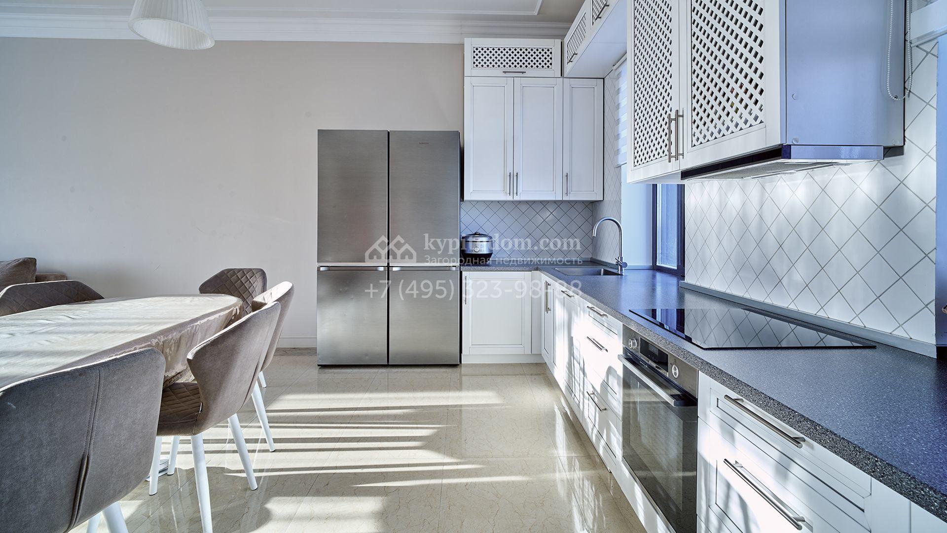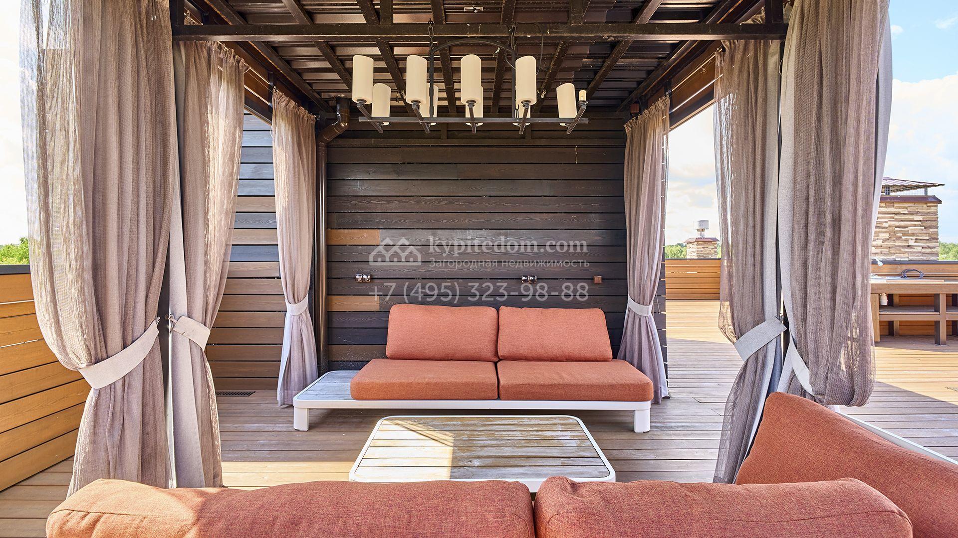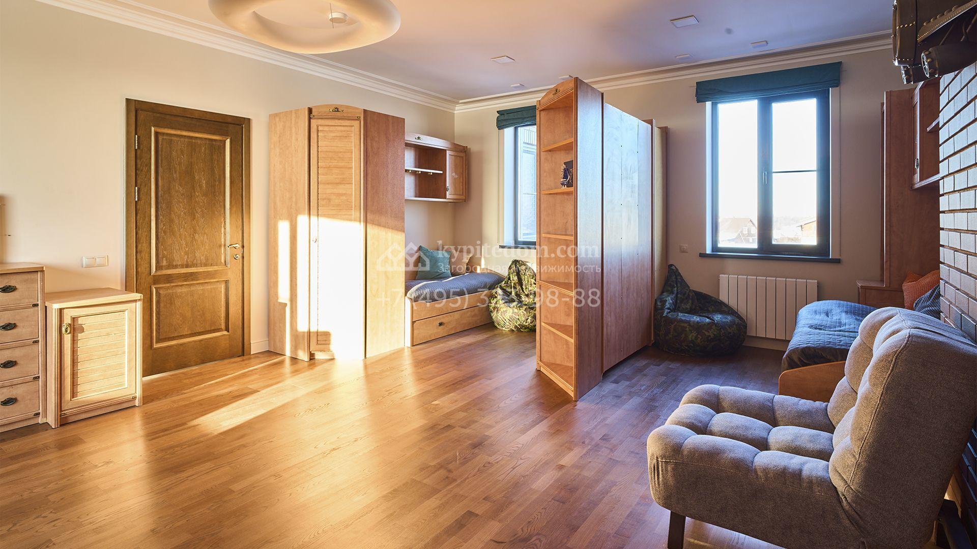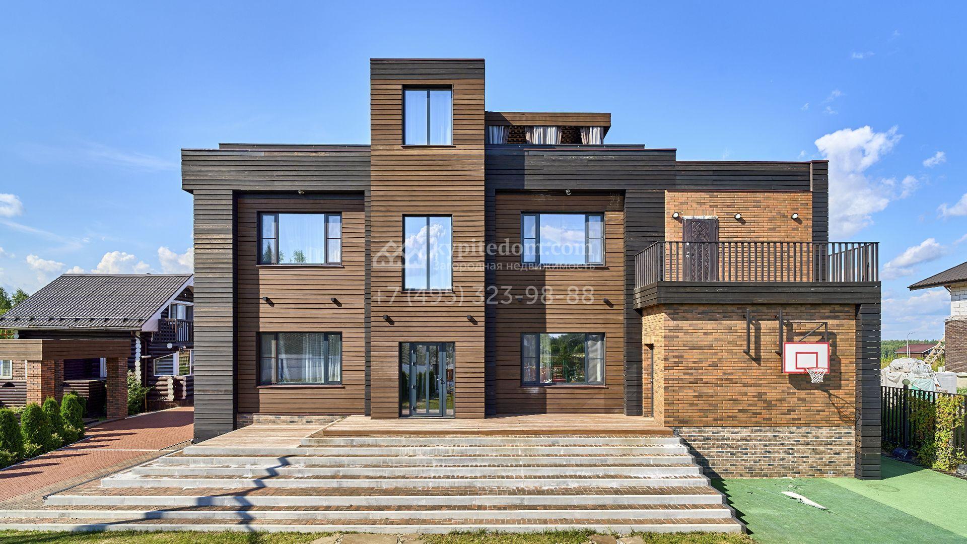 Загородный коттедж площадью 700 м² расположен на полевом участке 35 соток. Современный фасад с эффектной подсветкой и большими окнами облицован панелями с фактурой дерева и клинкерным кирпичом в гармоничной цветовой гамме. Интерьеры выполнены в светлых тонах, дополнены стильной мебелью, встроенной бытовой техникой и современной сантехникой, создавая атмосферу уюта и комфорта.