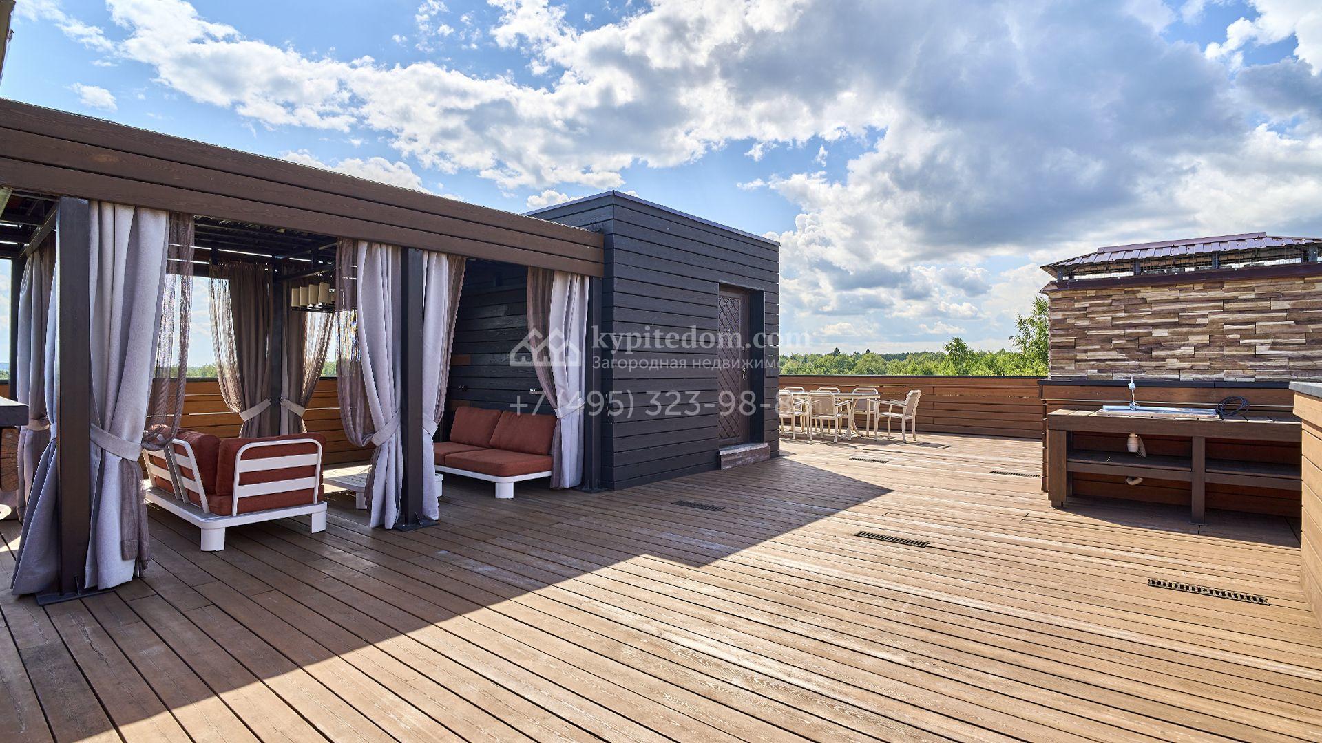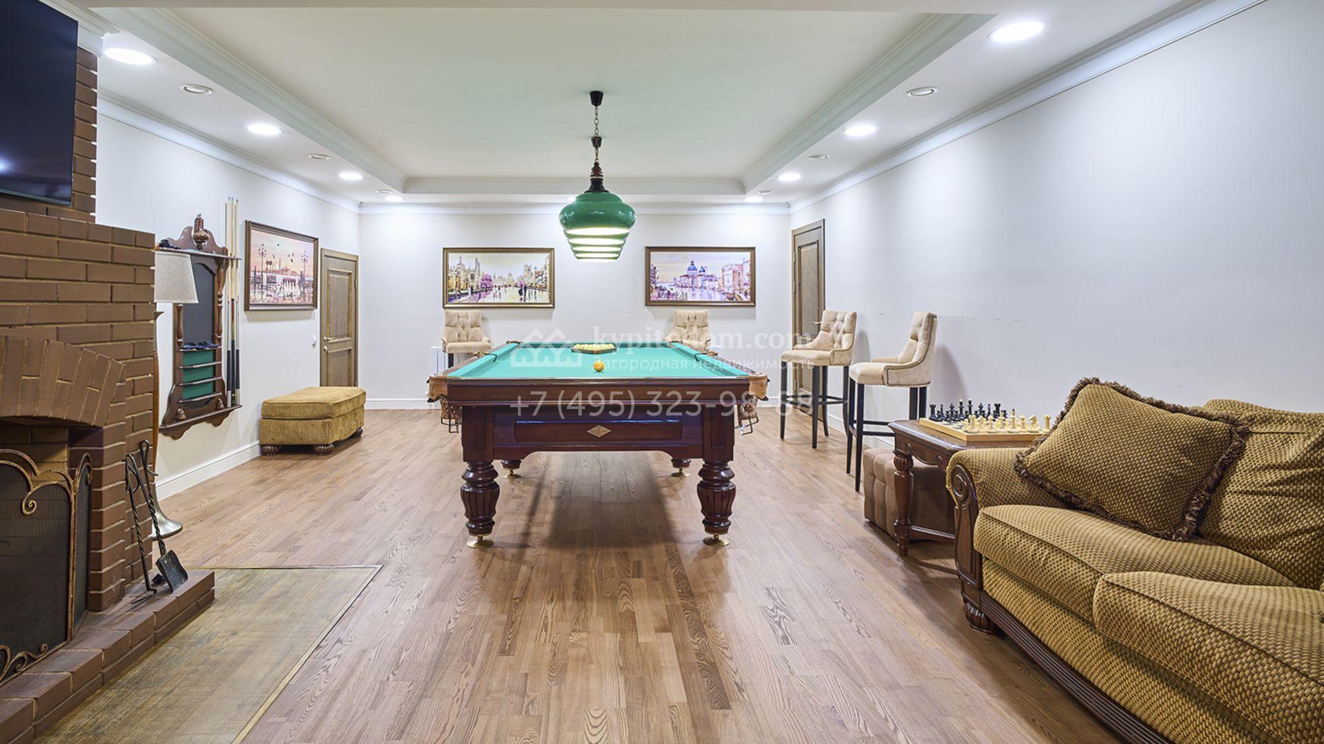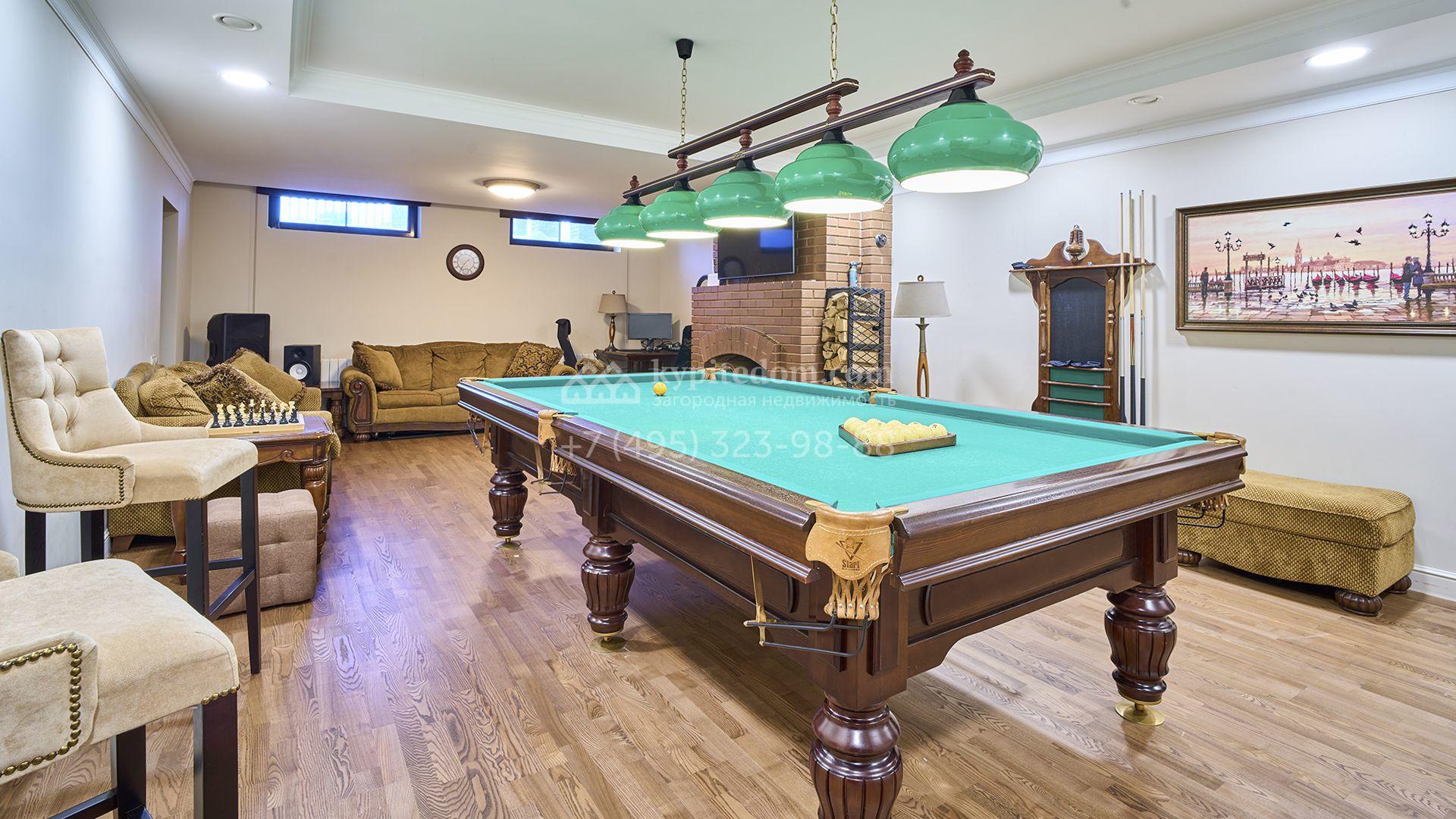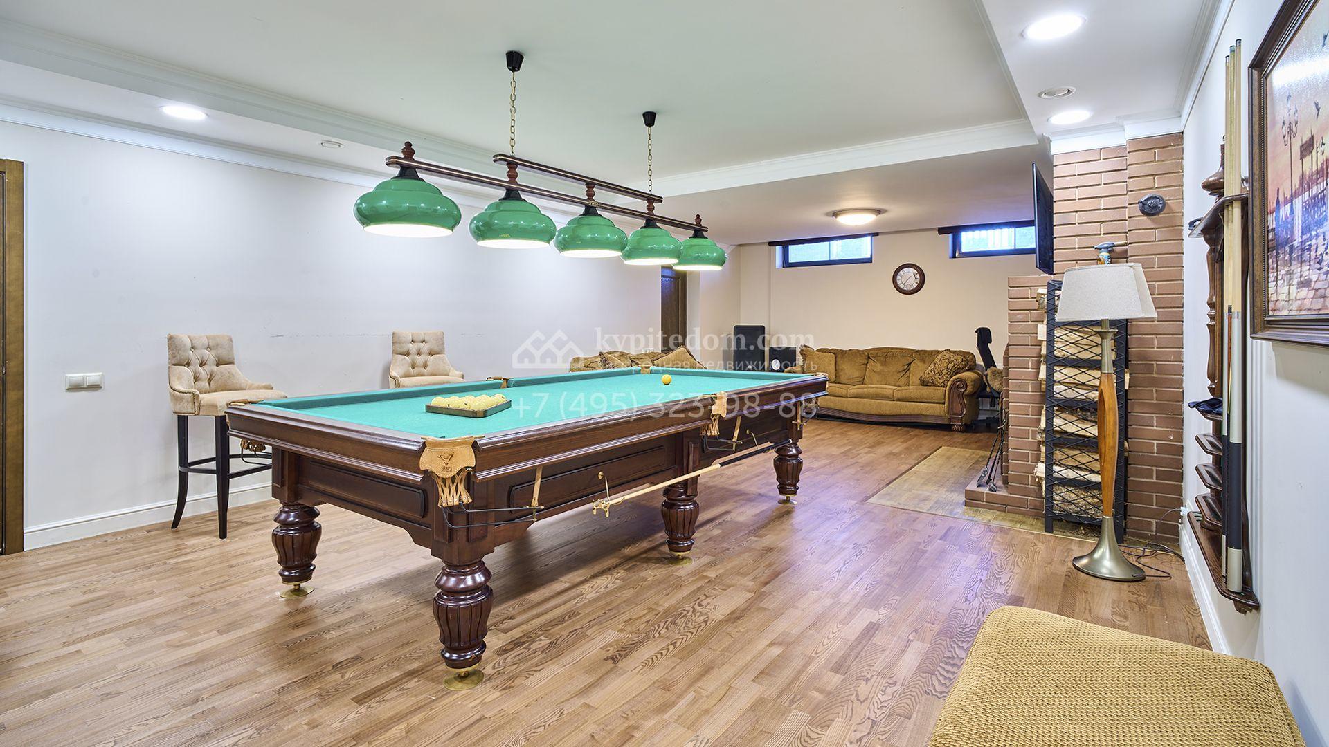 Планировка включает просторную гостиную-кухню-столовую для семейных обедов и приема гостей, удобный для работы кабинет, 3 спальни, спортивный зал с настольным теннисом, каминный зал с бильярдом, караоке и профессиональной акустикой, а также детскую игровую с аэрохоккеем и игрушками. На эксплуатируемой крыше площадью 150 м² разместили комфортную зону отдыха с панорамным видом на природу. Кроме того, в контуре дома предусмотрен гараж на 2 машины.