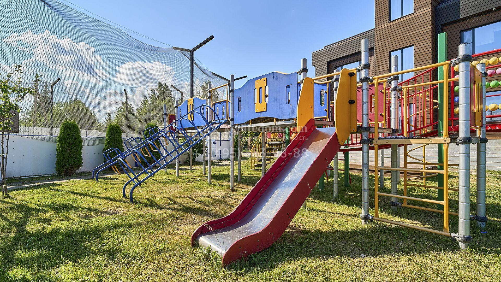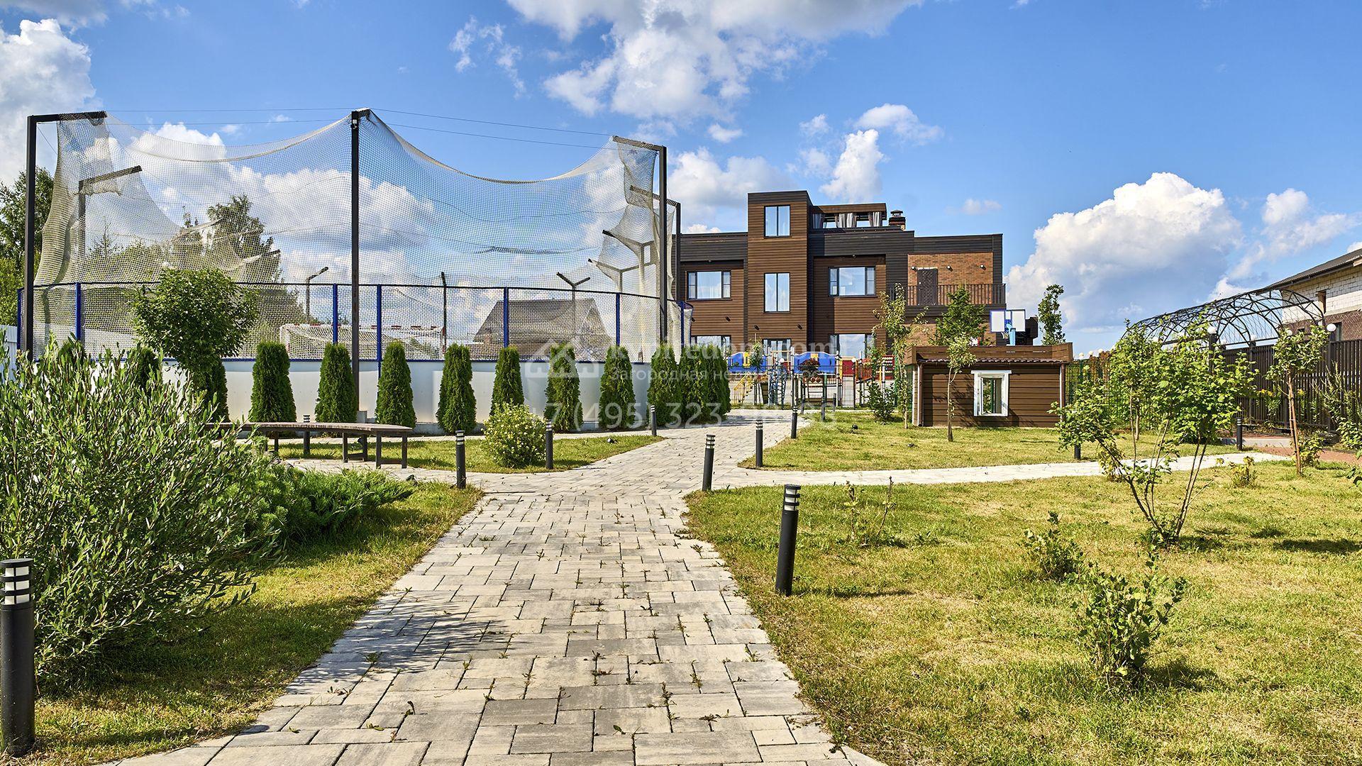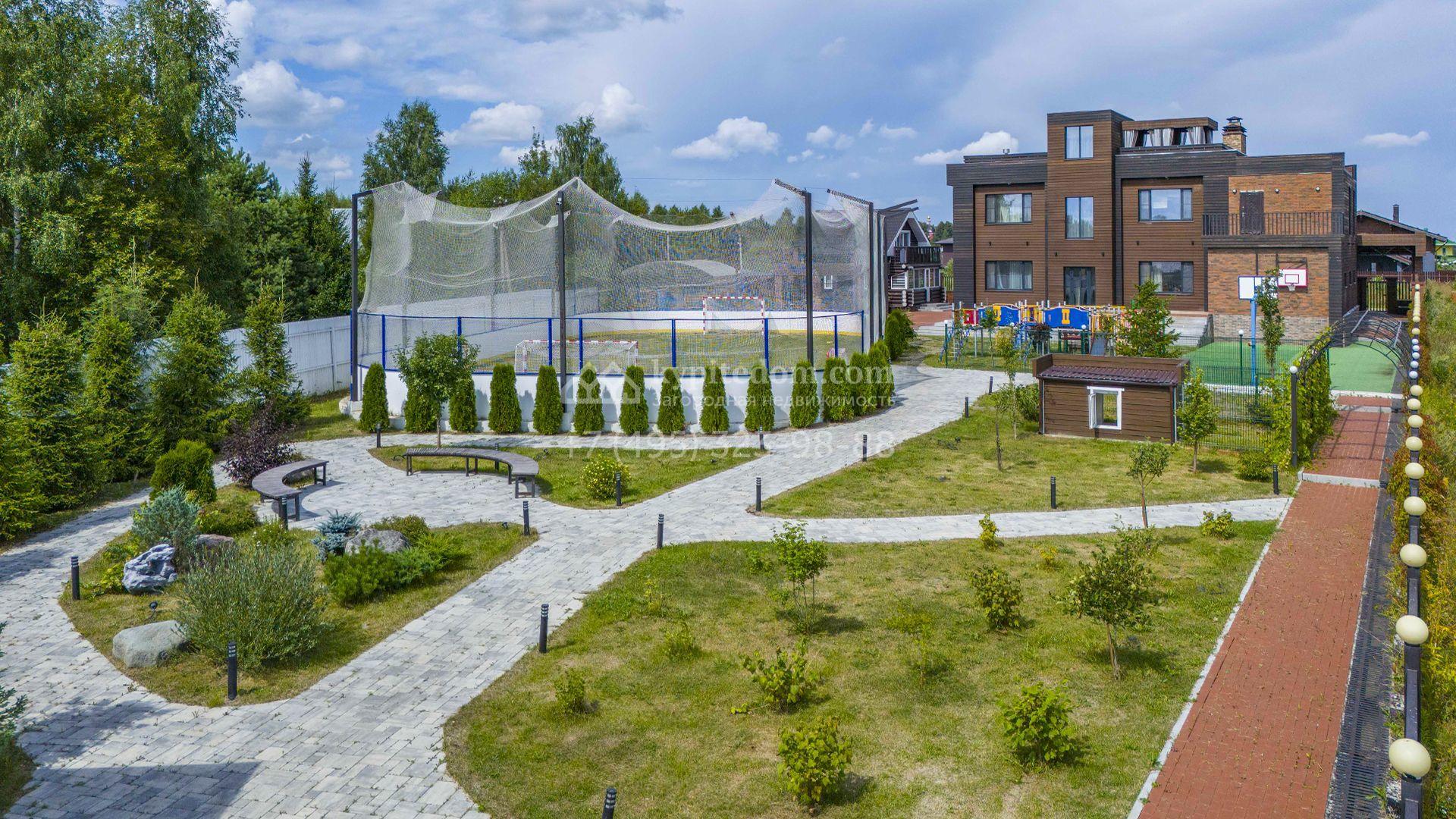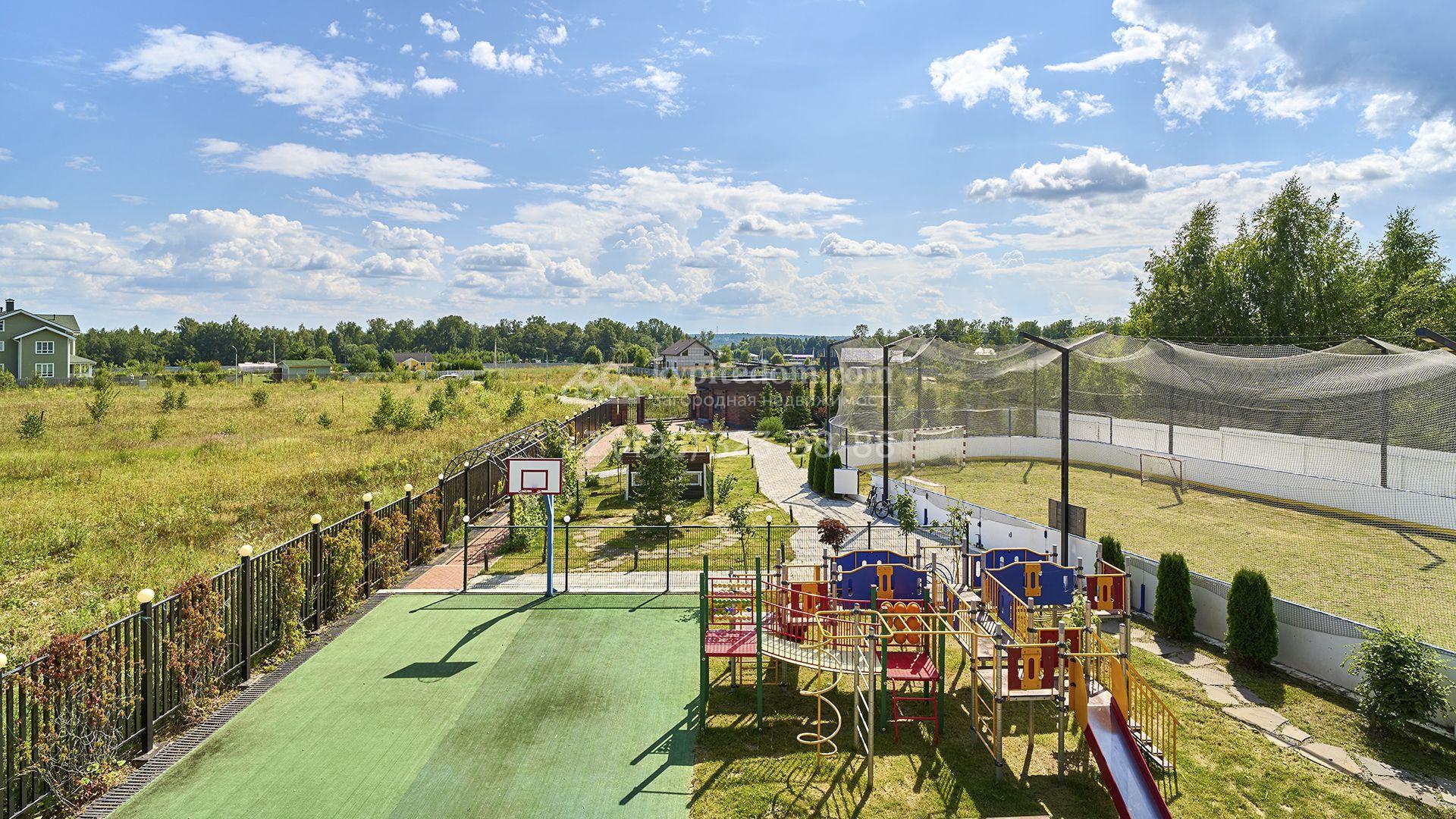 баскетбольная площадка, детская площадка с песочницей, вольер для собак с освещением и ограждением, беседка для барбекю и патио, идеально подходящее для вечерних посиделок у огня. В рамках ландшафтного дизайна на участке засеян газон, растут деревья и кустарники, вымощены дорожки, оборудовано уличное освещение и обустроен сад для уединения и восстановления сил.
