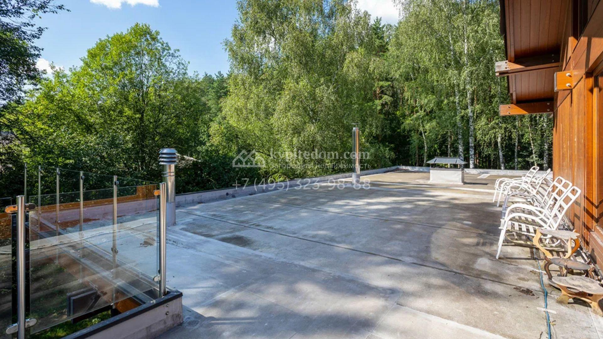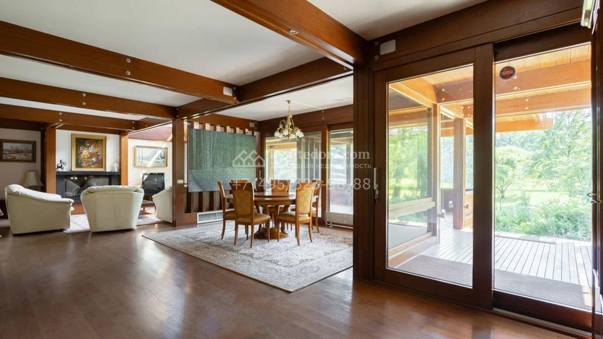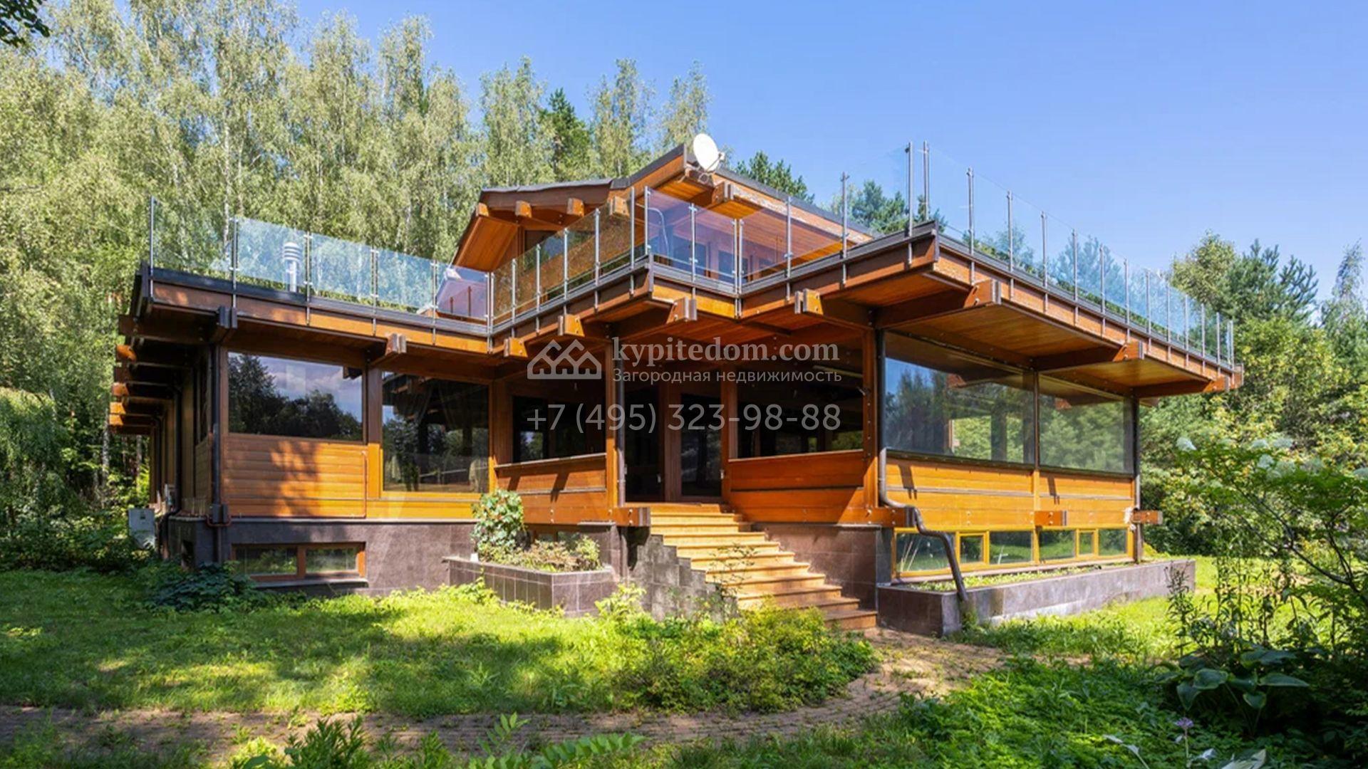 Загородный коттедж площадью 687 м² расположен на участке 32,1 сотка с видом на гольф-поле. Фасад в стиле шале, созданный по проекту итальянского конструкторского бюро Pagano, облицован лиственницей, шпонированной красным деревом. Панорамное остекление стирает границы между внутренним пространством и живописной природой, а высокие разноуровневые потолки и второй свет создают ощущение лёгкости и свободы.