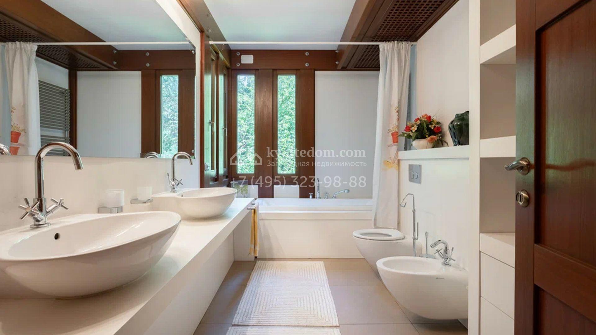 Внутреннее пространство выдержано в элегантной спокойной гамме с акцентом на натуральные материалы, что придаёт атмосферу умиротворённой роскоши. Каждую деталь — от комфортной мебели и текстиля до предметов декора — подбирали с безупречным вкусом. Для поддержания приятного микроклимата в доме установлена современная система приточно-вытяжной вентиляции.