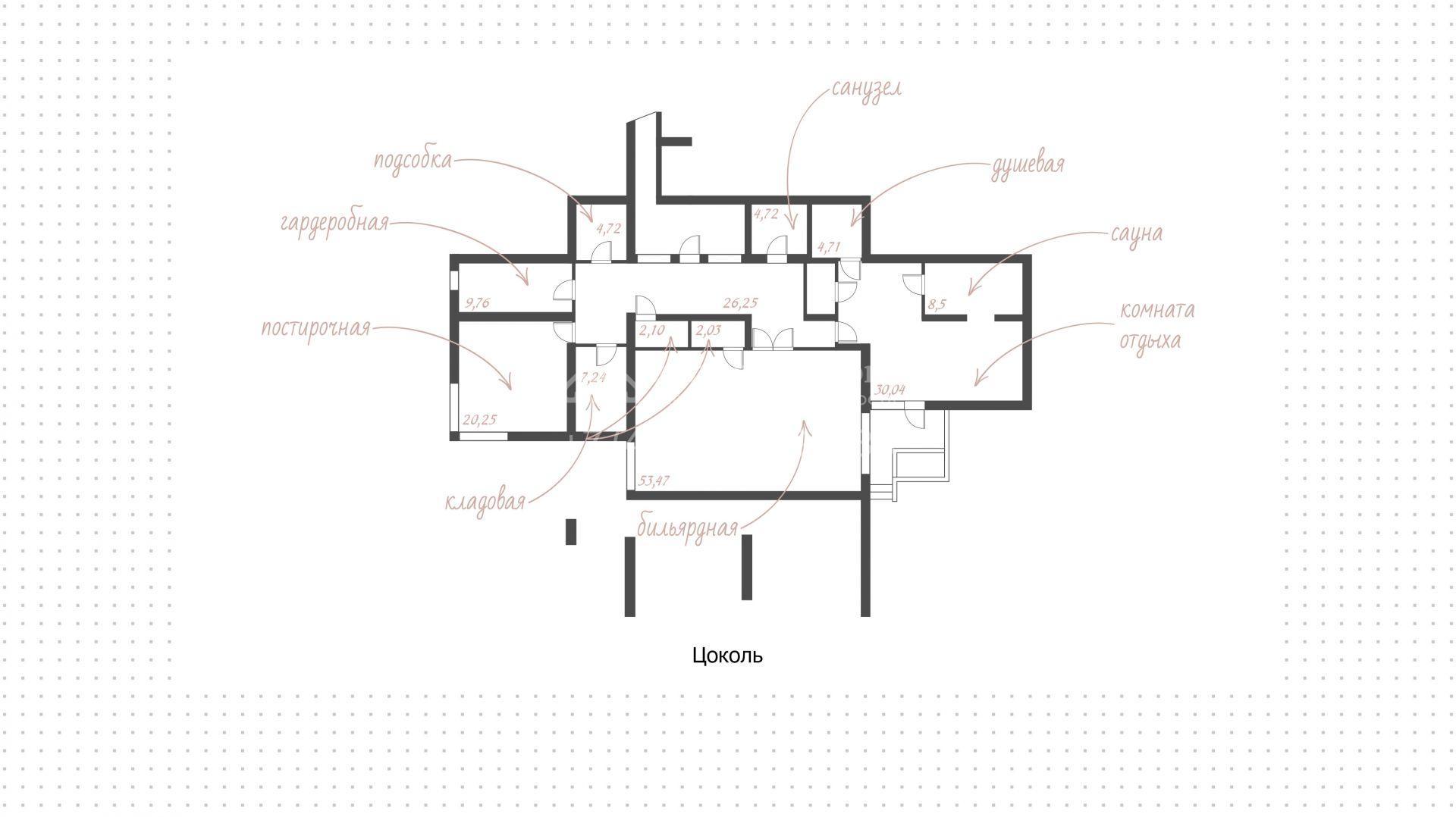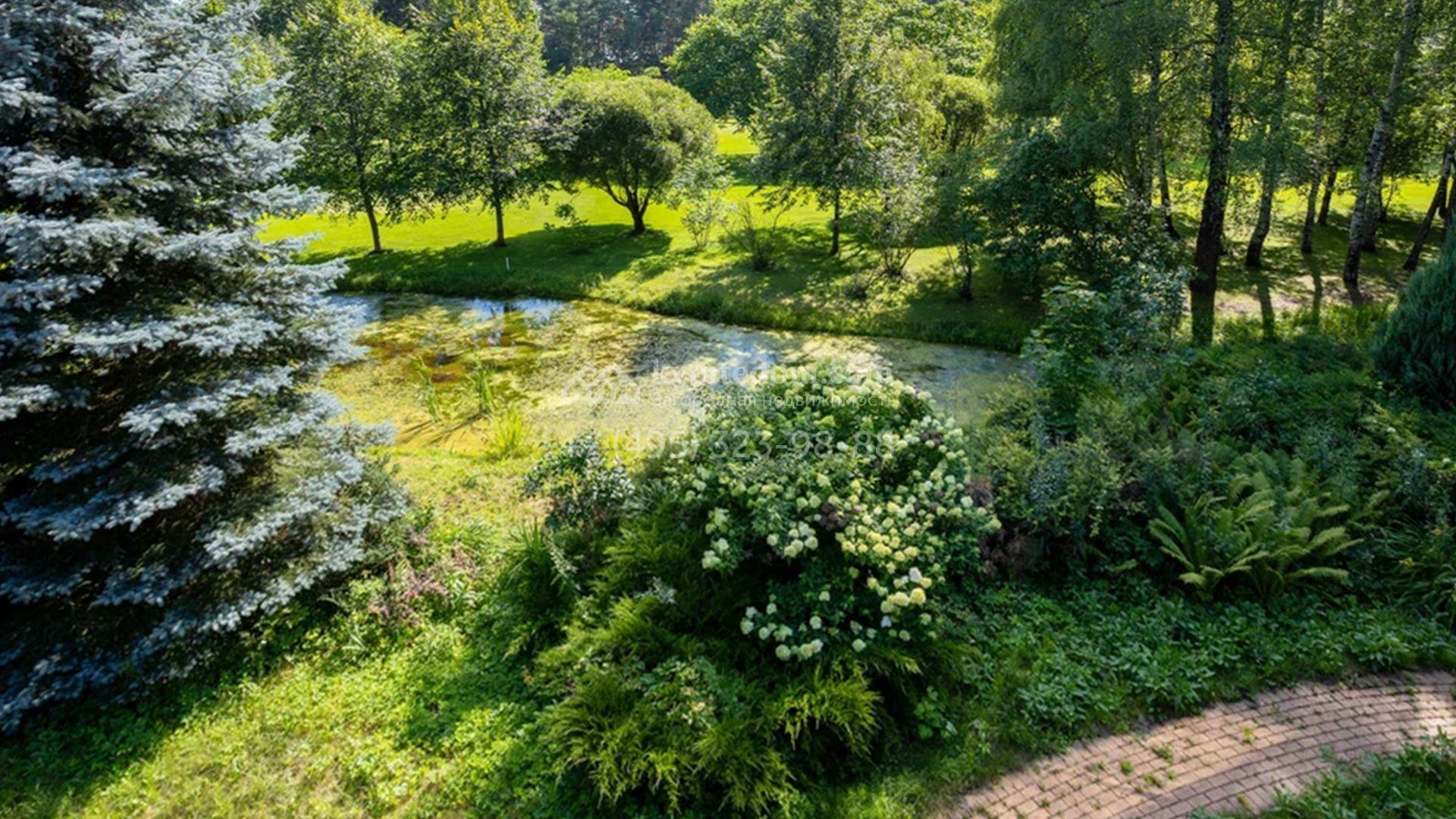Планировка включает просторную гостиную-столовую с камином, оборудованную кухню, 2 спальни с гардеробными, кабинет и уютную веранду. На цокольном этаже обустроили бильярдную и спа-зону с сауной и комнатой отдыха. Эксплуатируемая кровля станет идеальным местом для отдыха под звёздным небом. Для автомобилей предусмотрен встроенный двухместный гараж. На участке вдохните запах свежескошенной травы, прогуливаясь по мощеным дорожкам в тени хвойных и лиственных деревьев, и любуйтесь небольшим озером у дома.