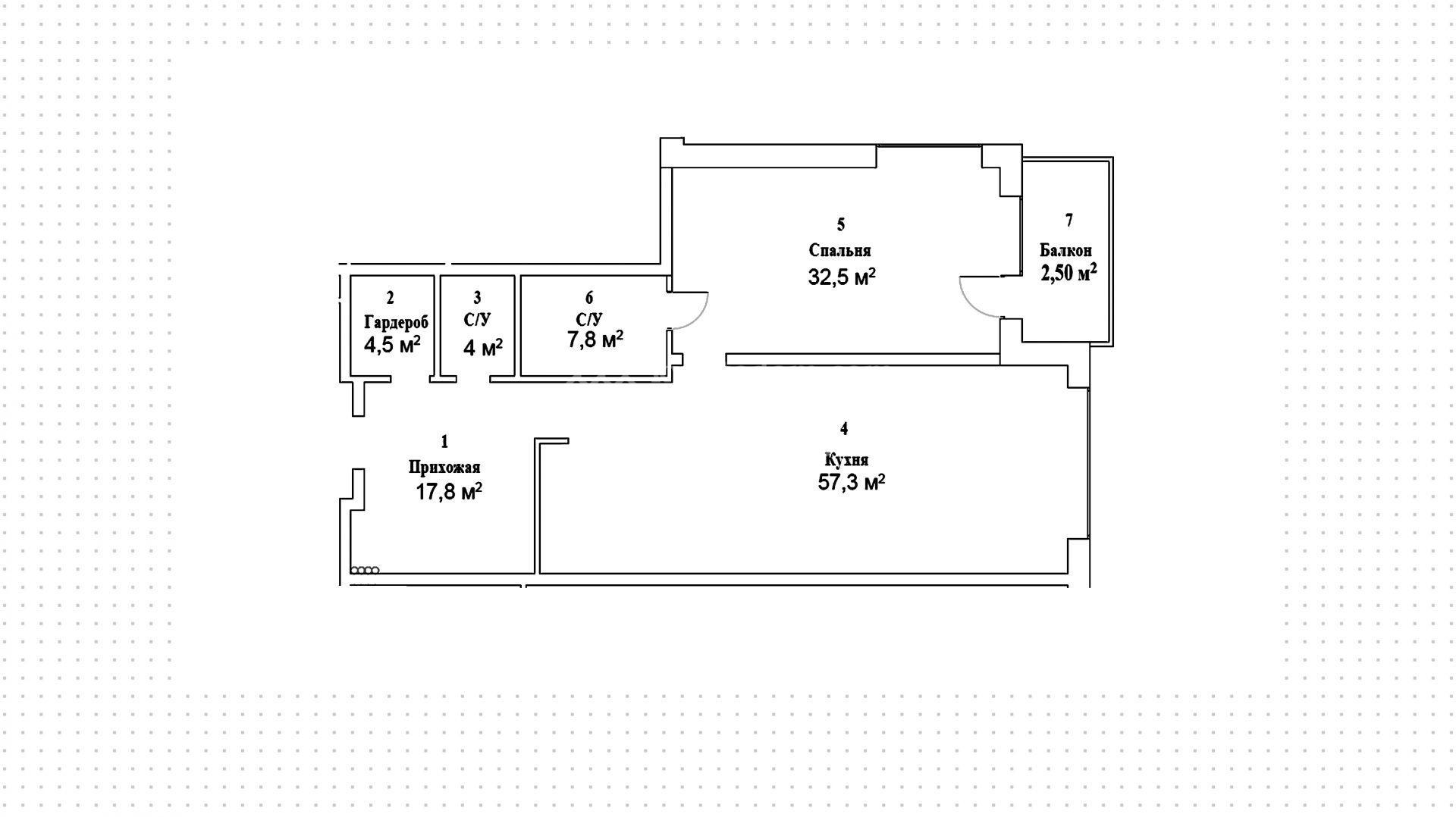 Квартира с большими окнами и качественной отделкой на втором этаже. Площадь помещения — 123 м². Здесь расположена прихожая с гардеробной и санузлом, просторная кухня, спальня с ванной комнатой и выходом на балкон.