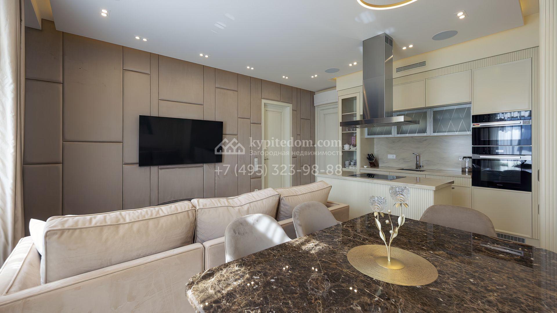 Просторная квартира площадью 106 м² расположена на 3-м этаже в премиальном поселке «Павлово-2» на Новой Риге. Внутри выполнен авторский ремонт в современном стиле, где сочетаются четкая композиция, выразительные геометрические линии и сдержанная элегантность. Для комфорта предусмотрены потолочная аудиосистема, рекуперация воздуха и «тёплые полы», обеспечивающие мягкий, равномерный микроклимат во всех комнатах.