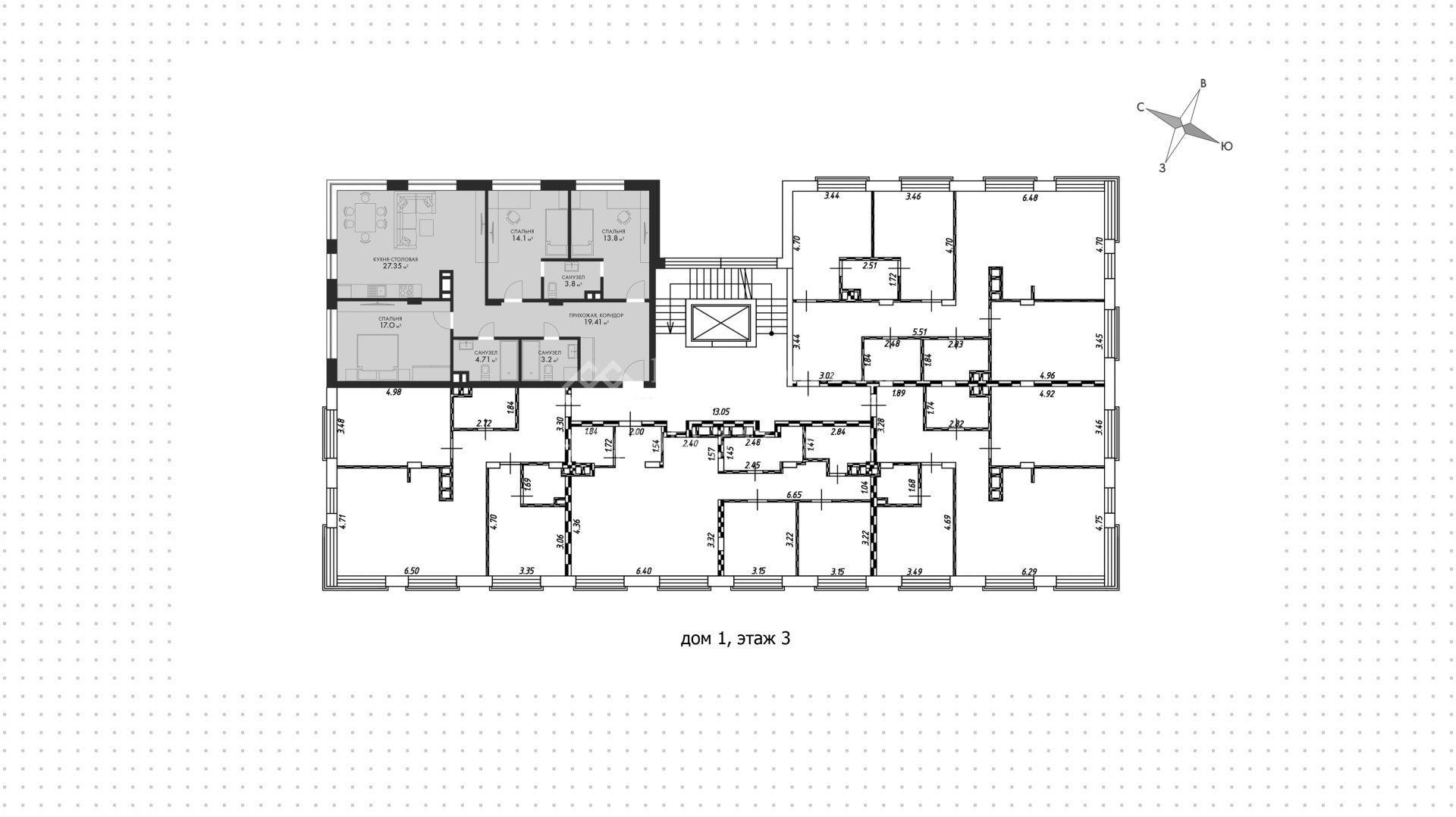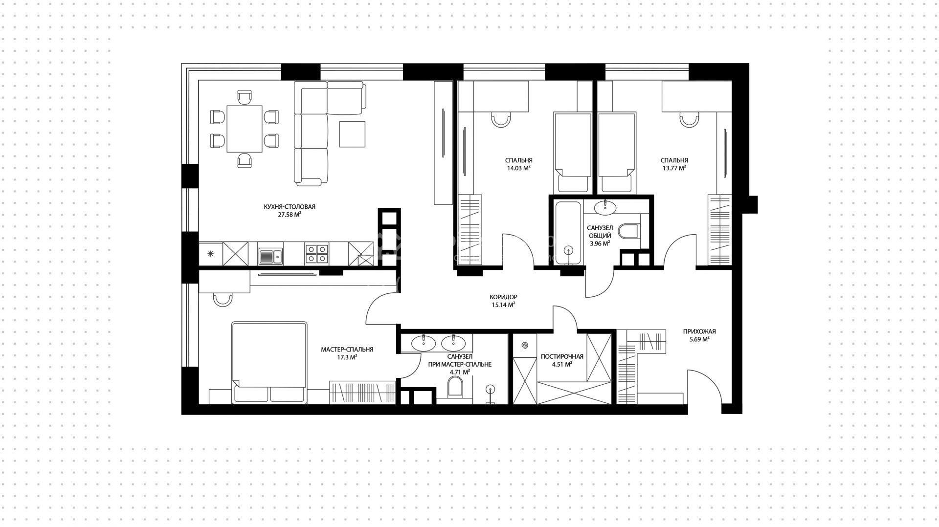 Квартира с 3-мя спальнями,