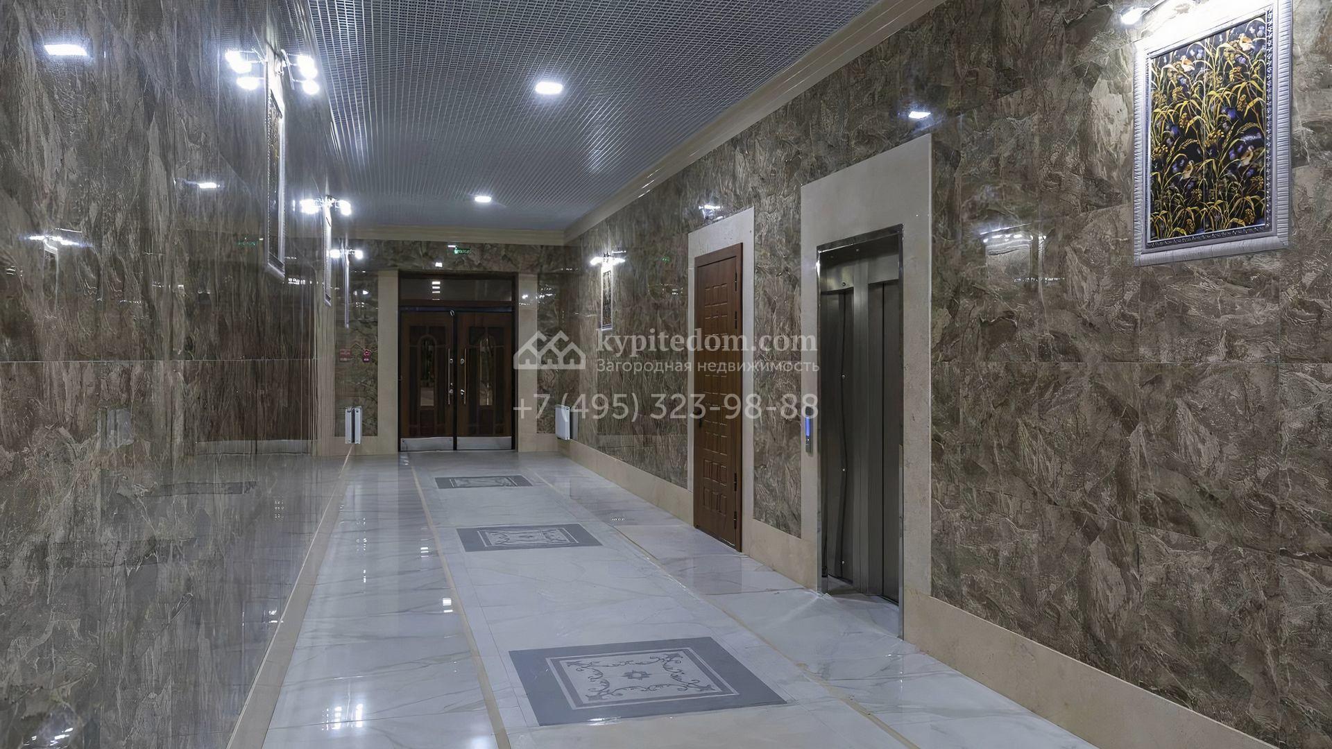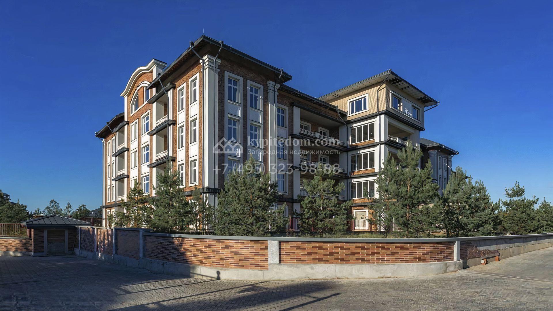 Просторная квартира с 3-мя спальнями в клубном доме Азарово на Рублево-Успенском шоссе. Квартира с отделкой общей площадью 184 м² расположена на 2-м этаже. Проект включает кухню-гостиную, 3 спальни с гардеробными, 2 санузла и балкон, откуда открываются живописные виды на многовековые хвойные деревья.