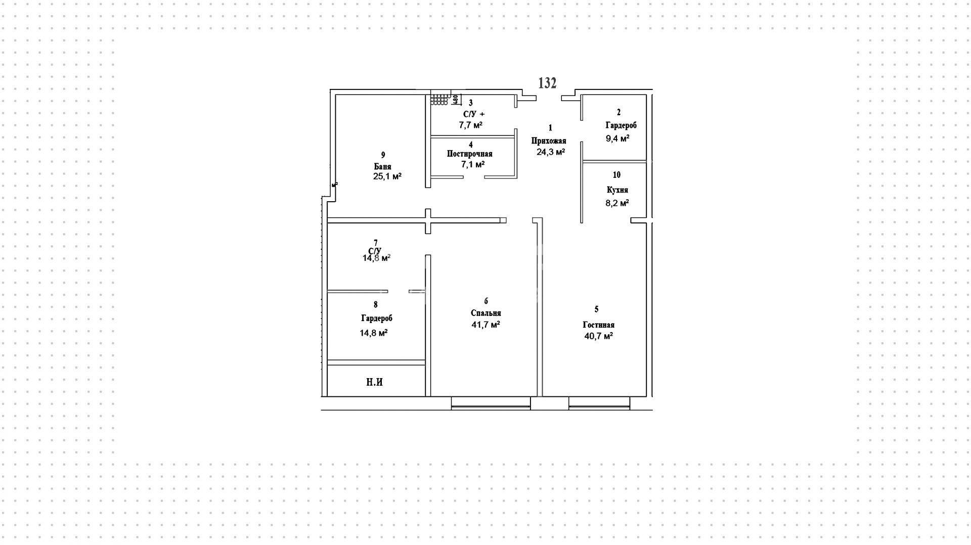 Большая квартира с одной спальней и сауной продается без отделки. Она расположена на пятом этаже и включает прихожую с гардеробной и гостевым санузлом. постирочную, светлую кухню, гостиную, спальню с санузлом и гардеробной, и баню 25 м².