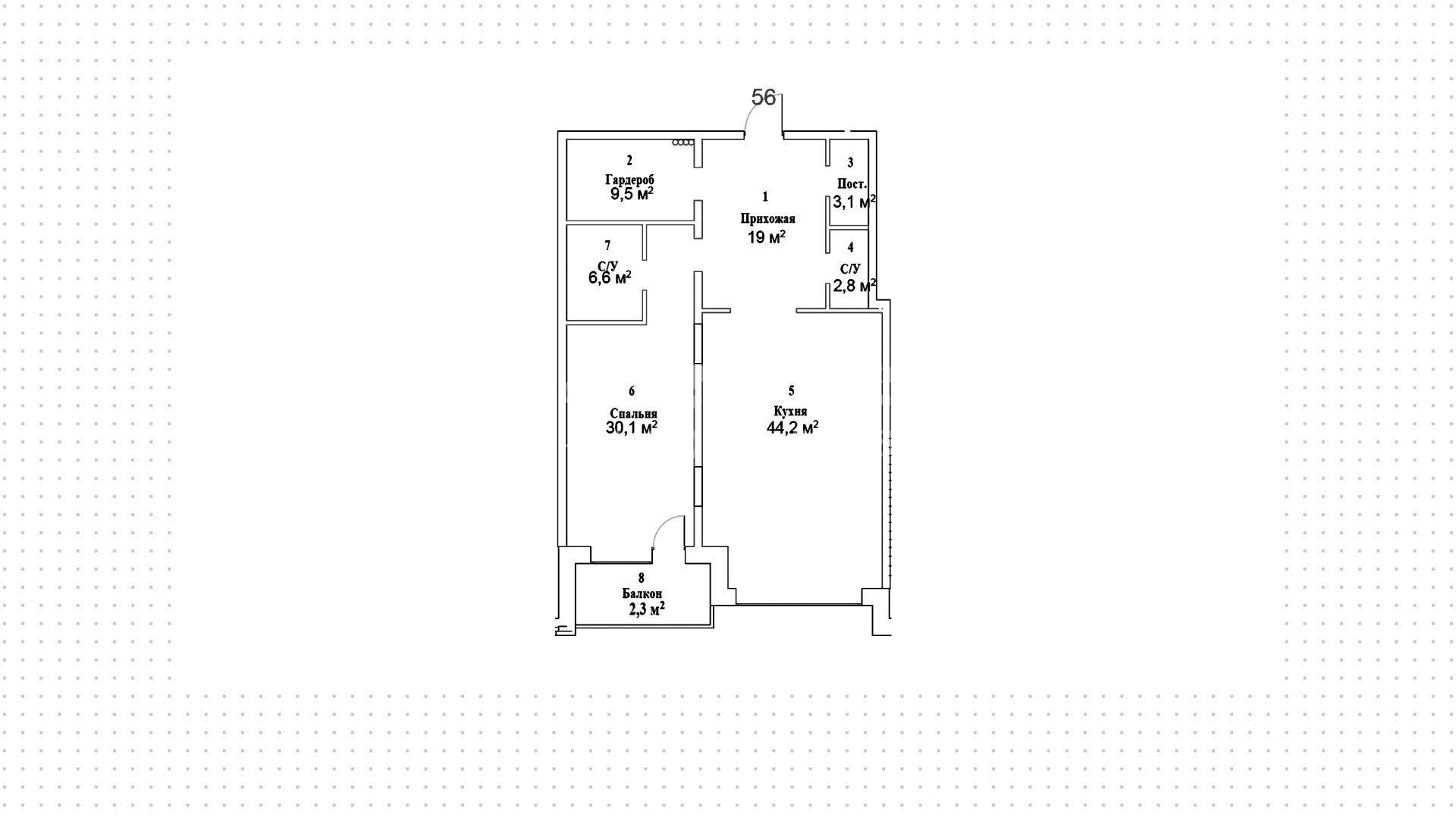 Квартира на втором этаже с отделкой. На площади 112 м² — гардеробная, постирочная, санузел и спальня с санузлом, гардеробной и выходом на балкон. Квартира оборудована системой кондиционирования и теплыми полами.