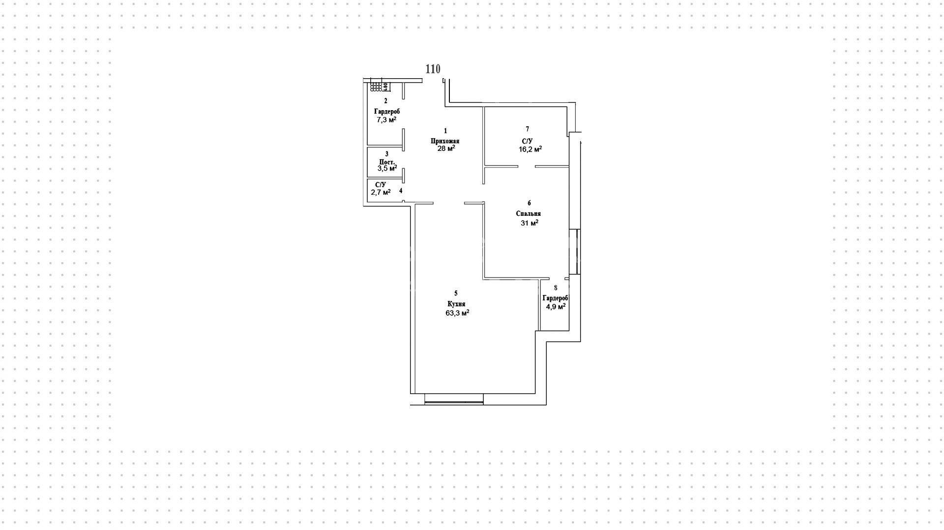 Уютная квартира на четвертом этаже. На площади 148 м² — спальня с личной ванной комнатой и гардеробной, гардероб, постирочная, гостевой санузел и светлая кухня. Квартира предлагается без отделки, работает система кондиционирования.
