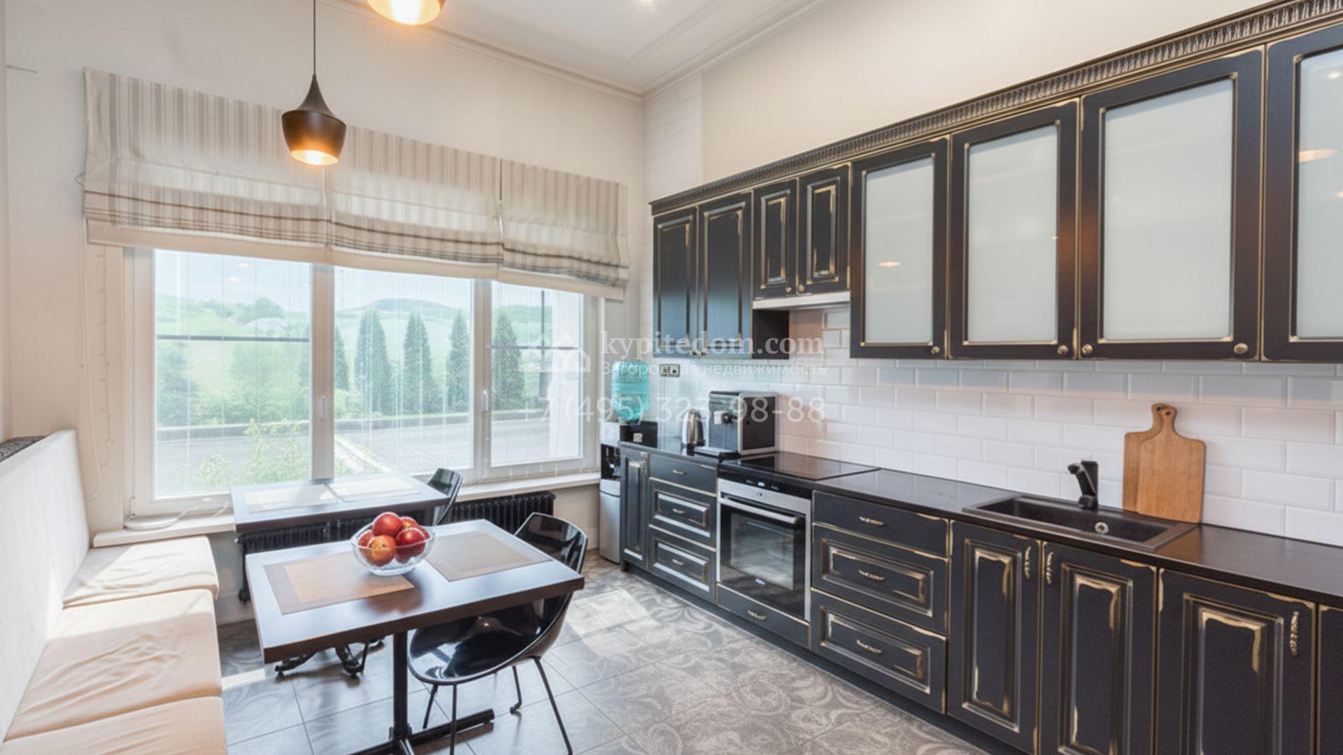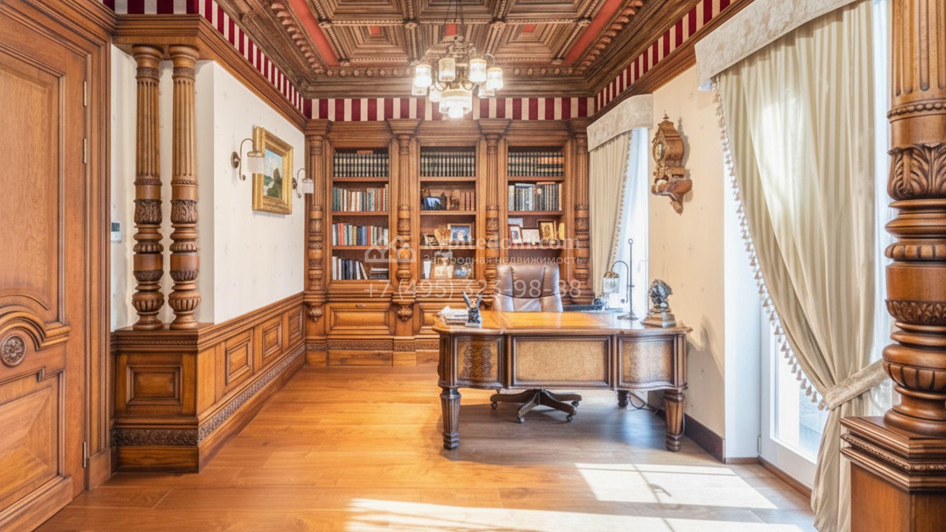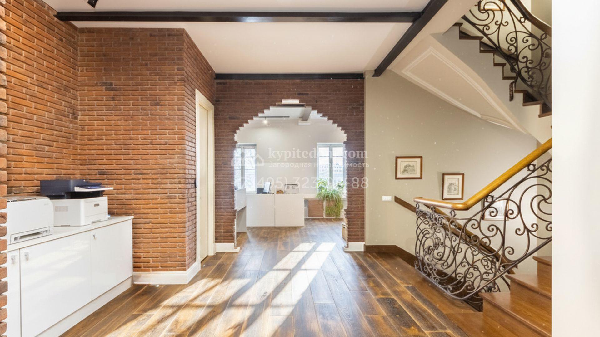 Загородный дом в европейском стиле площадью 395 м² построен на прилесном участке 2 сотки. В таунхаусе проведён дизайнерский ремонт для офиса, объединяющий классический стиль и современную классику. В отделке используются высококачественные материалы — панели из ценных пород дерева, паркетная доска, декоративные молдинги. Пространство грамотно спроектировано и включает ресепшен, рабочие зоны, переговорную комнату, кабинет руководителя, кухню, 3 санузла и зоны отдыха для сотрудников.