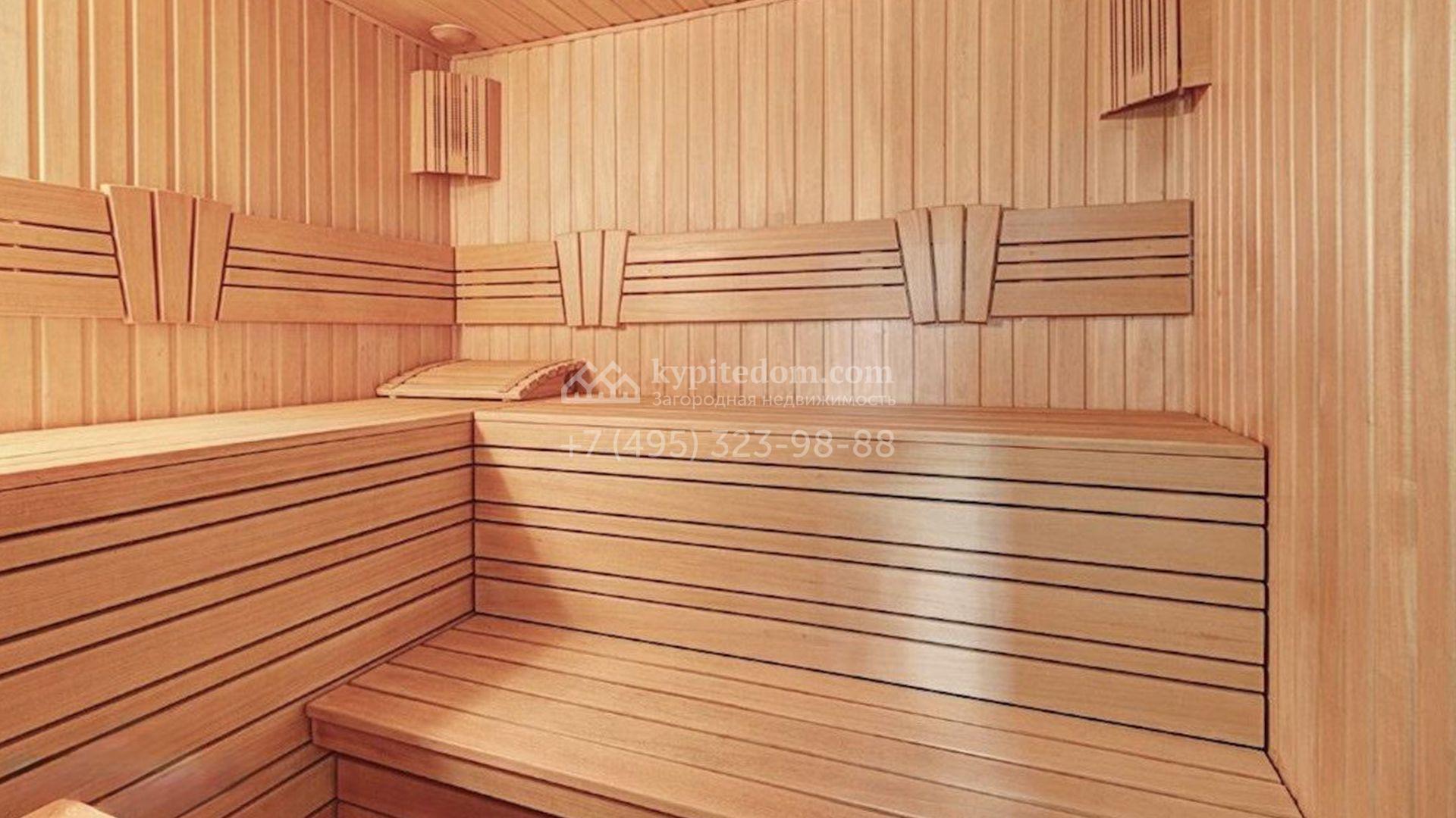 Планировка включает уютную гостиную, оборудованную кухню, каминный зал, кабинет, 6 просторных спален, SPA-зону с бассейном и сауной и 2 комнаты свободного назначения, которые можно использовать в качестве библиотеки, бильярдной или спортзала. На террасе обустроено место для отдыха на свежем воздухе, где можно наслаждаться природой и тишиной.