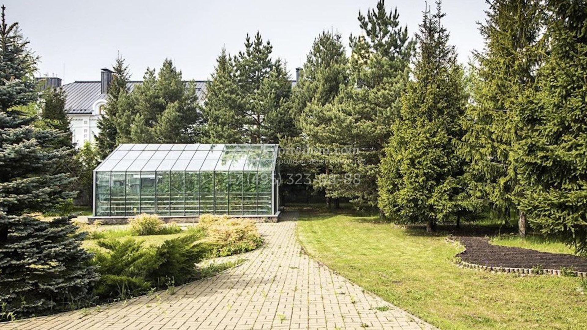Рядом с основным зданием построены дом для персонала площадью 150 м² с гаражом на 3 машины, дополнительный открытый бассейн, теплица и парковка на 6 автомобилей. Участок благоустроен — здесь уложен газон, высажены декоративные кустарники, растут взрослые деревья, вымощена дорожки и установлено уличное освещение, создающее приятную атмосферу в вечернее время.