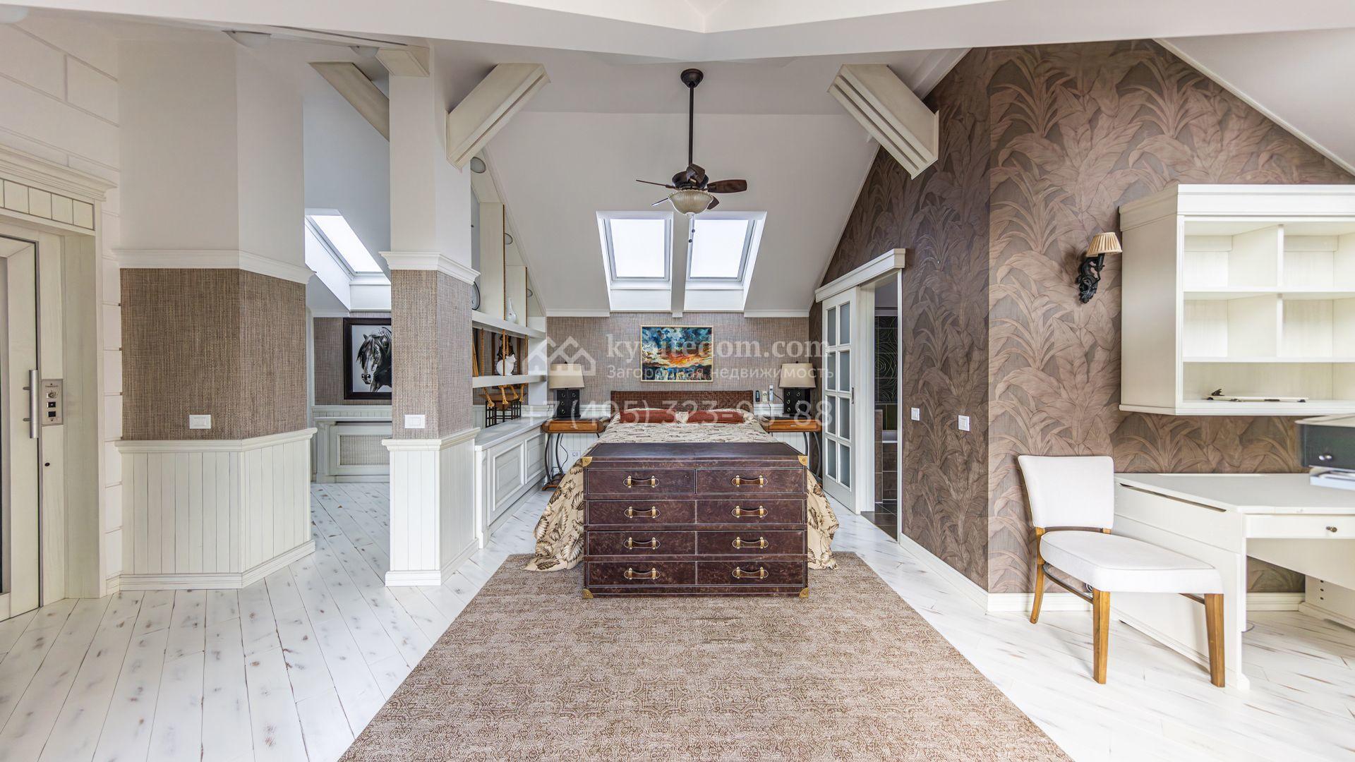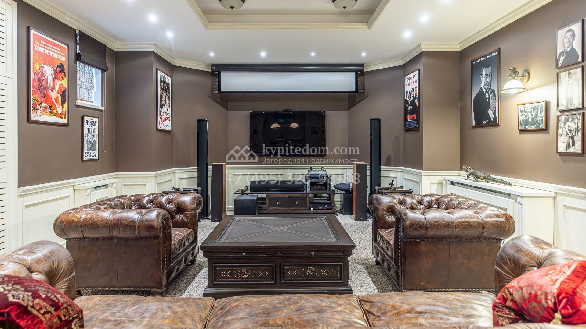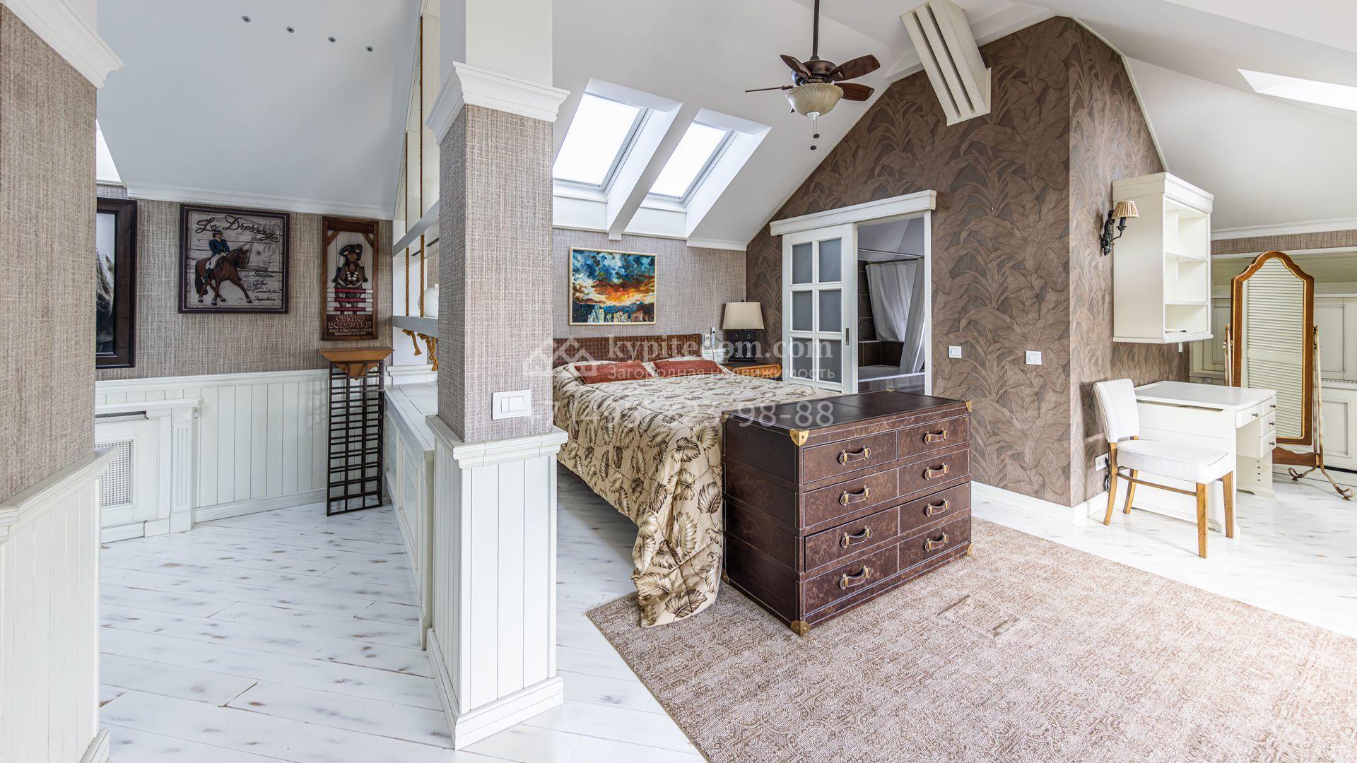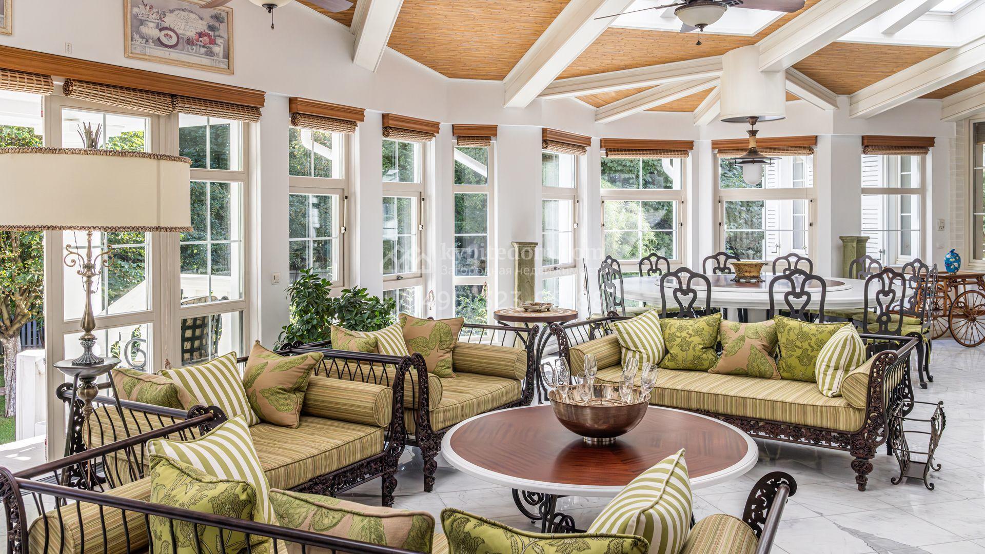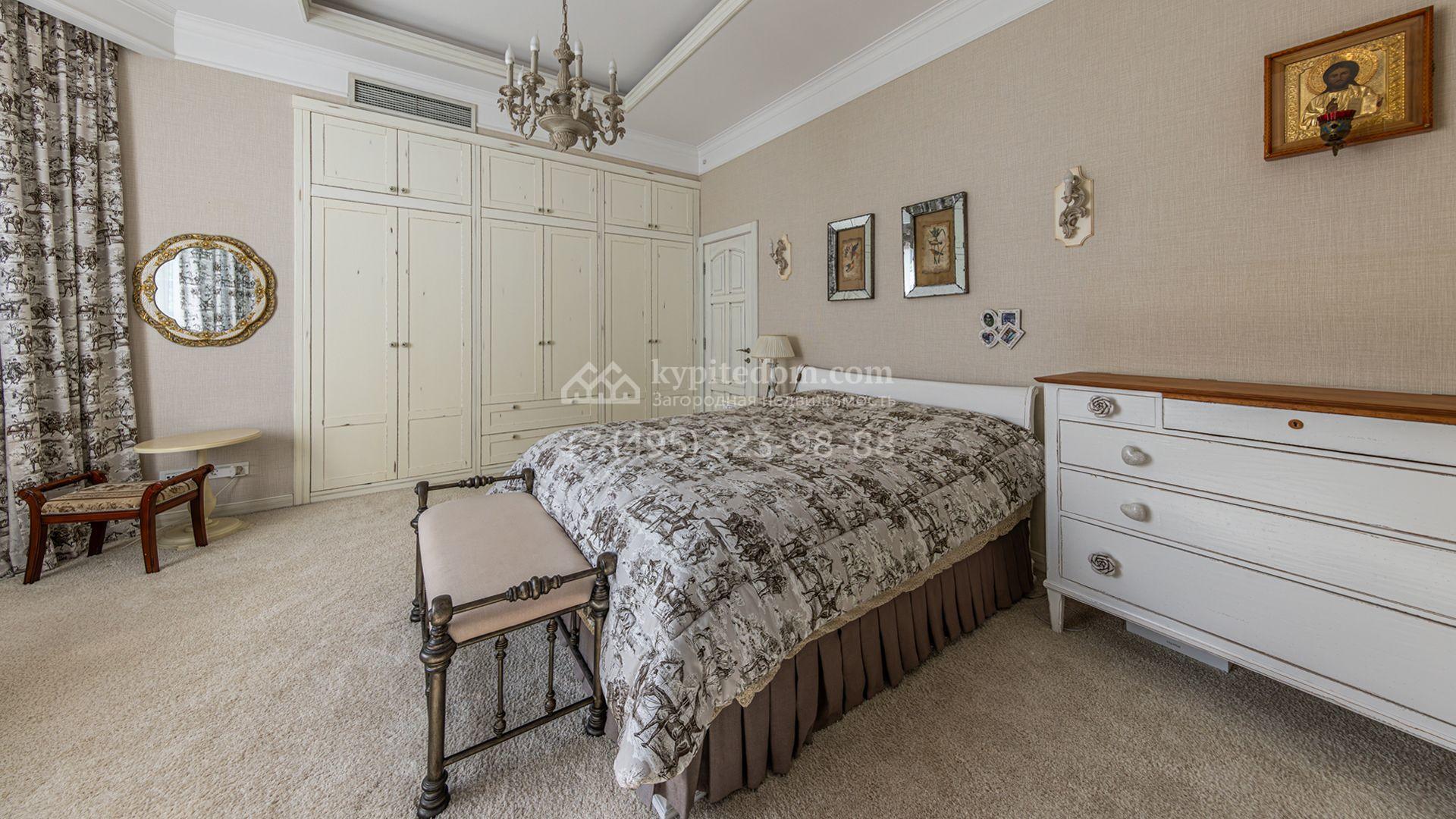 Загородная резиденция площадью 1245 м² расположена на просторном участке 50 соток. Фасад здания в классическом стиле облицован молочным кликером и декорирован колоннами, балясинами и ставнями. В отделке светлого интерьера преобладают теплые оттенки, создающие атмосферу уюта. Планировкой дома предусмотрены 5 спален, гостиная с камином, столовая с камином, рабочая с выходом в гараж и лестницей на цокольный этаж и парадная кухни, кабинет с зоной отдыха, зимний сад, веранда с барной зоной, столом на 12 персон, диванной зоной и отдельным выходом в сад, бильярдная-кинозал и гараж на 2 машины.