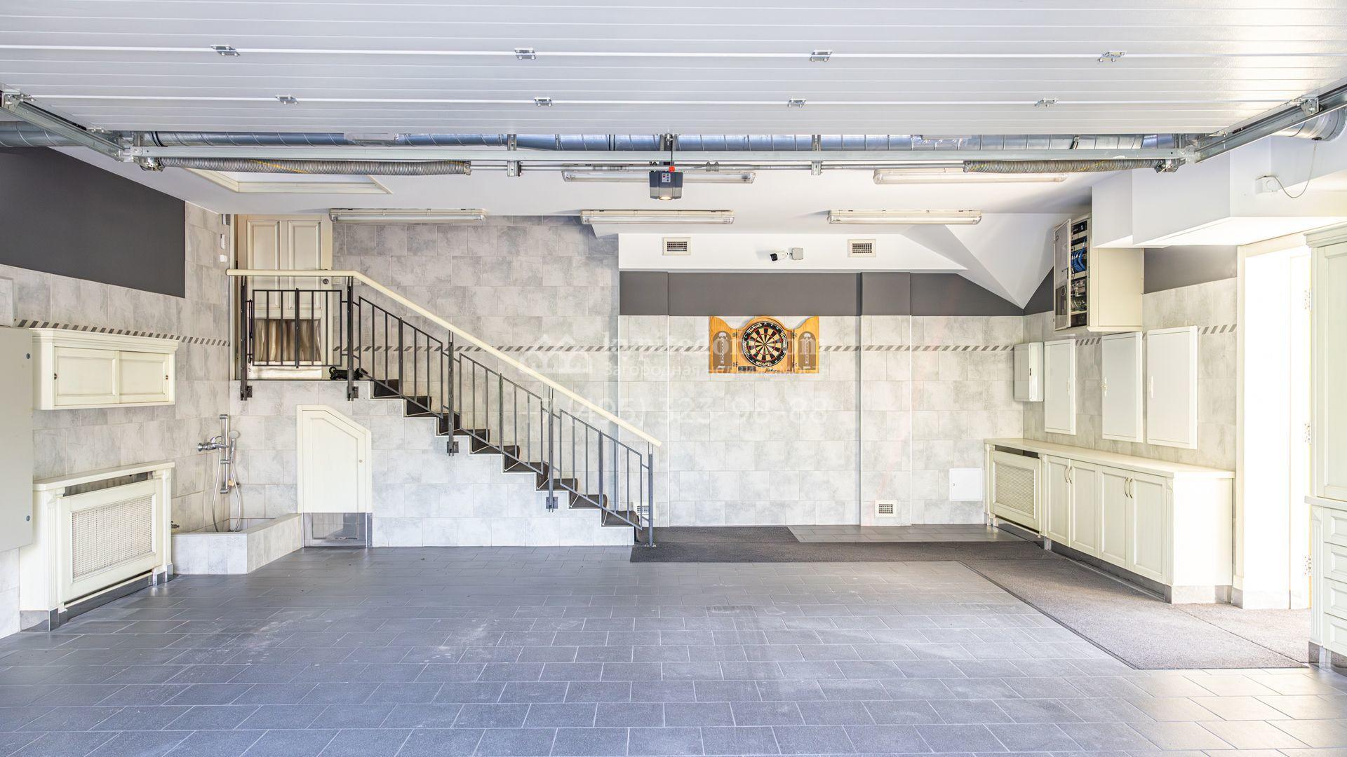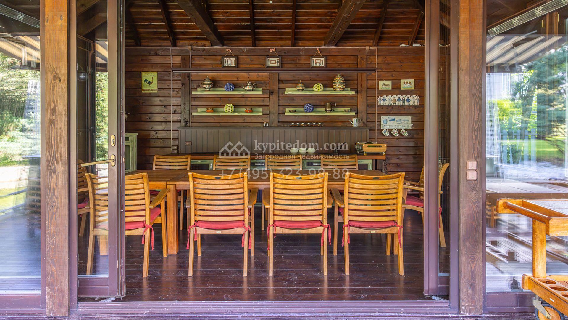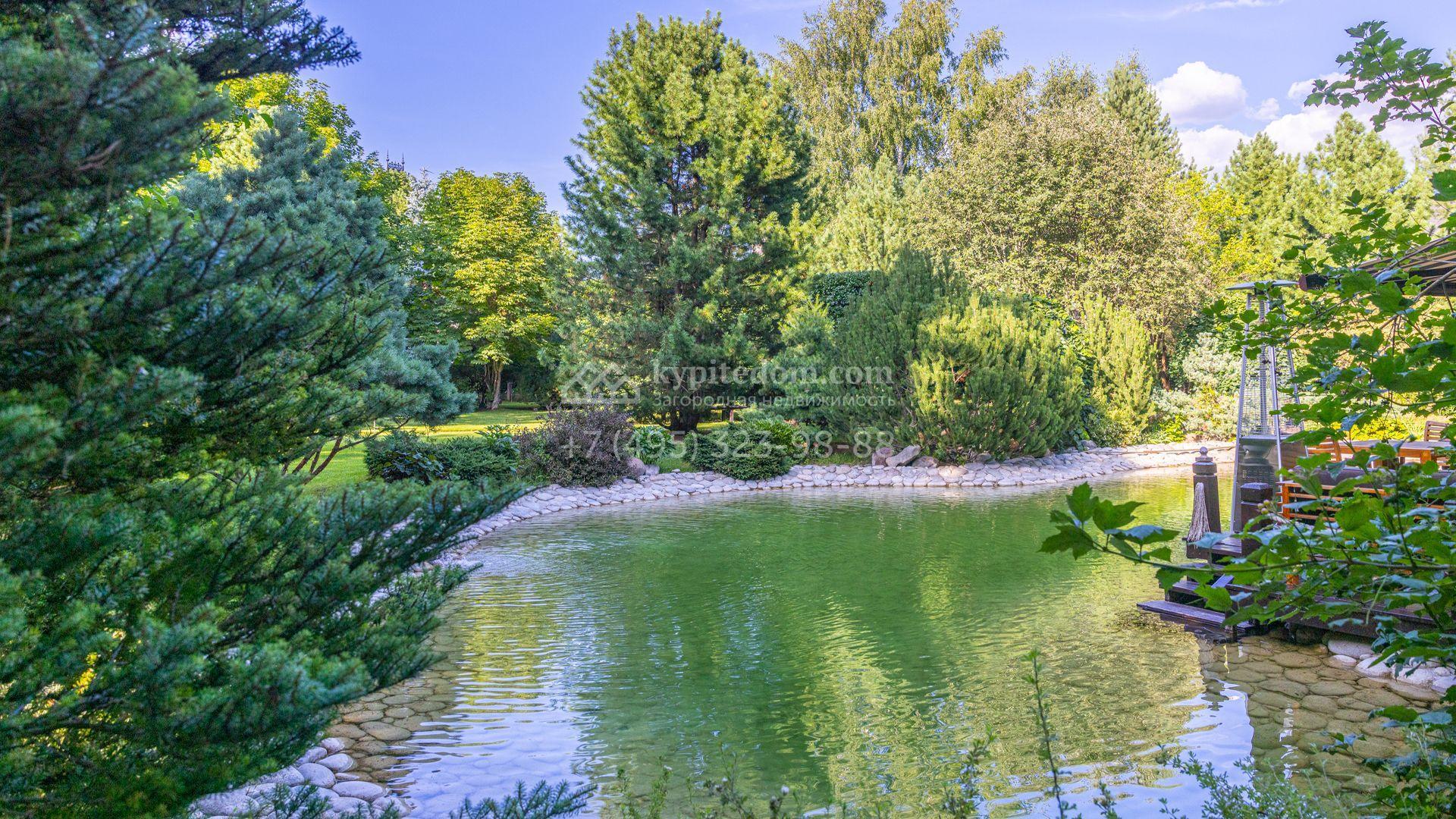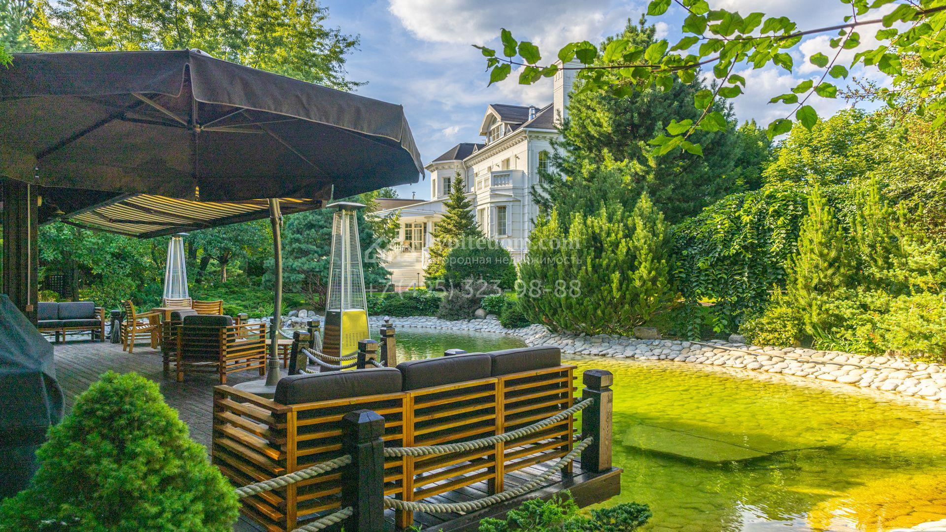 Расслабиться в конце дня можно в SPA-зоне с хаммамом и бассейном с противотоком. Коттедж оборудован пассажирским лифтом для всех уровней. Рядом построен хозяйственный дом 128 м² с комнатой охраны, квартирой для персонала, мастерской и гаражом на 2 машины с навесом. На участке с ландшафтным дизайном обустроен собственный пруд с шестиступенчатой системой очистки воды для купания, на берегу установлены беседка с кухней и санузлом и дека с диванной зоной, зонтом, грилем и лестницей в пруд. Оборудованы баскетбольная и бадминтонная площадки, выделенная территория с грилем для кейтеринга и загон для выгула собак.