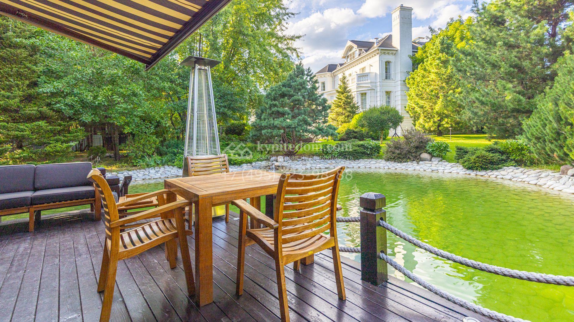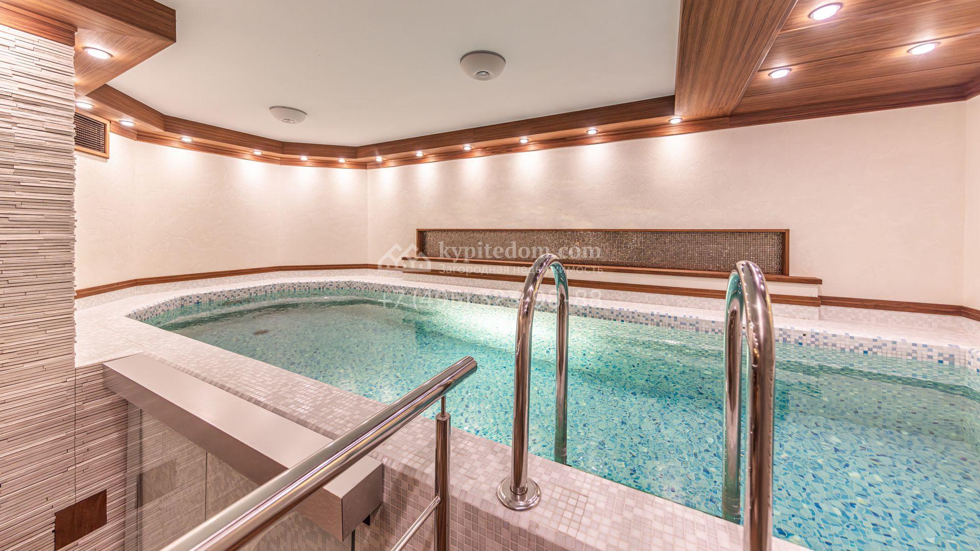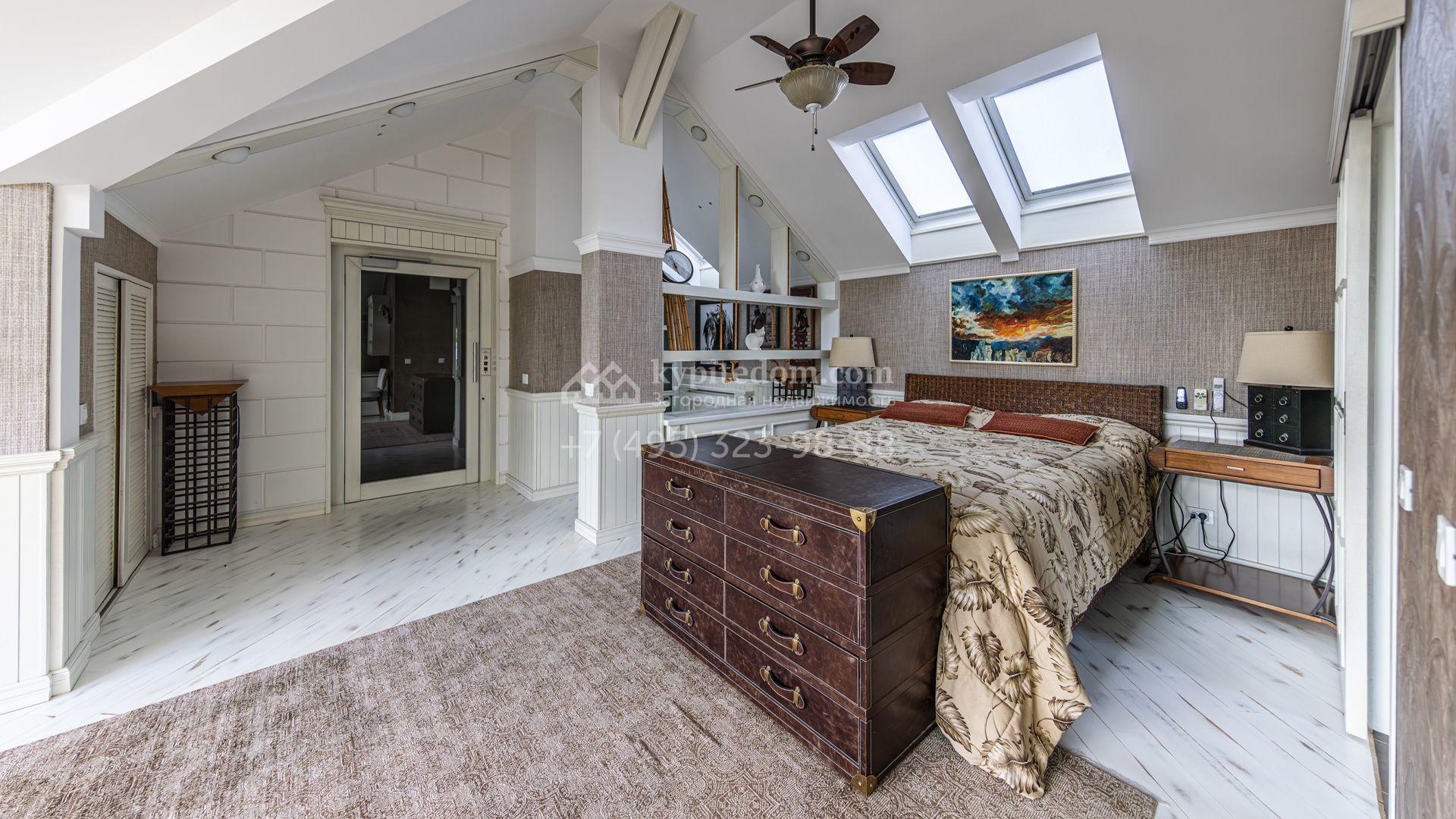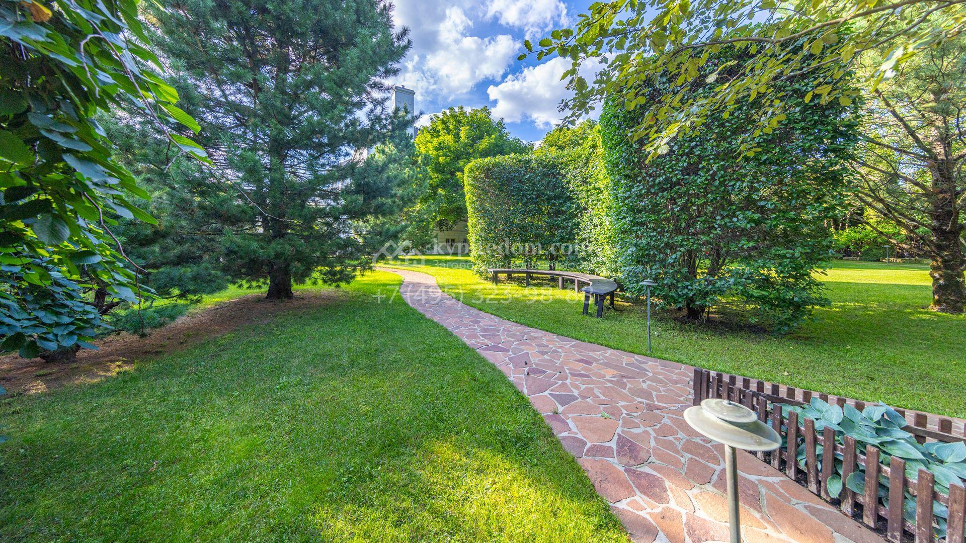 Расслабиться в конце дня можно в SPA-зоне с хаммамом и бассейном с противотоком. Коттедж оборудован пассажирским лифтом для всех уровней. Рядом построен хозяйственный дом 128 м² с комнатой охраны, квартирой для персонала, мастерской и гаражом на 2 машины с навесом. На участке с ландшафтным дизайном обустроен собственный пруд с шестиступенчатой системой очистки воды для купания, на берегу установлены беседка с кухней и санузлом и дека с диванной зоной, зонтом, грилем и лестницей в пруд. Оборудованы баскетбольная и бадминтонная площадки, выделенная территория с грилем для кейтеринга и загон для выгула собак.