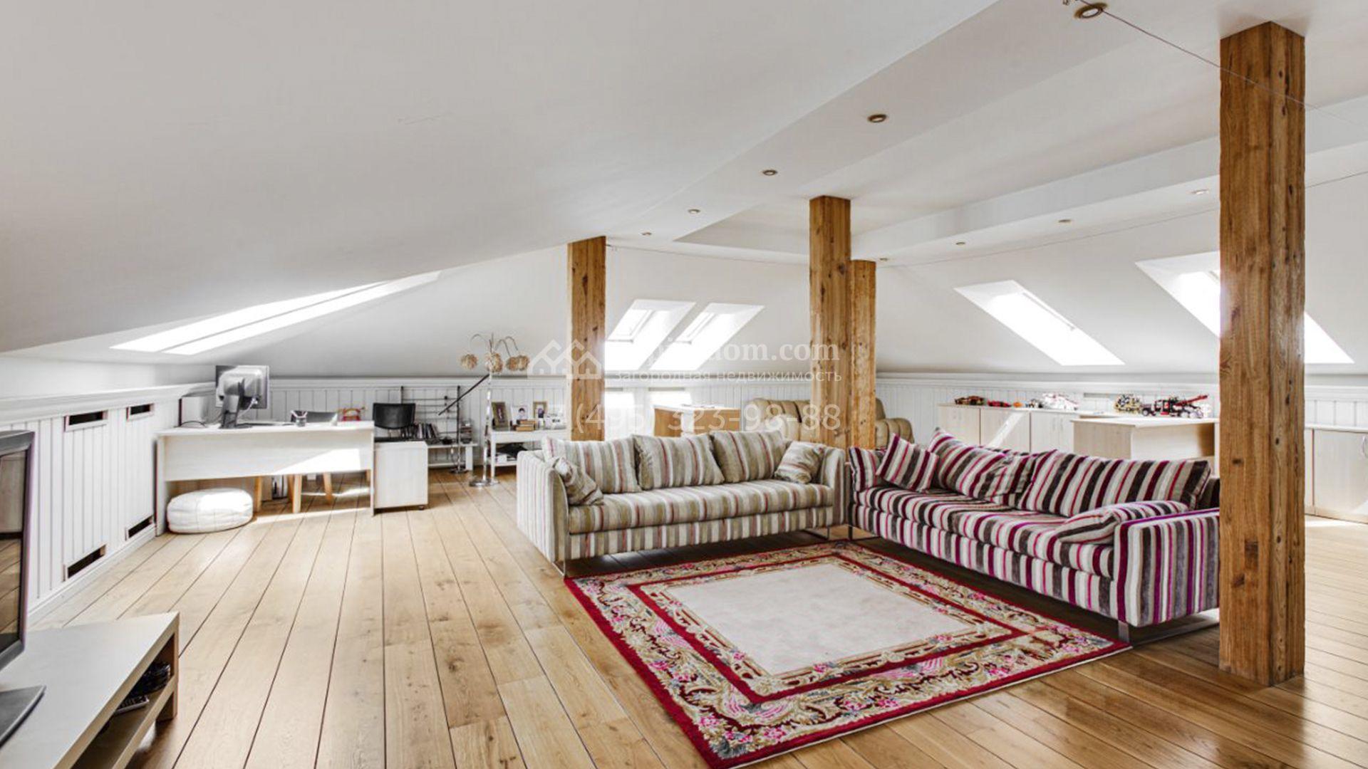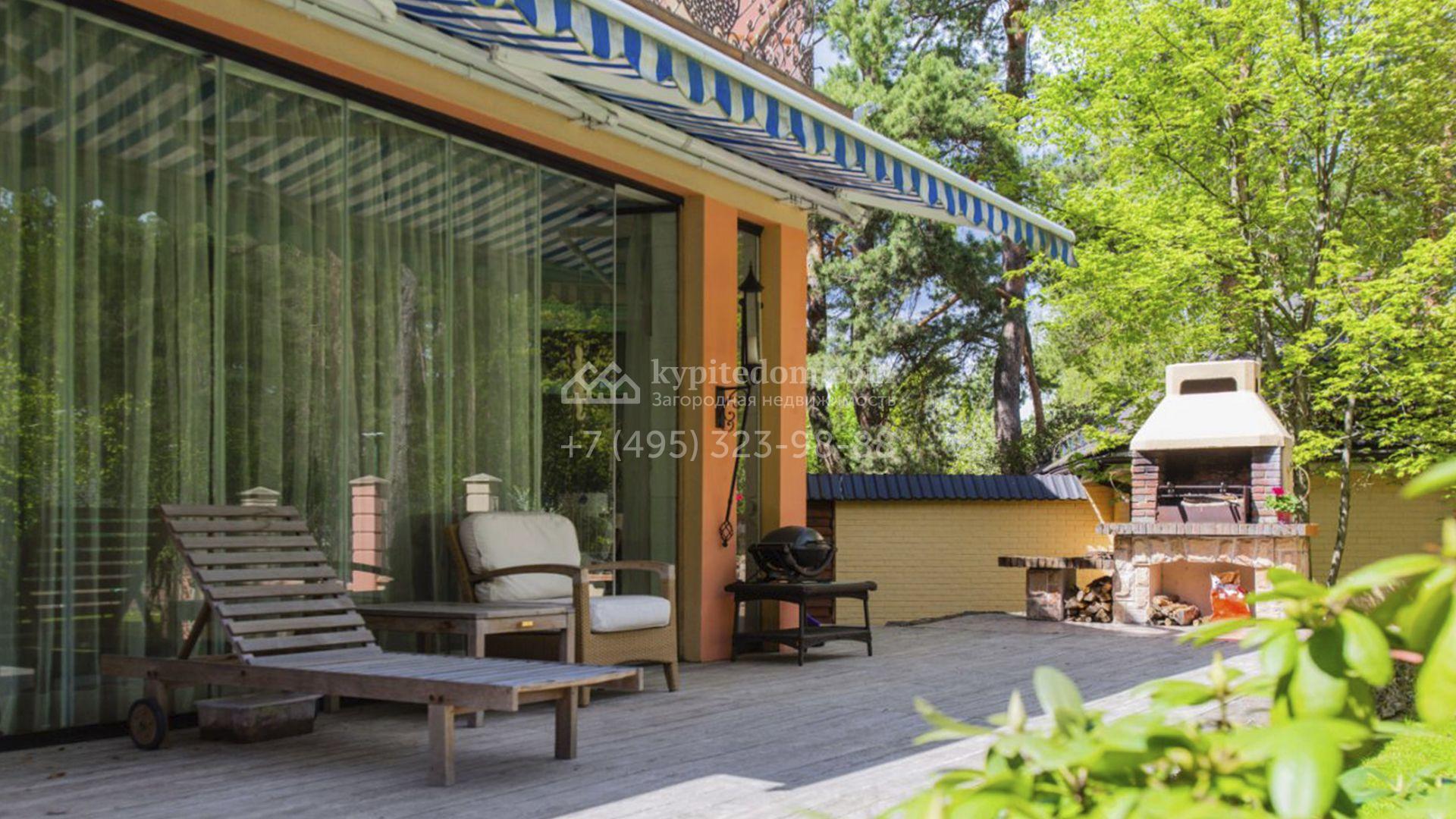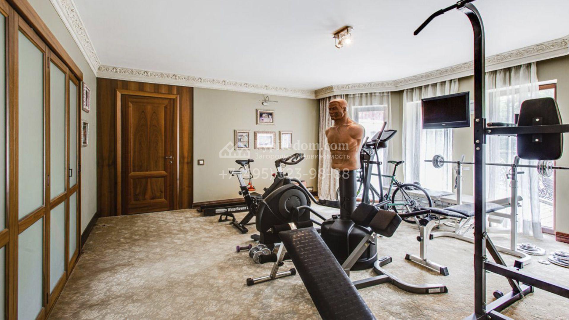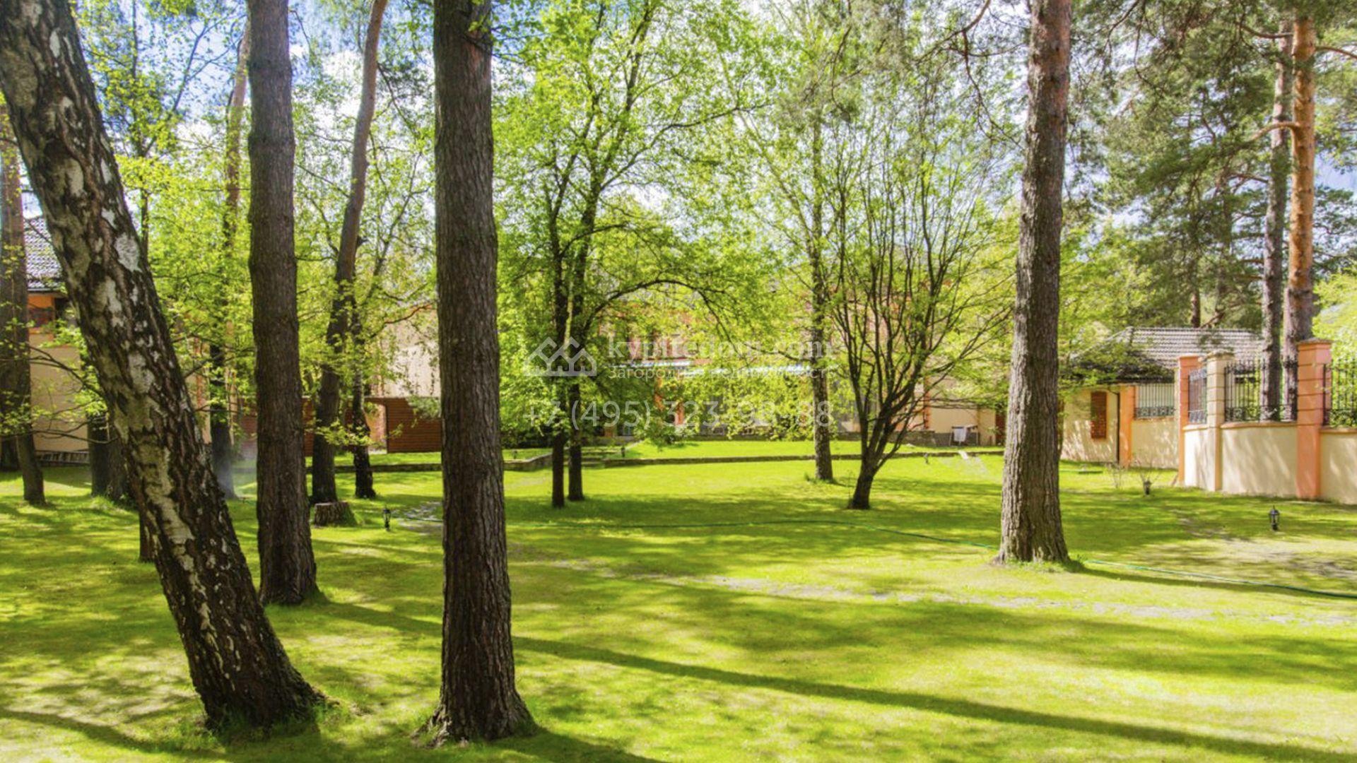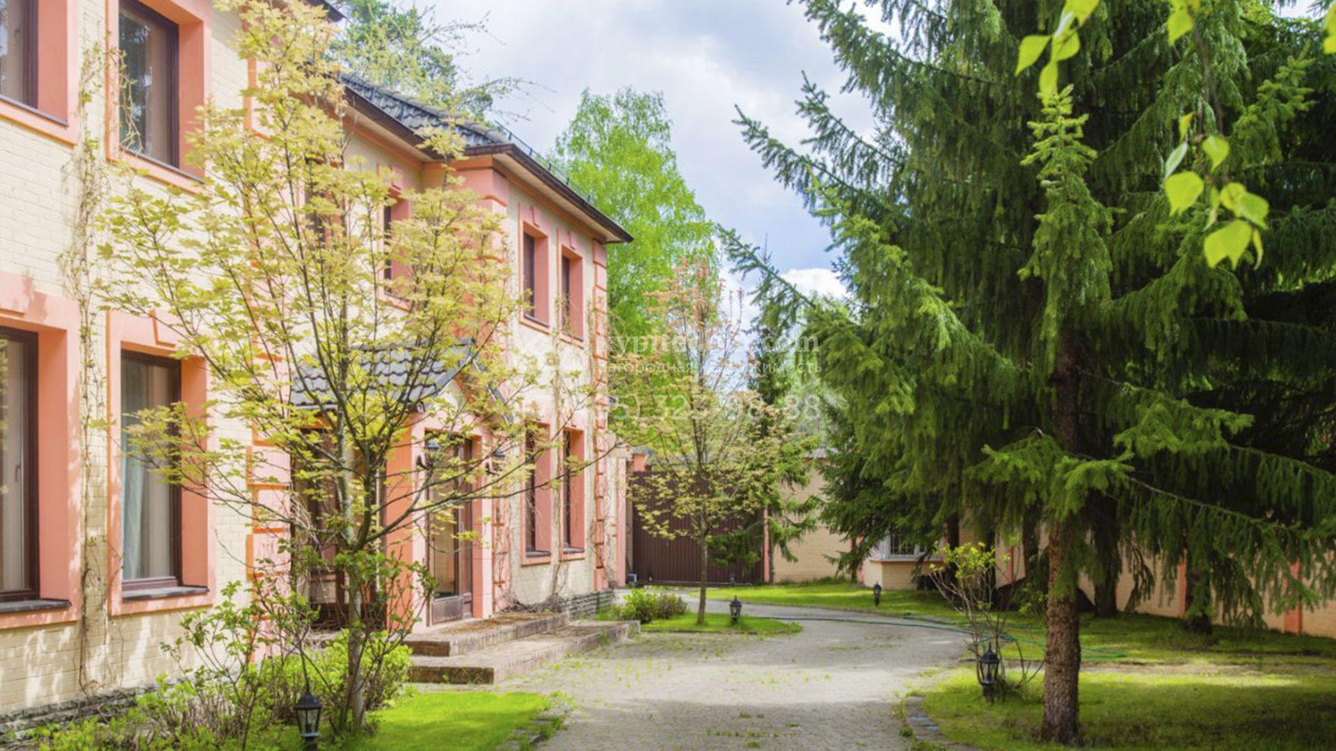 Планировка включает гостиную с камином, кухню-столовую с удобным островом, библиотеку, зимний сад, 5 спален, сауну, кабинет, тренажерный зал, вместительные гардеробные и просторную террасу с маркизой и зоной отдыха. На мансарде разместили игровую и ученическую комнаты. Кроме того, в контуре дома обустроена комната для персонала с отдельным входом. Машины можно оставить во встроенном гараже или же в отдельностоящем, рассчитанном на 2 автомобиля. Дополнительно на территории построены профессиональный теннисный корт, уютная беседка-барбекю, домик для охраны и техническое помещение с блоком для персонала. На участке вдохните запах свежескошенной травы, прогуливаясь по освещенным мощеным дорожкам в тени высоких деревьев и любуйтесь тихой речкой, через которую прокинуты живописные мостики.