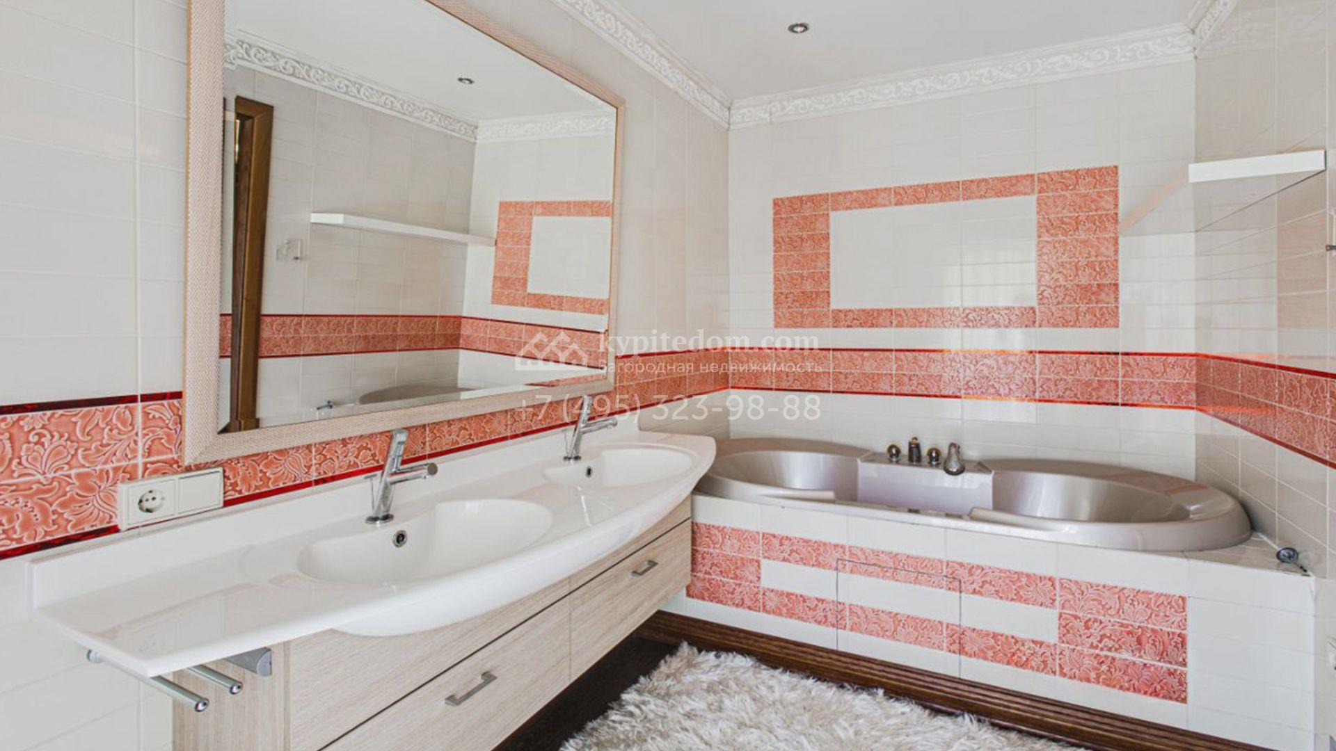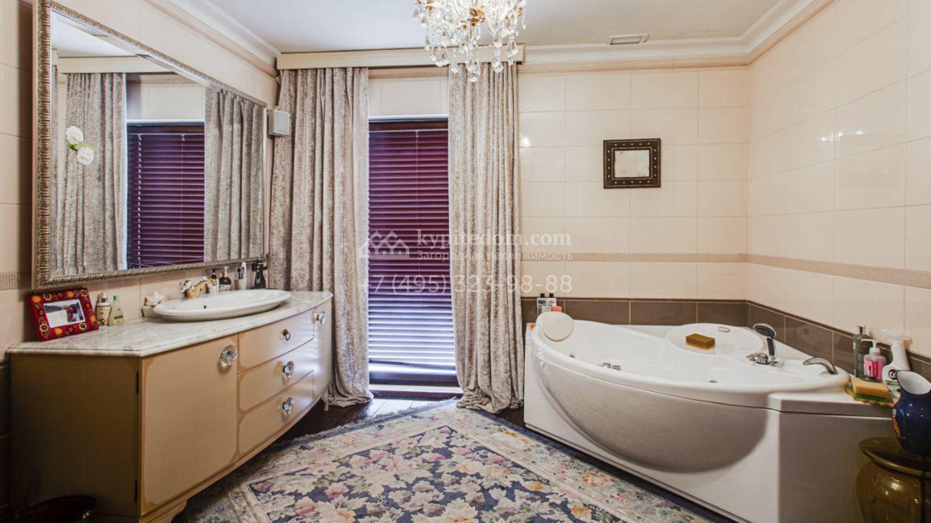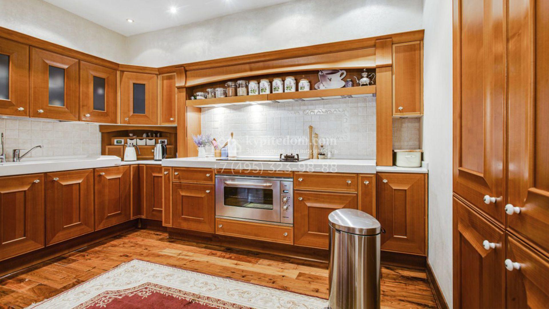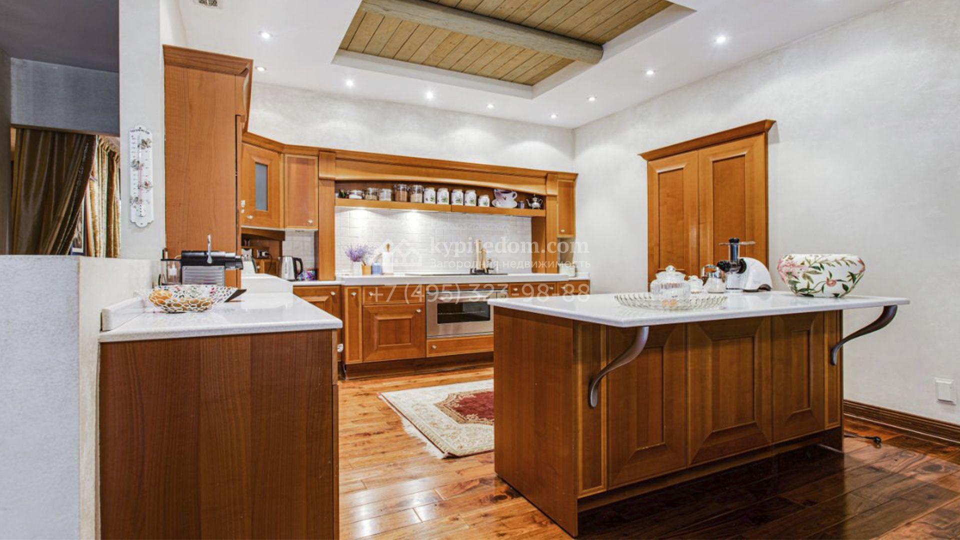 Загородная резиденция площадью 726 м² расположена на лесном участке 73 сотки. Фасад, выполненный в неоклассическом стиле, облицован кирпичом, коралловой штукатуркой и плиткой с фактурой камня, а также украшен изящной рустовкой, мозаикой и подсветкой, подчеркивающей архитектуру в вечерние часы. Панорамное остекление создает ощущение гармонии с природой и наполняет внутренние пространства светом. Интерьеры выдержаны в спокойных тонах, отделаны с использованием высококачественных натуральных материалов и дополнены классическими элементами — элегантными колоннами и лепниной на карнизах. Коттедж укомплектован мебелью от ведущих производителей, современной бытовой техникой и сантехникой. Система кондиционирования обеспечивает идеальный микроклимат в любое время года.