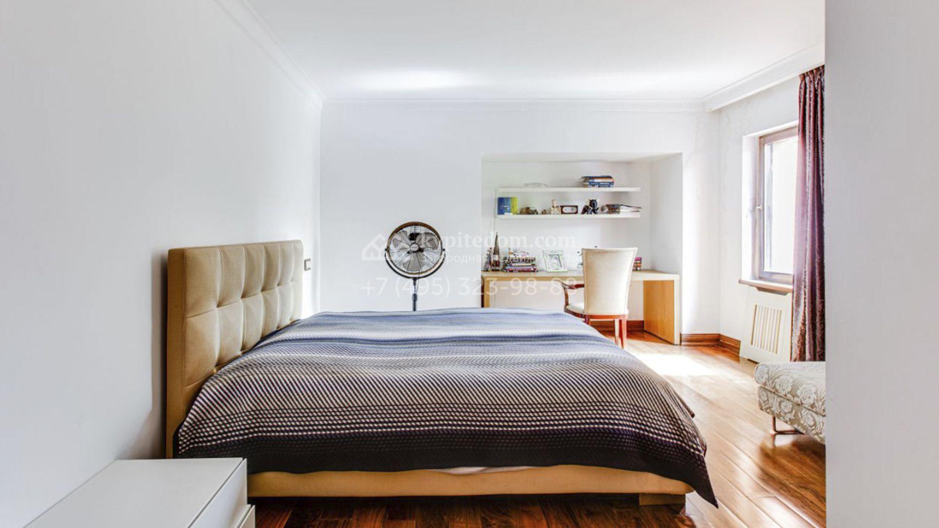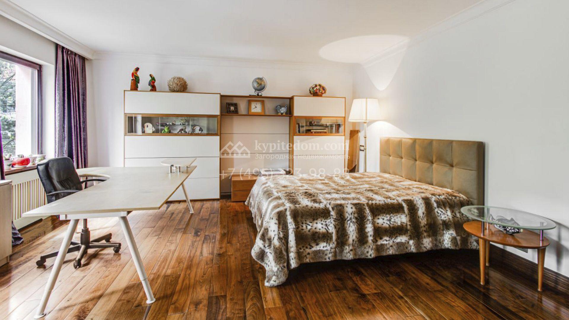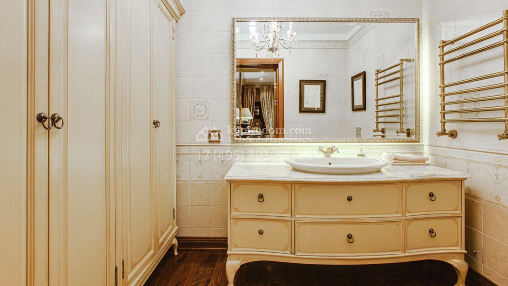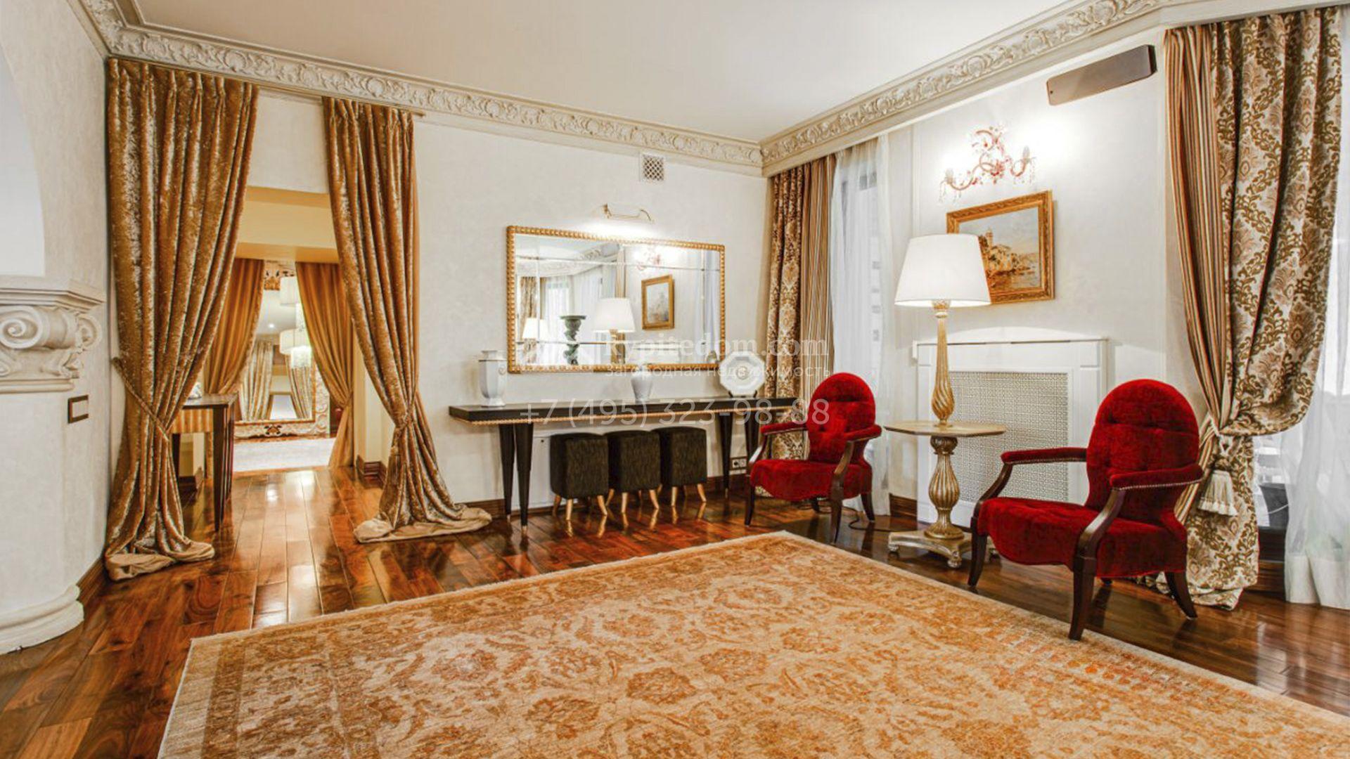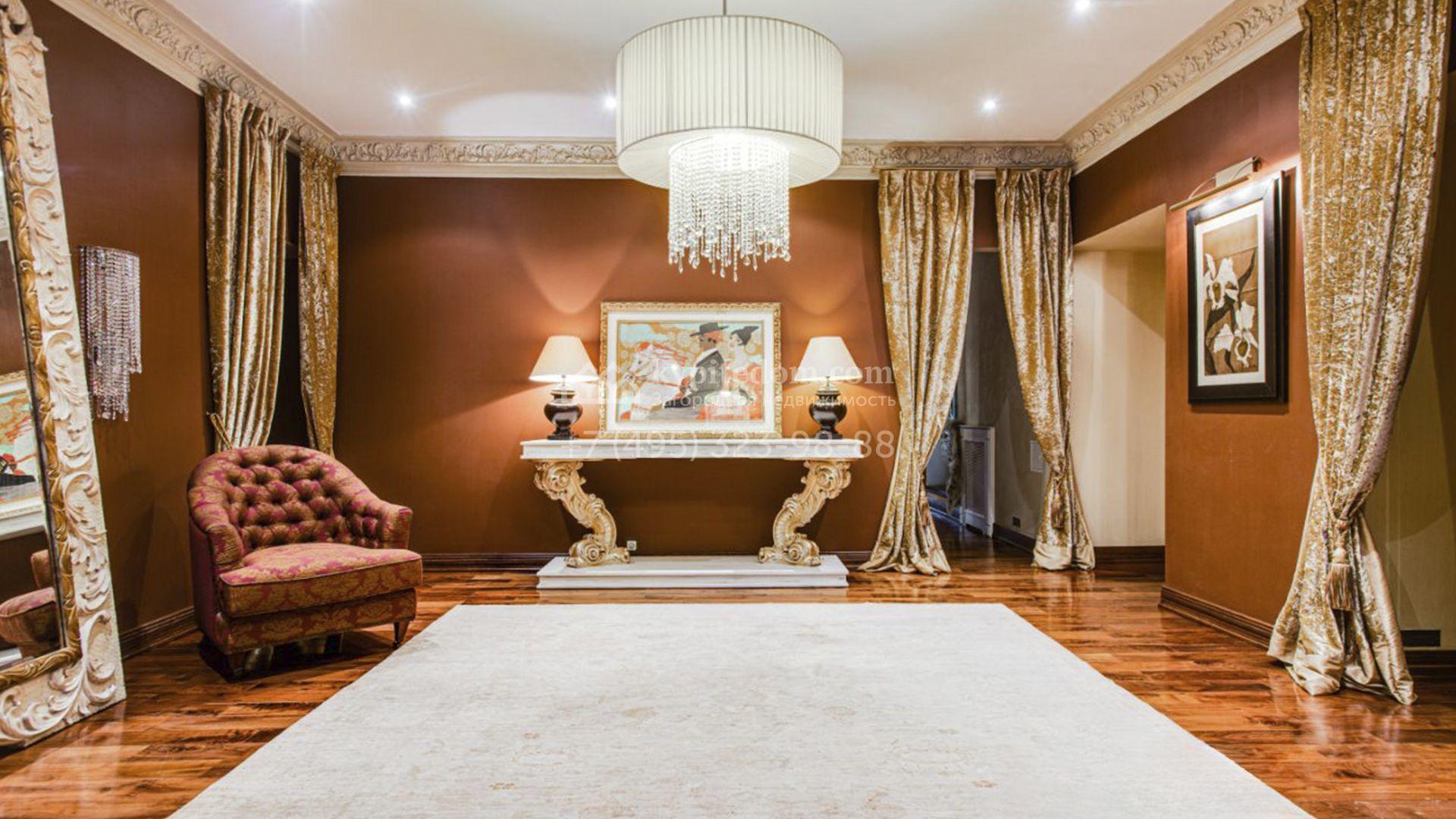 Загородная резиденция площадью 726 м² расположена на лесном участке 73 сотки. Фасад, выполненный в неоклассическом стиле, облицован кирпичом, коралловой штукатуркой и плиткой с фактурой камня, а также украшен изящной рустовкой, мозаикой и подсветкой, подчеркивающей архитектуру в вечерние часы. Панорамное остекление создает ощущение гармонии с природой и наполняет внутренние пространства светом. Интерьеры выдержаны в спокойных тонах, отделаны с использованием высококачественных натуральных материалов и дополнены классическими элементами — элегантными колоннами и лепниной на карнизах. Коттедж укомплектован мебелью от ведущих производителей, современной бытовой техникой и сантехникой. Система кондиционирования обеспечивает идеальный микроклимат в любое время года.