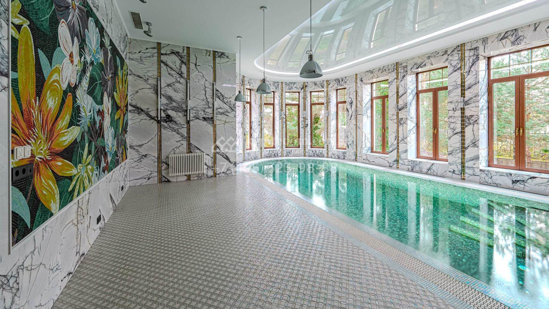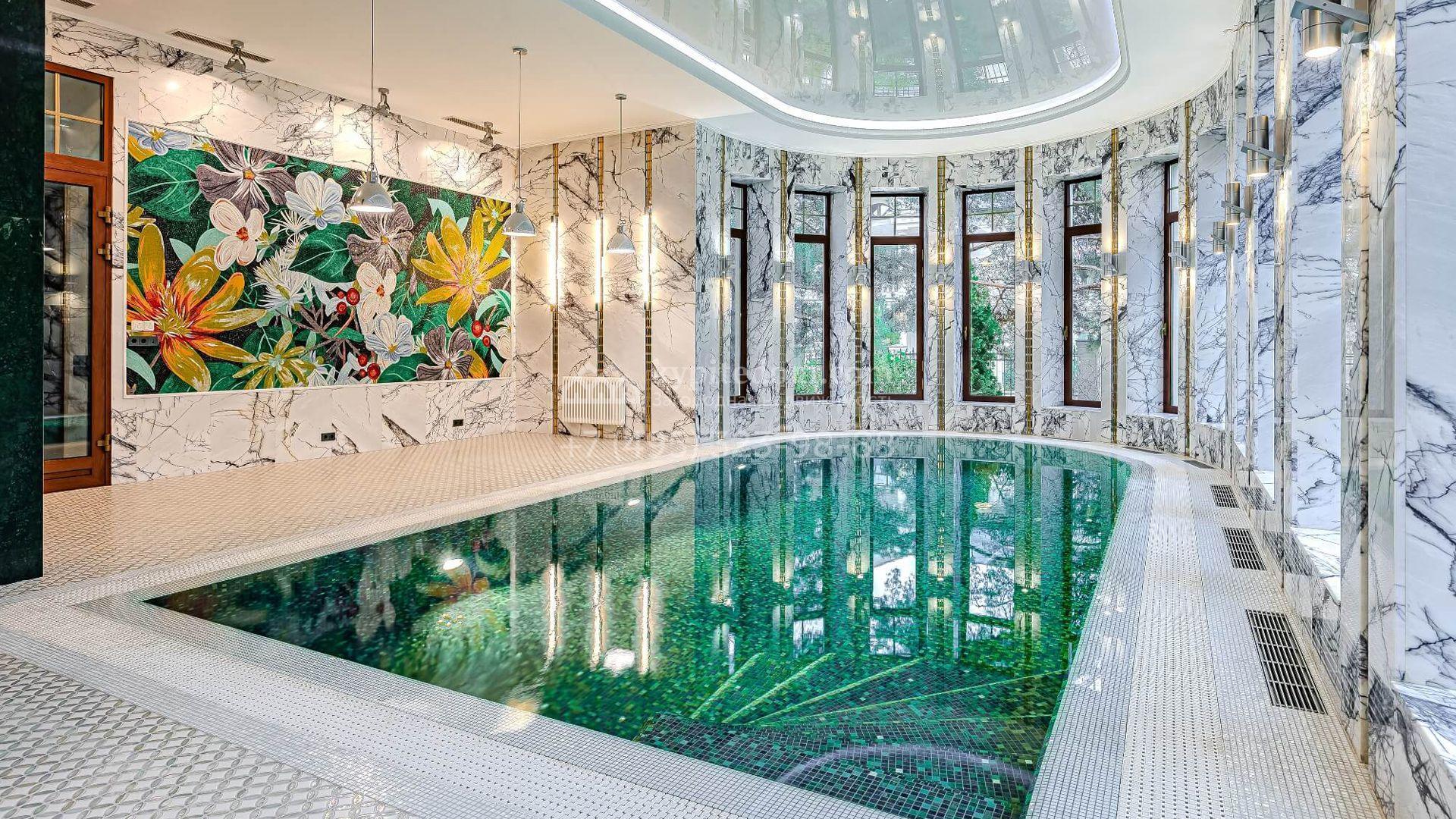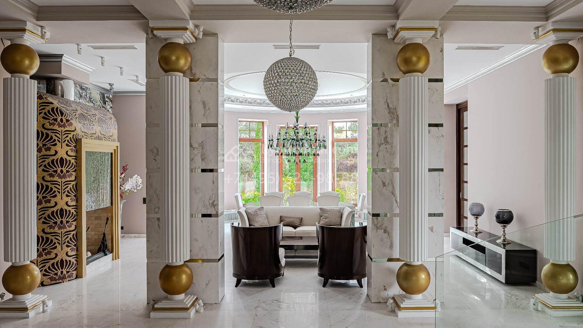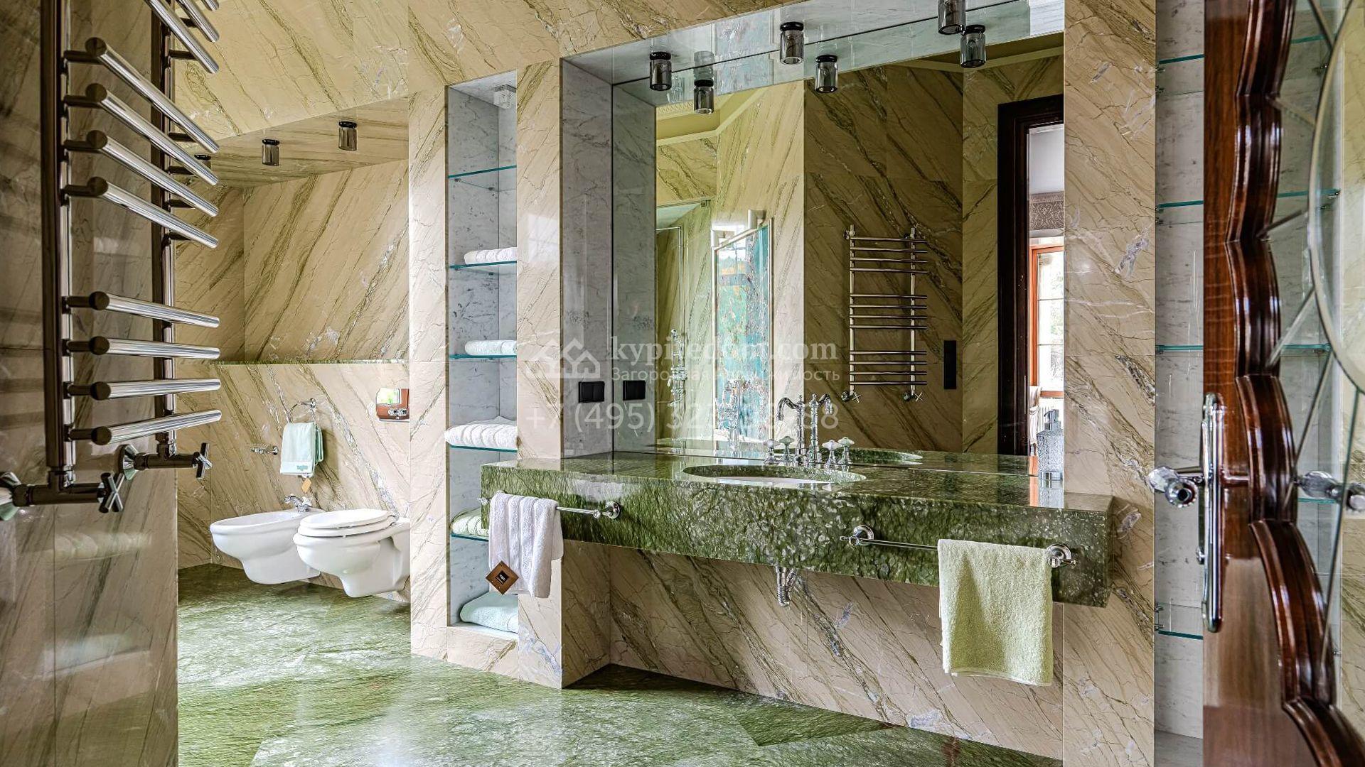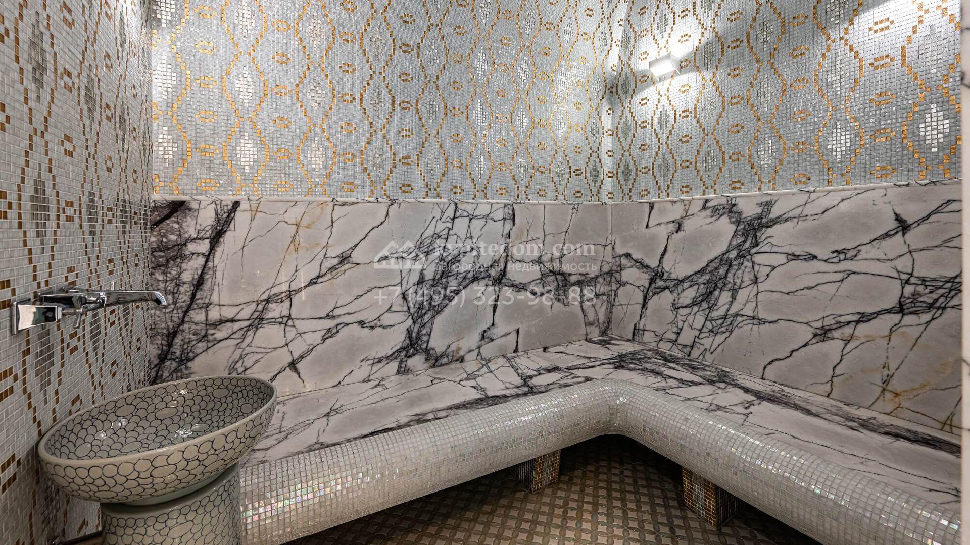 1-й уровень: холл, гардеробная, санузел, лифт, каминный зал, кухня-столовая, SPA-зона с бассейном, хамамом, гардеробной, душевой и санузлом.