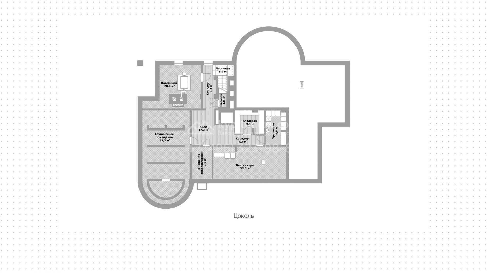 Цоколь: котельная, постирочная, винная, техническая зона бассейна.