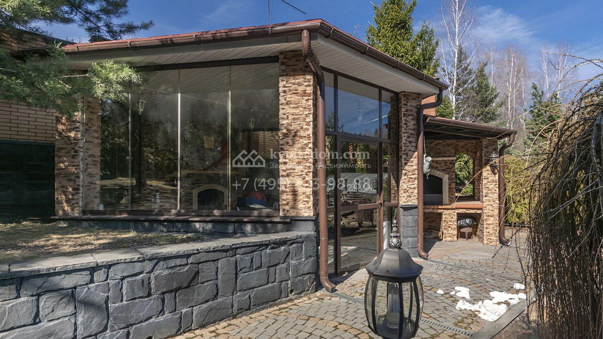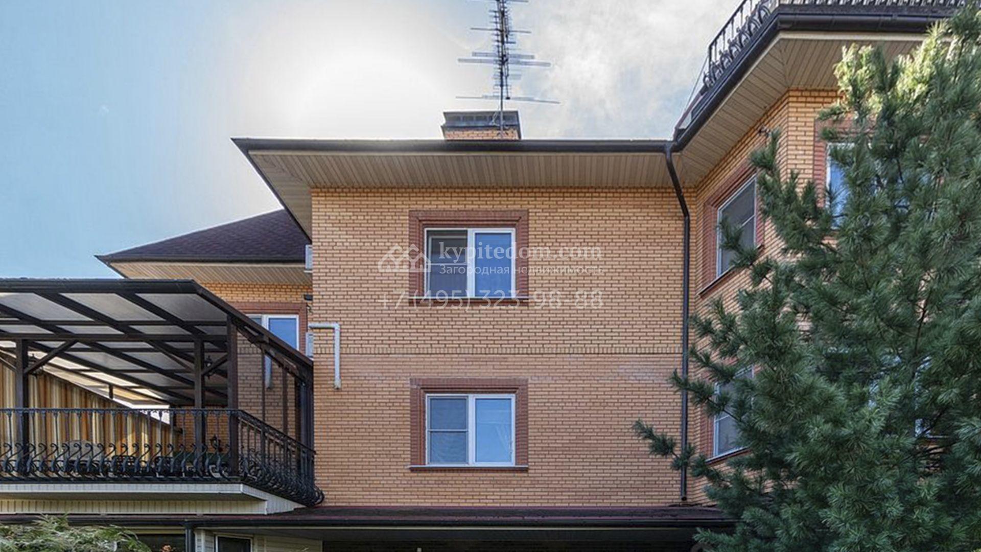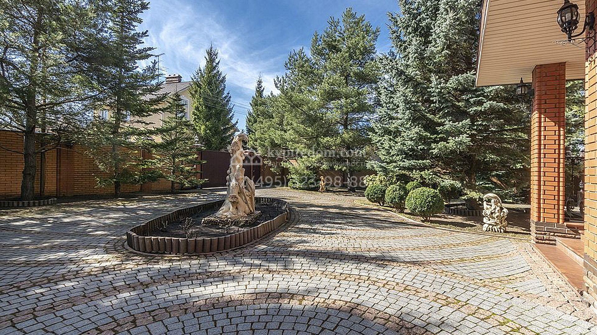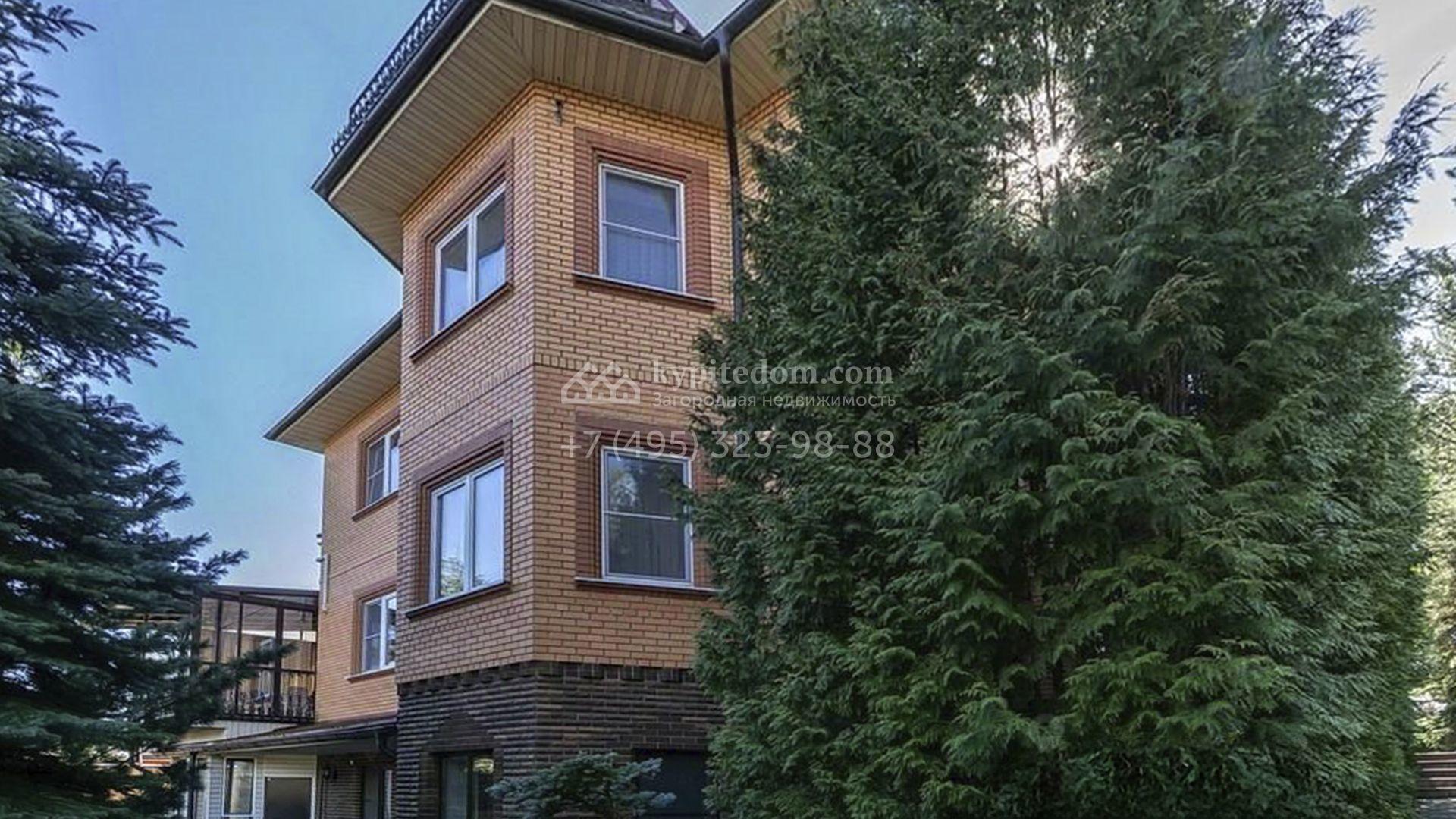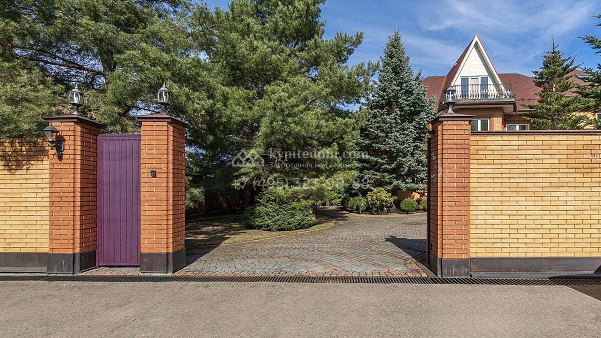 Загородный особняк площадью 718 м² расположен на прямоугольном участке 25 соток рядом с живописным лесом. Современный фасад с многоскатной крышей выполнен из кирпича и декорирован клинкером. Интерьер выдержан в спокойных тонах и дополнен итальянской и испанской мебелью, включая кожаные диваны и эксклюзивные предметы декора, такие как люстры Swarovski и оригинальные картины. Для дополнительных комфорта и безопасности в доме установлены финский котел, система очистки воды, кондиционеры и сигнализация.
