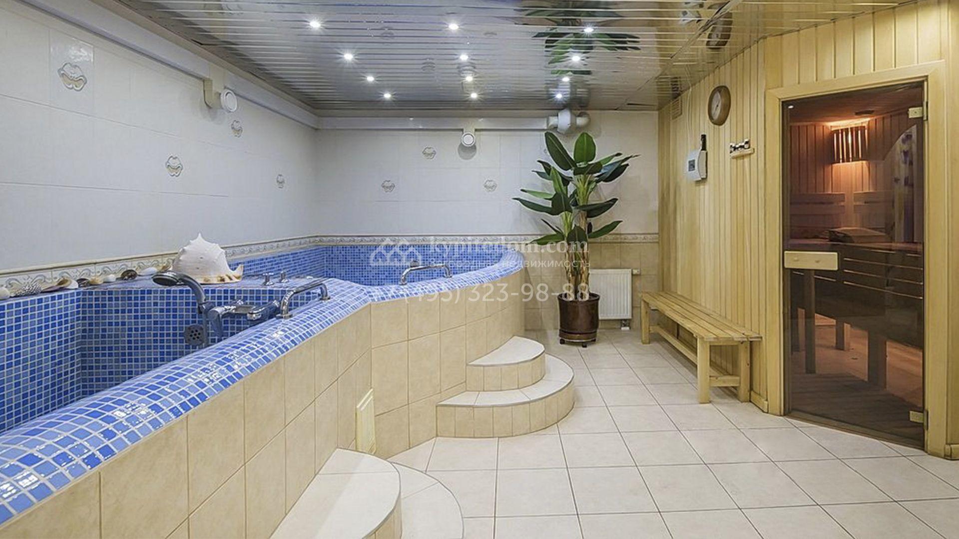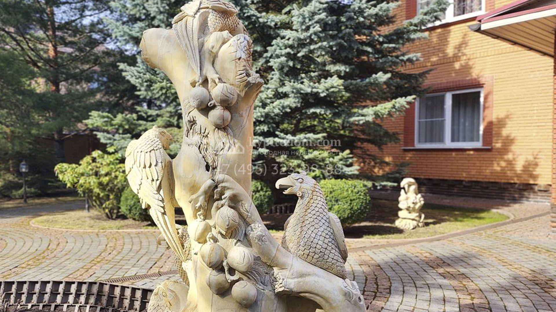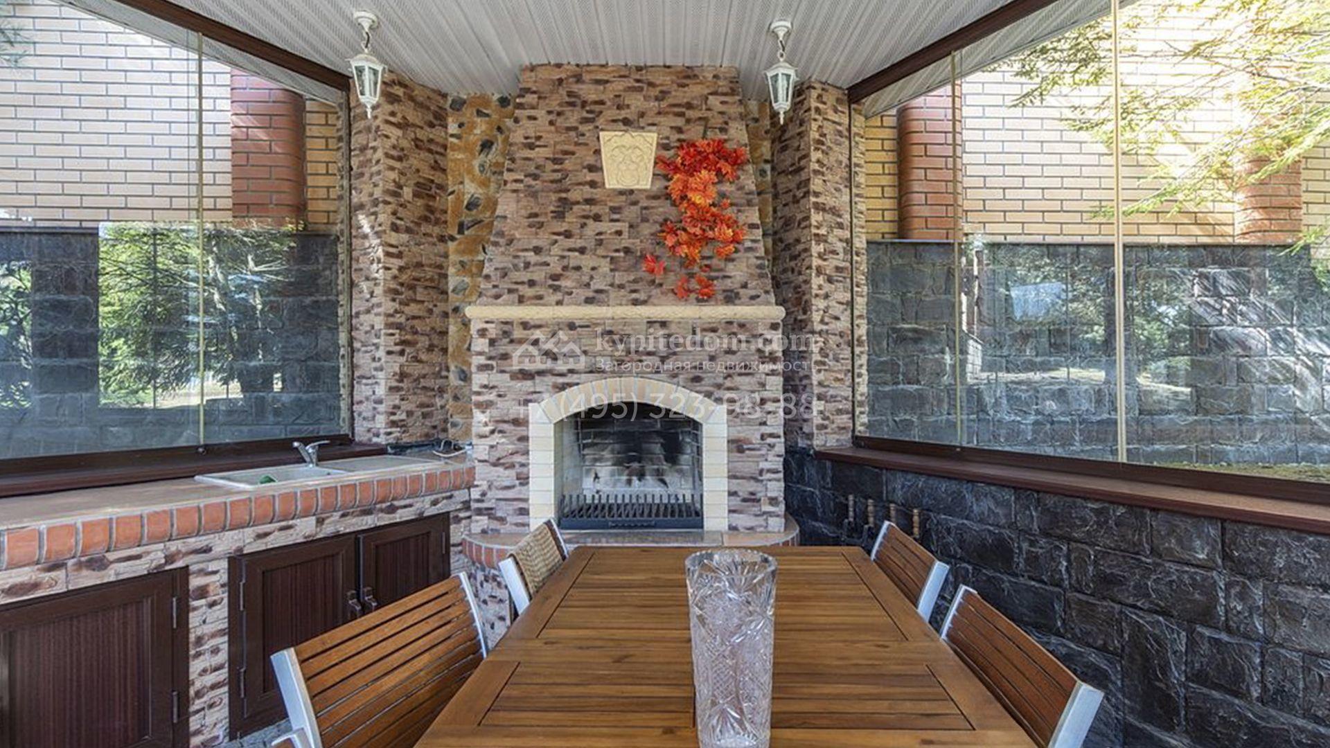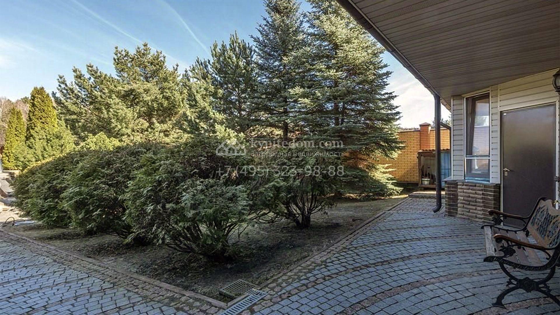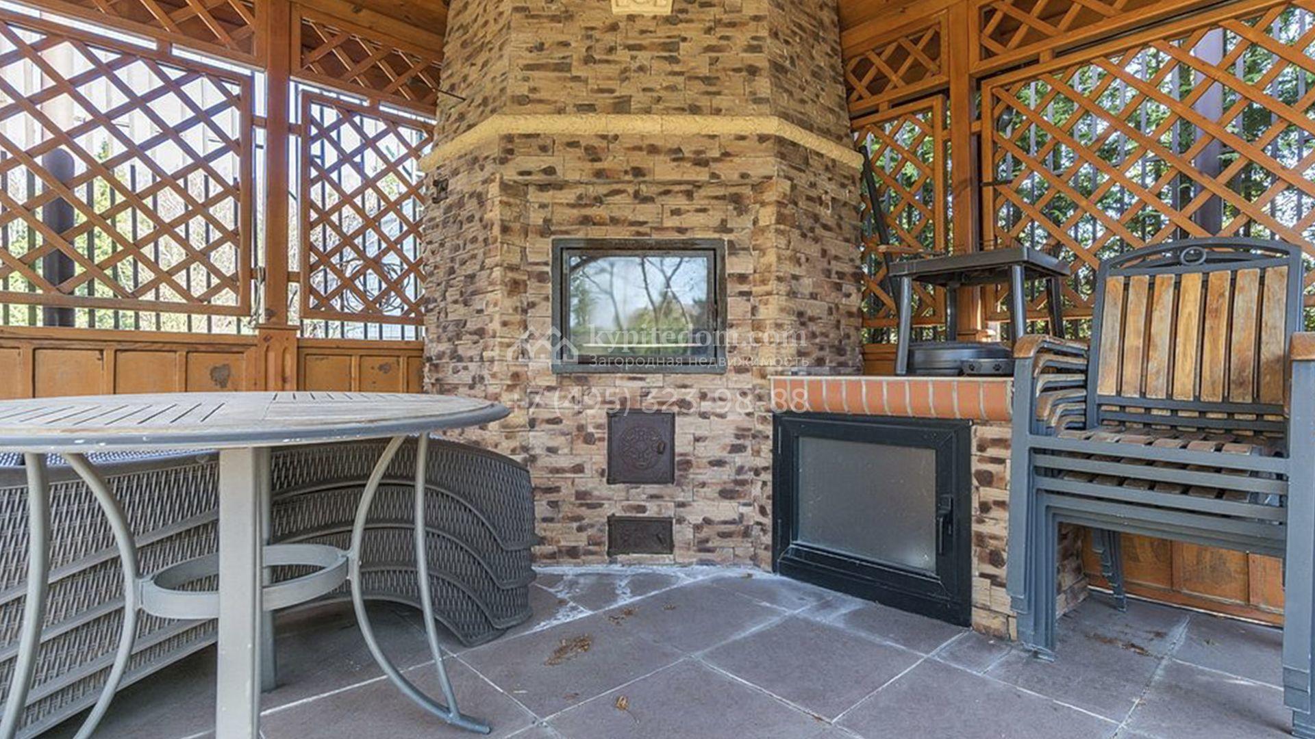 Рядом с основным зданием построены открытый бассейн с навесом, подогревом и системой очистки воды, остекленная беседка с камином и кухней для барбекю, а также летняя беседка с коптильней. В рамках ландшафтного дизайна на участке выполнено зонирование, растут кустарники и более 50-ти взрослых хвойных и фруктовых деревьев, размещен декоративный пруд с фонтаном и рыбками, установлены мраморные скульптуры, засеян газон, вымощены дорожки и оборудовано уличное освещение.