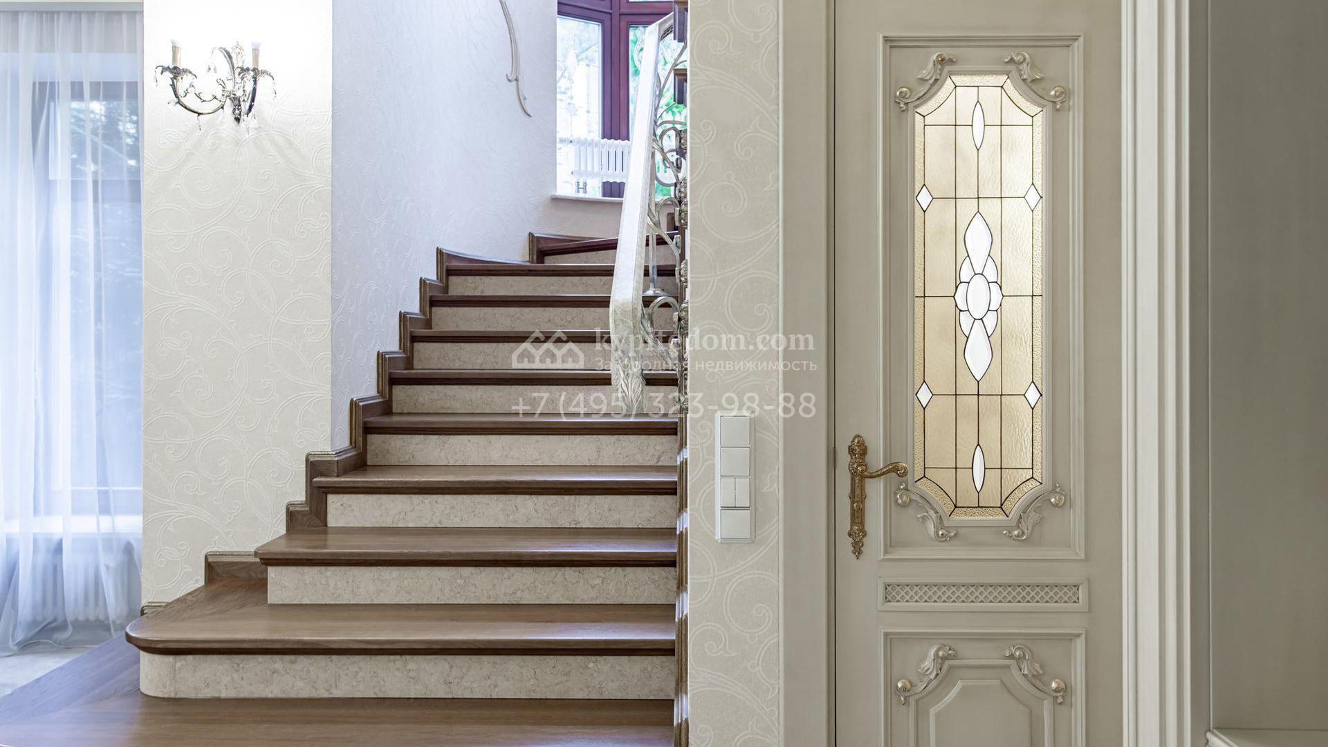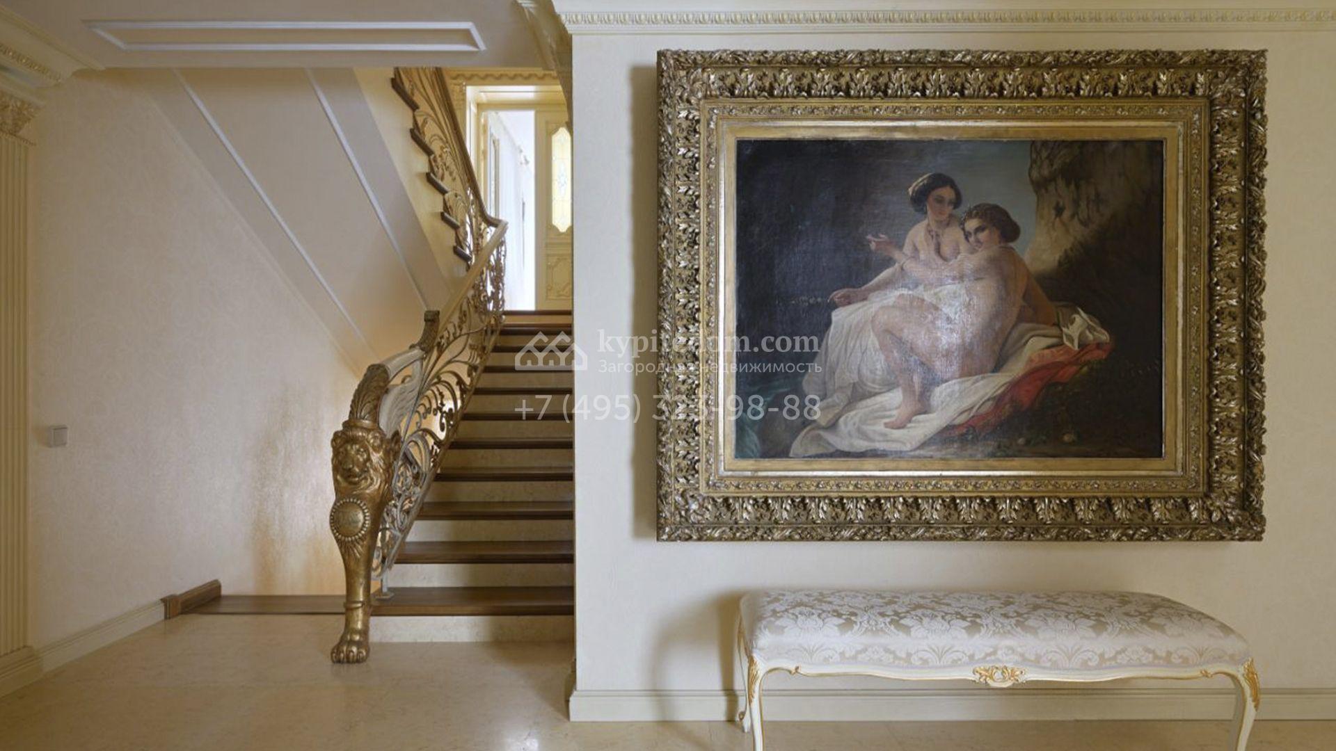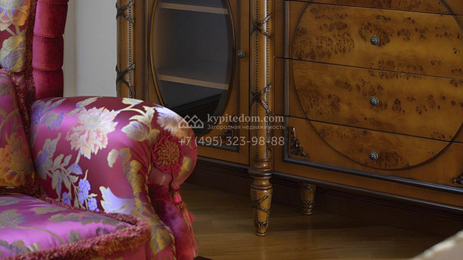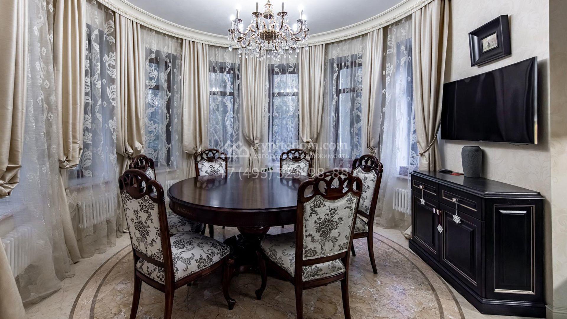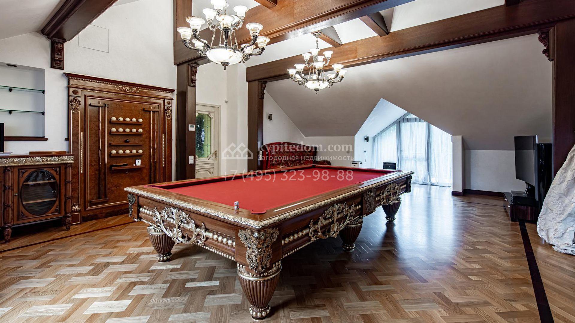 Загородный особняк площадью 920 м² расположен на живописном лесном участке 16 соток. Фасад, выполненный в элегантном европейском стиле, облицован темно-коричневым клинкерным кирпичом, дополнен плиткой с фактурой камня и украшен пилястрами и изящными коваными ограждениями. Интерьеры с классическими элементами выдержаны в светлых тонах и полностью укомплектованы комфортной мебелью, встроенной бытовой техникой и современной сантехникой. Для идеального микроклимата в резиденции установлена система кондиционирования.