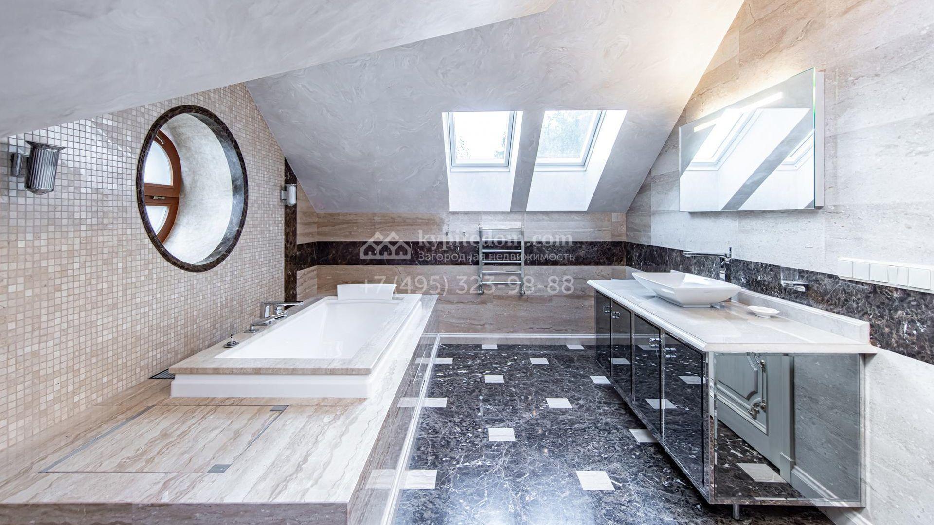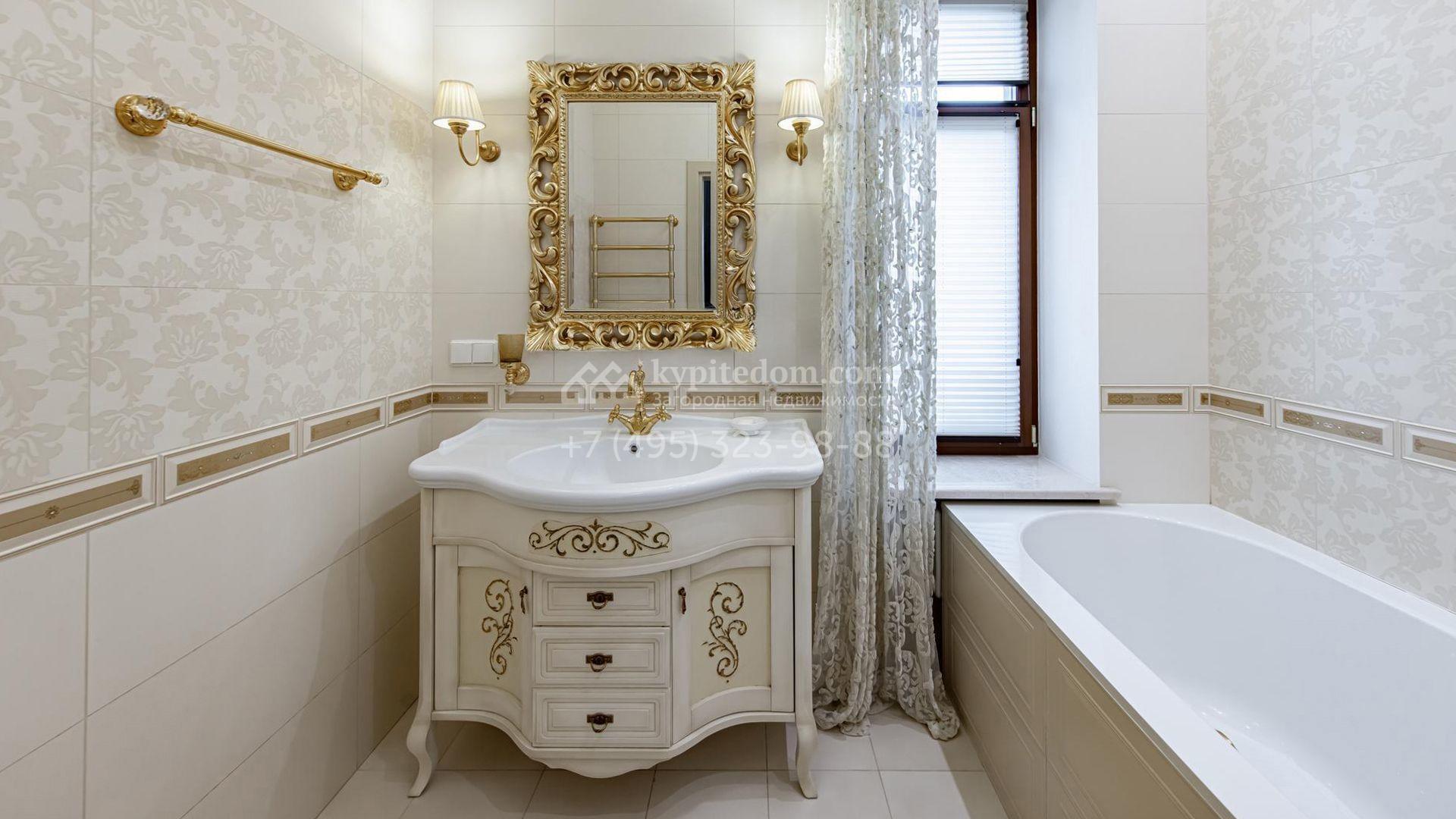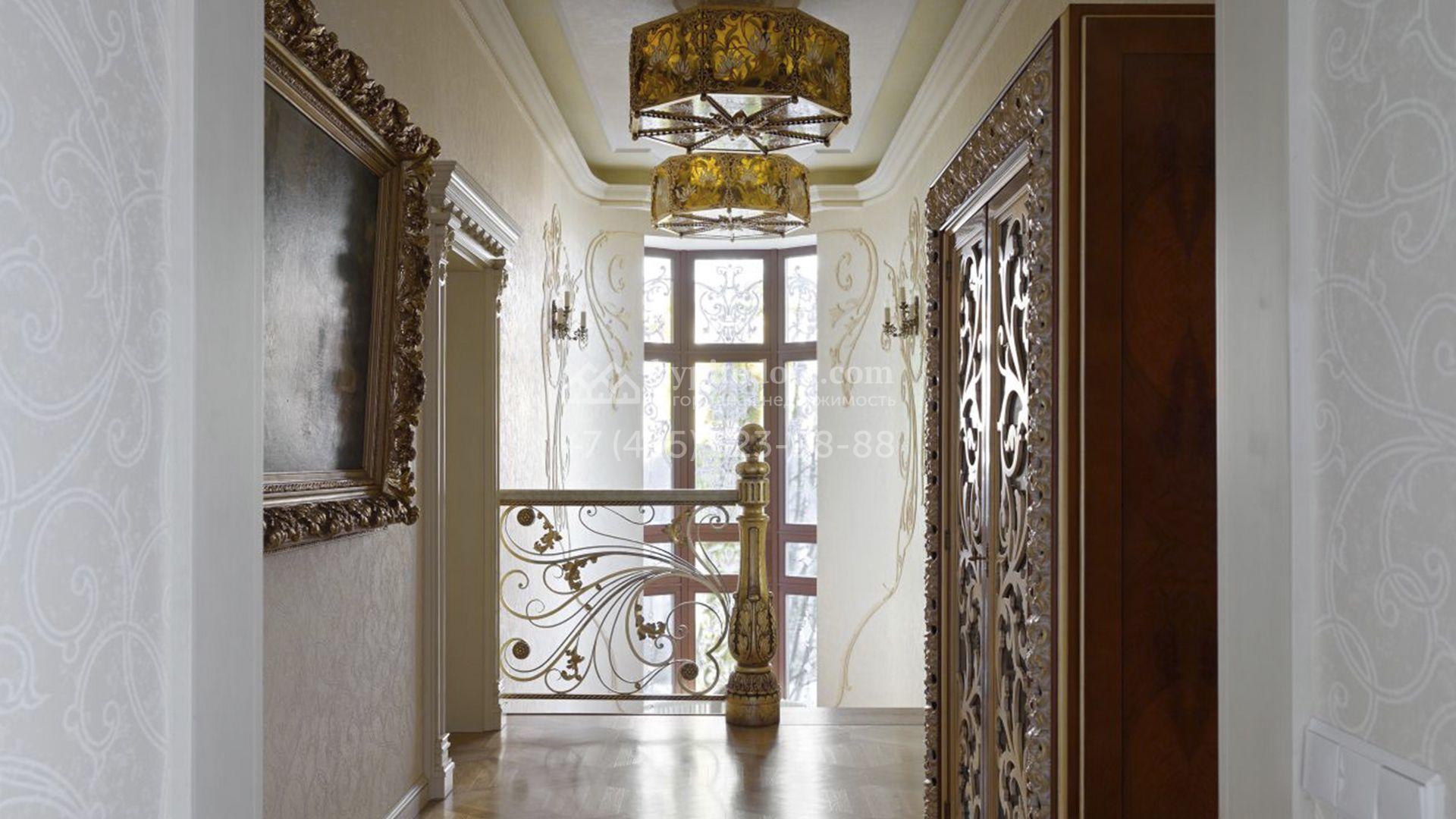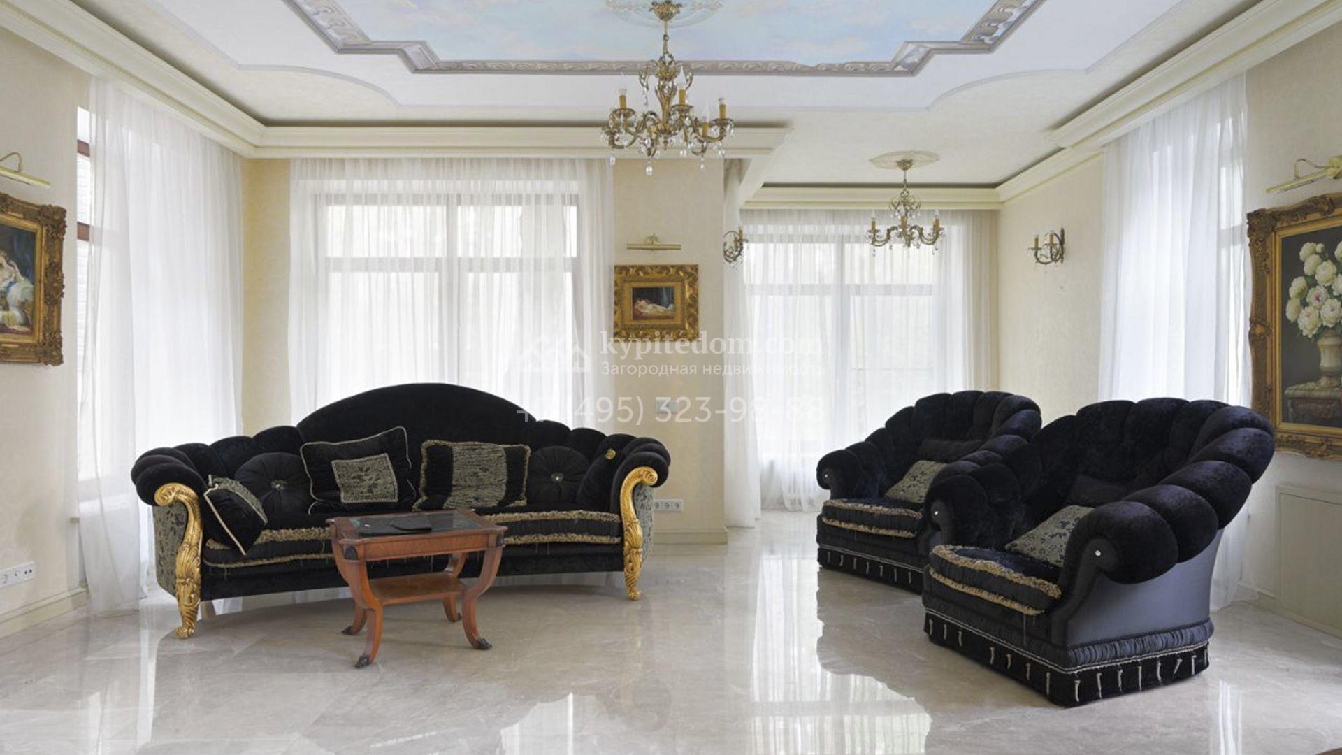 Загородный особняк площадью 920 м² расположен на живописном лесном участке 16 соток. Фасад, выполненный в элегантном европейском стиле, облицован темно-коричневым клинкерным кирпичом, дополнен плиткой с фактурой камня и украшен пилястрами и изящными коваными ограждениями. Интерьеры с классическими элементами выдержаны в светлых тонах и полностью укомплектованы комфортной мебелью, встроенной бытовой техникой и современной сантехникой. Для идеального микроклимата в резиденции установлена система кондиционирования.