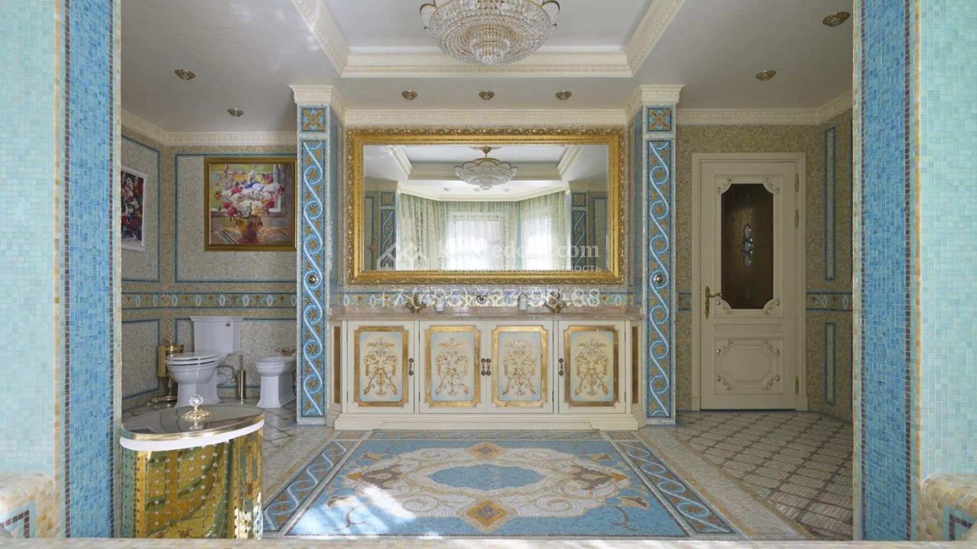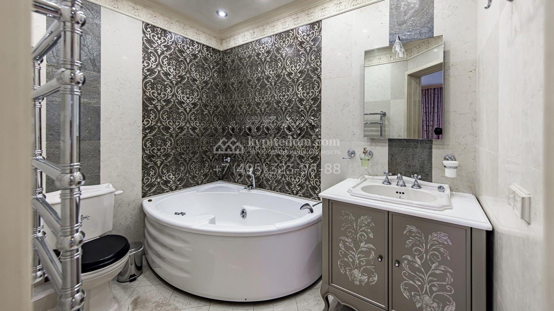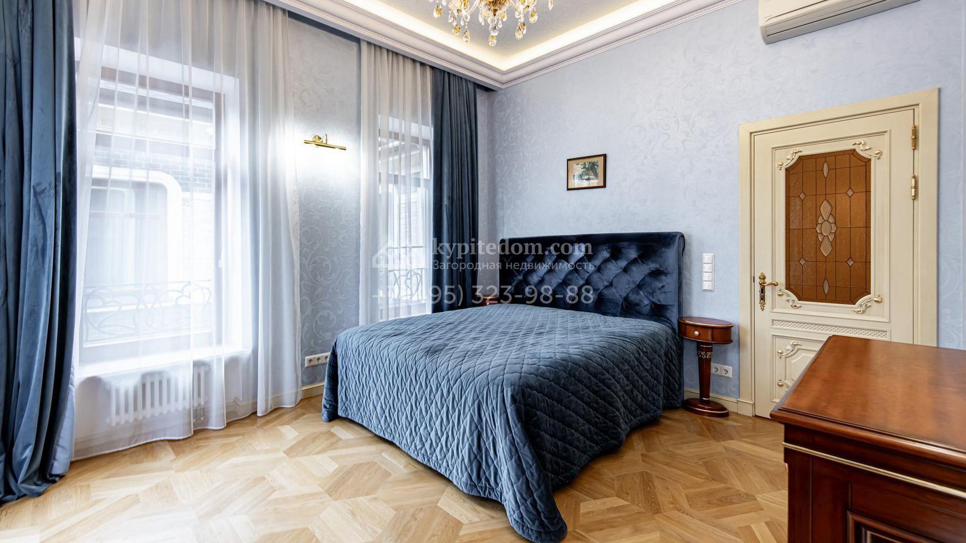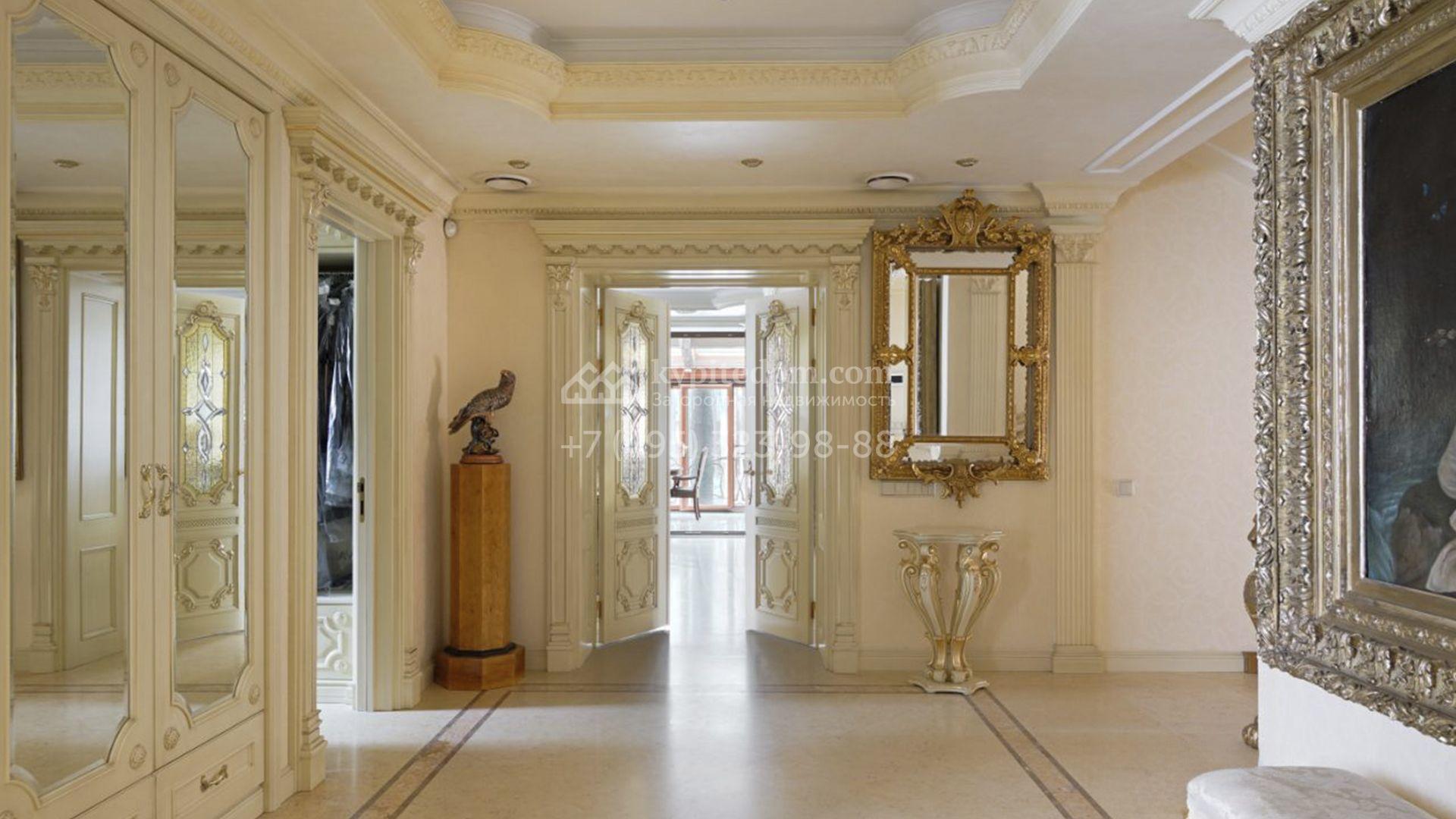 Загородный особняк площадью 920 м² расположен на живописном лесном участке 16 соток. Фасад, выполненный в элегантном европейском стиле, облицован темно-коричневым клинкерным кирпичом, дополнен плиткой с фактурой камня и украшен пилястрами и изящными коваными ограждениями. Интерьеры с классическими элементами выдержаны в светлых тонах и полностью укомплектованы комфортной мебелью, встроенной бытовой техникой и современной сантехникой. Для идеального микроклимата в резиденции установлена система кондиционирования.