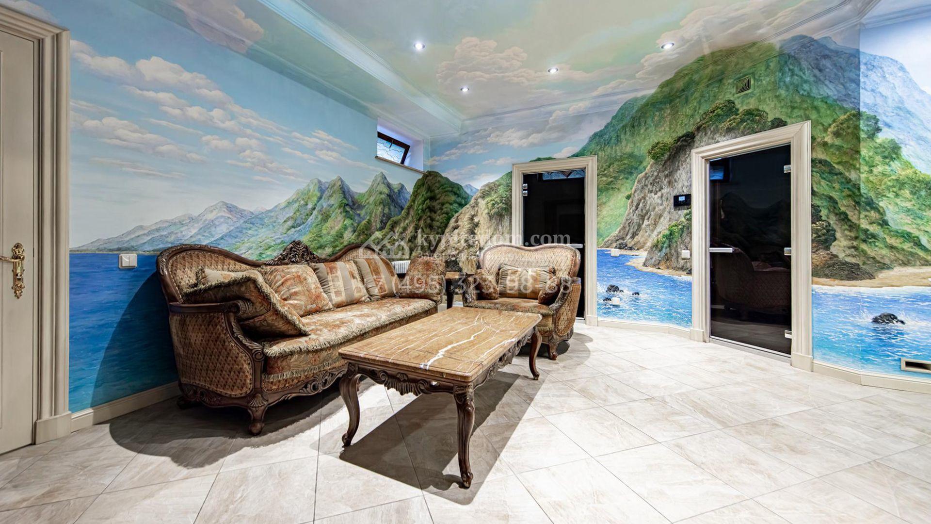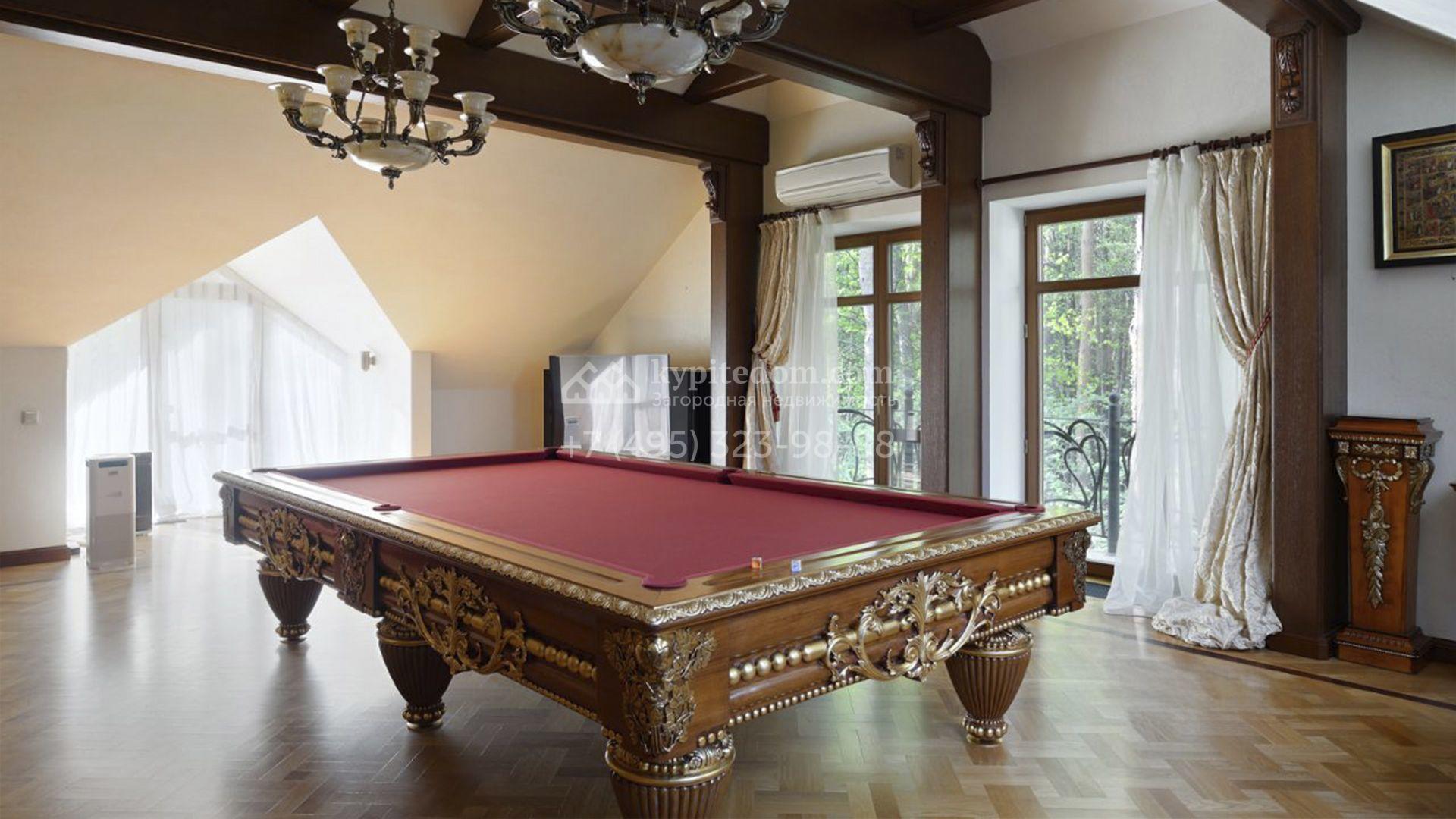 Планировка включает уютную гостиную с камином, кухню, столовую, 6 спален, бильярдную, дегустационную, SPA-зону с бассейном и террасу. Кроме того, на территории возведены коттедж для барбекю, дом для персонала и вольеры для разведения собак крупных пород. Оставить машины можно в удобном пятиместном гараже с зарядкой для электромобиля. На участке вдохните запах свежескошенной травы, прогуливаясь по освещенным дорожкам в тени высоких деревьев.