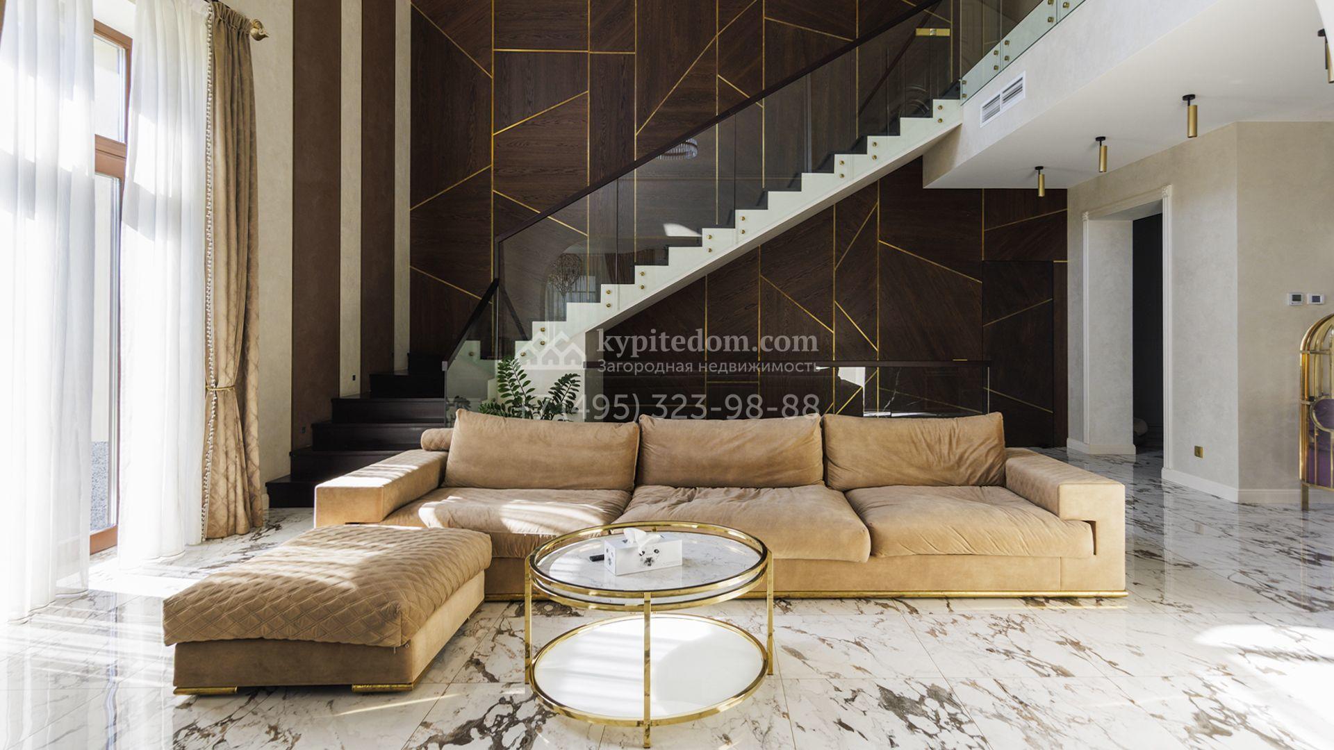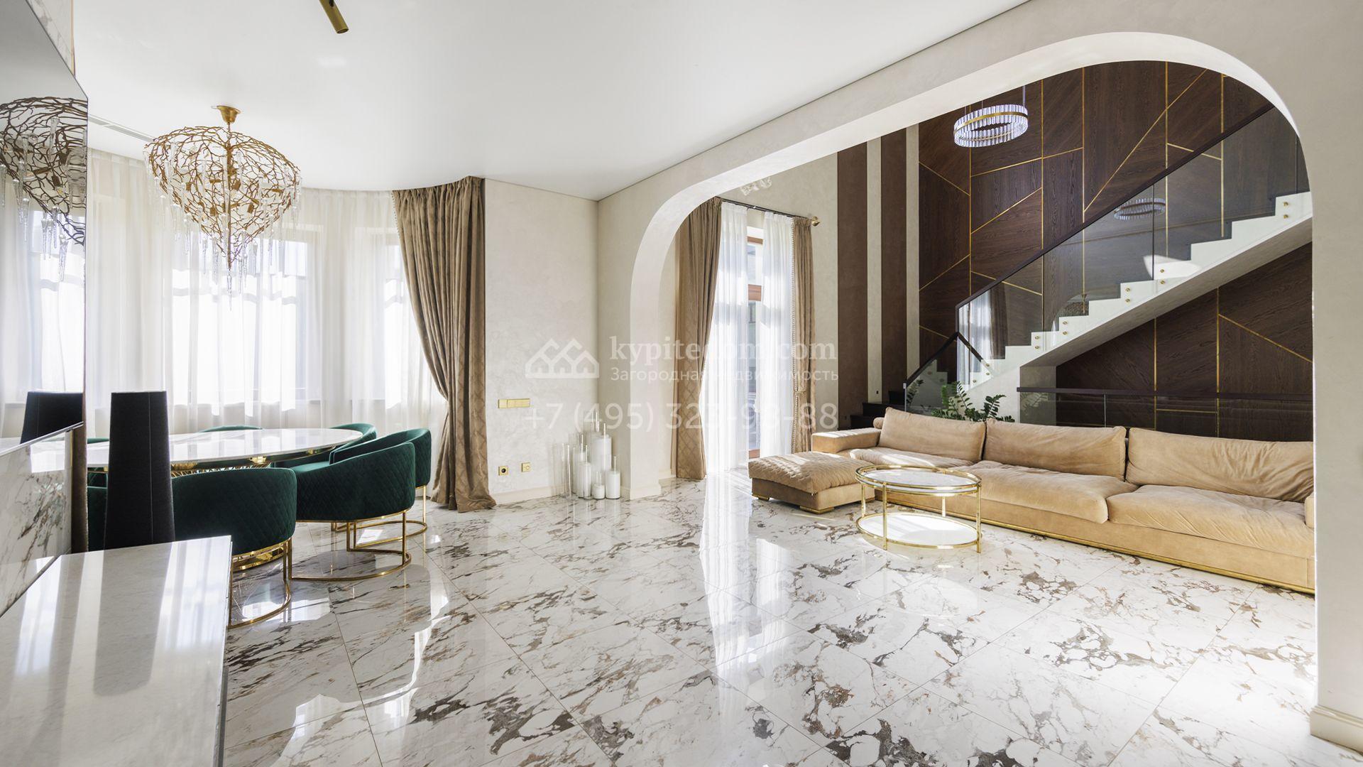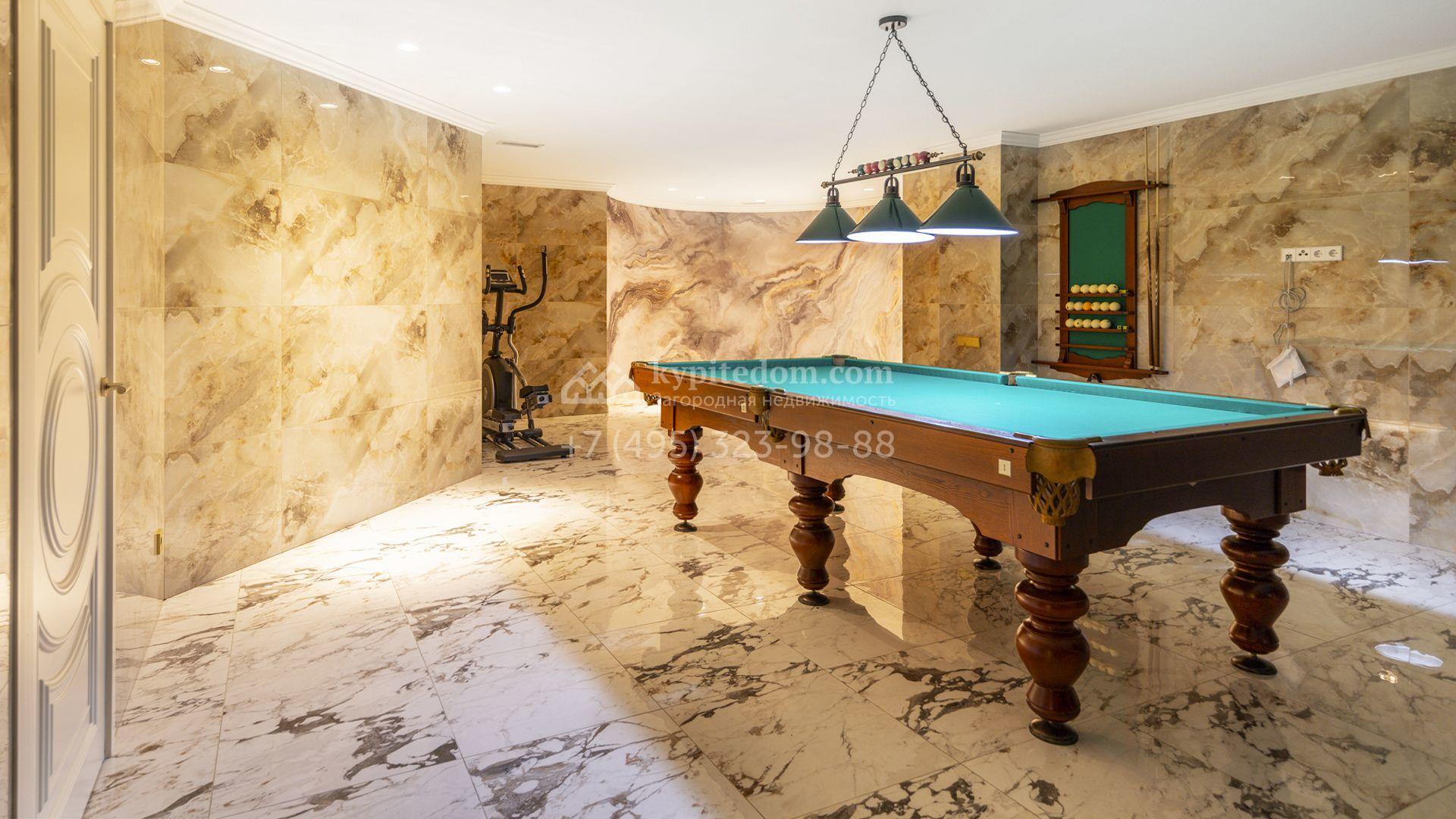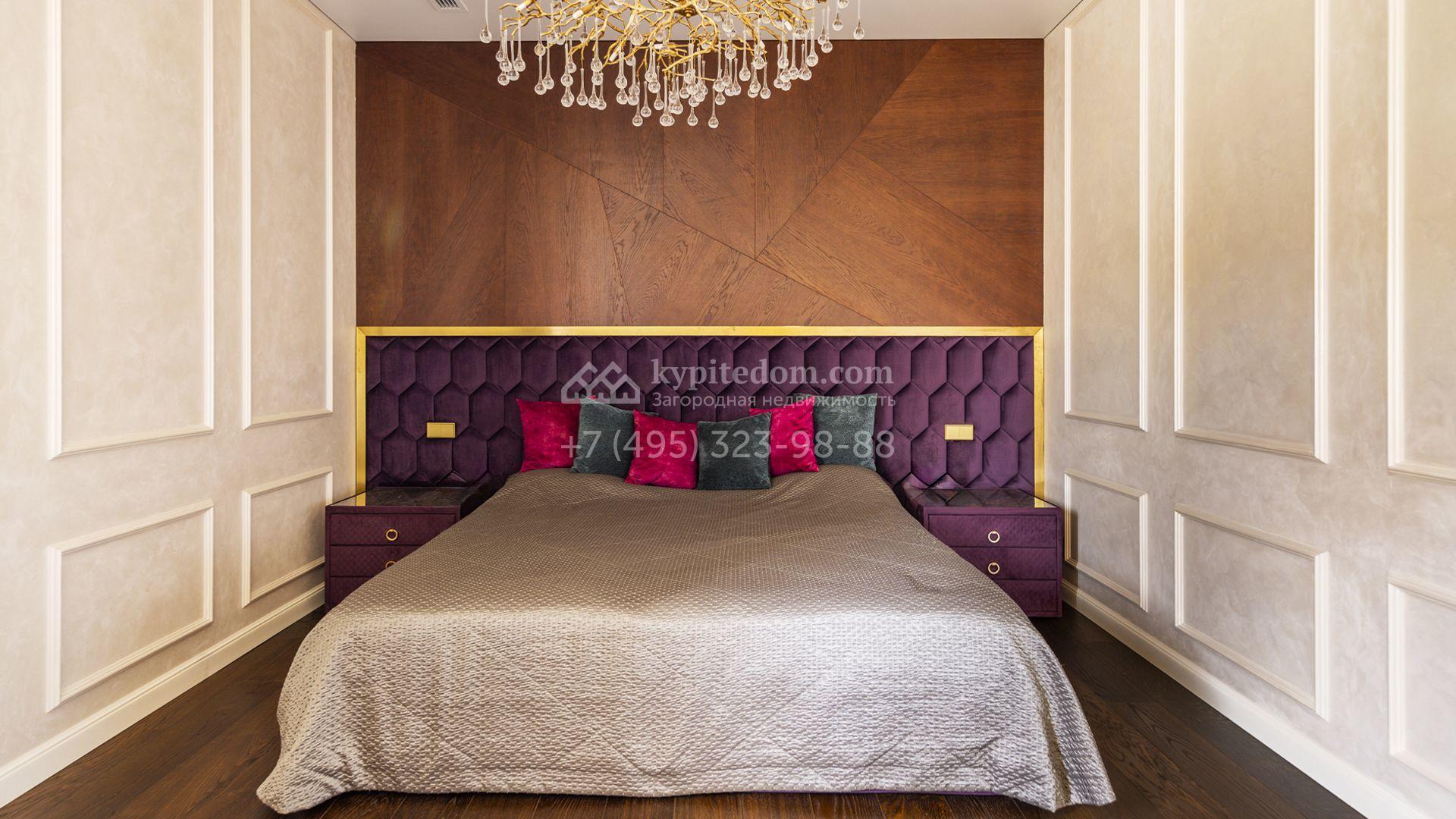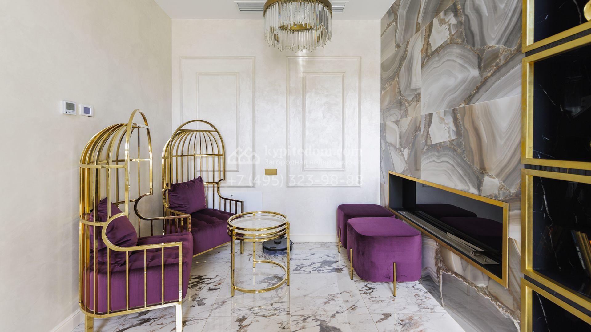 Современные интерьеры выдержаны в светлых тонах и декорированы молдингами, стеновыми панелями с геометричными золотистыми вставками и изящными люстрами. Комфортная мебель, встроенная бытовая техника и система кондиционирования дополняют образ идеального имения. Сердцем дома стала просторная двухсветная гостиная-кухня-столовая с камином. Кроме того, планировка включает четыре уютные спальни, спа-зону с бассейном, баней и хаммамом, бильярдную и комнату отдыха.