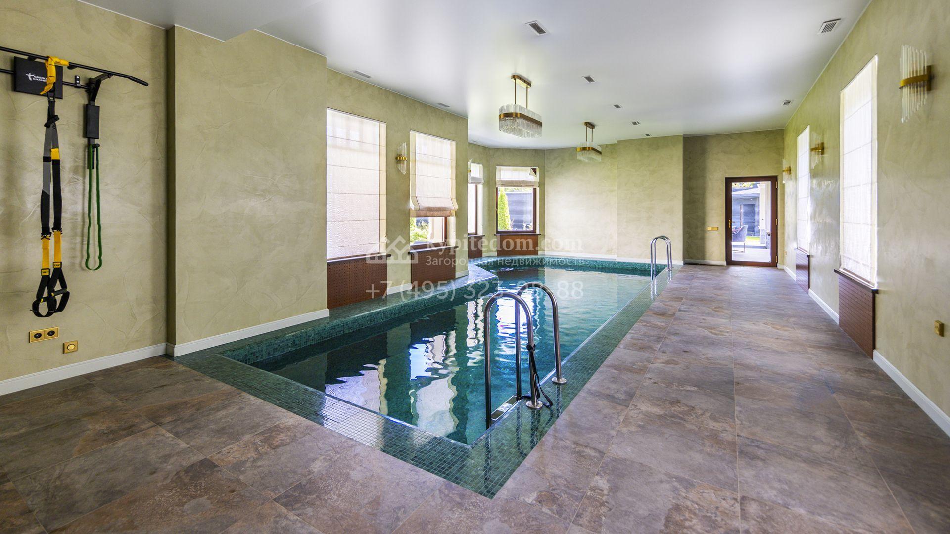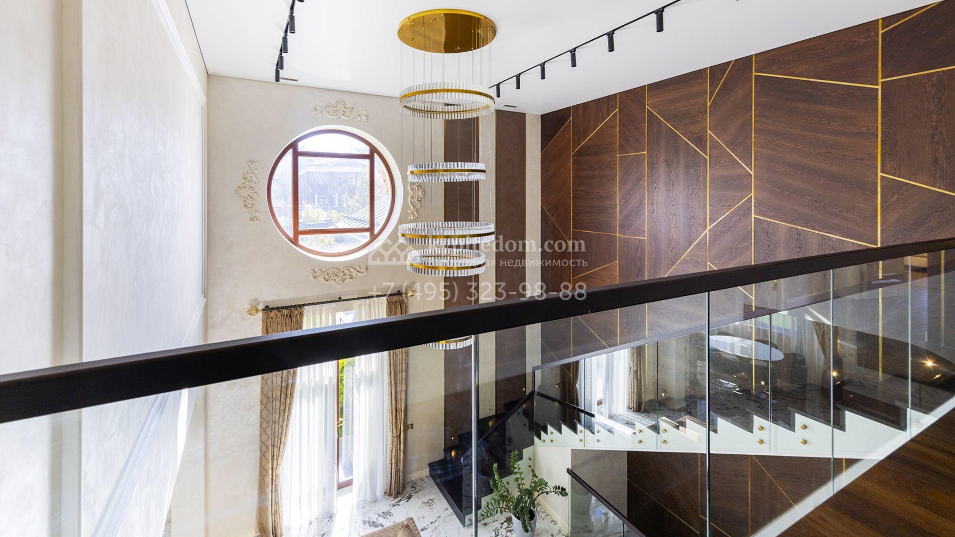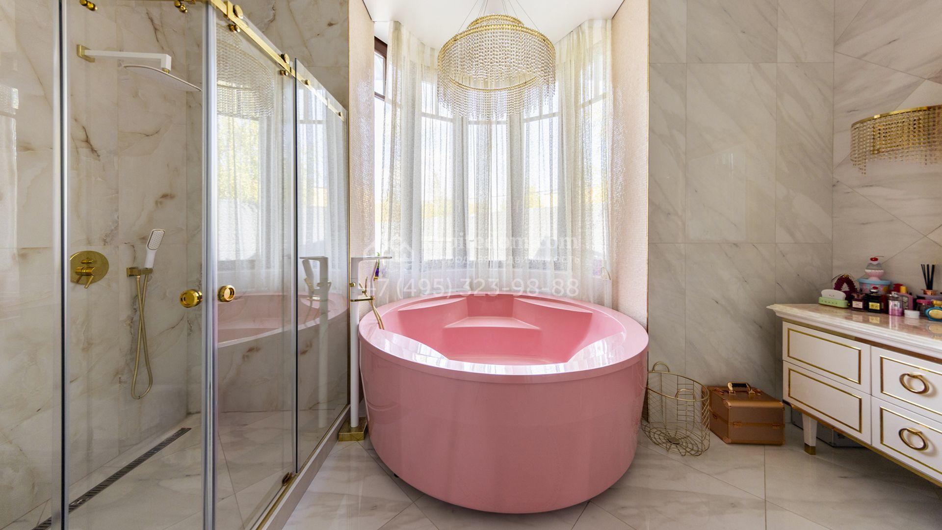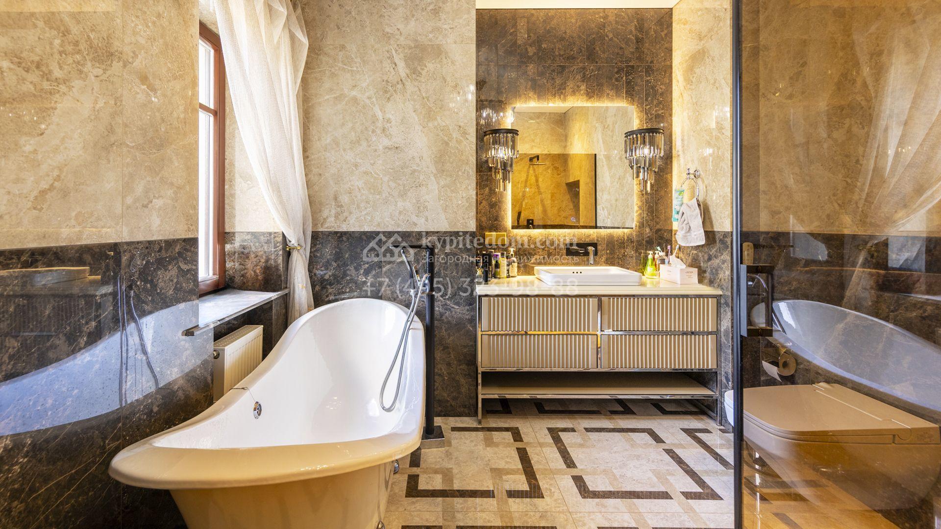 Современные интерьеры выдержаны в светлых тонах и декорированы молдингами, стеновыми панелями с геометричными золотистыми вставками и изящными люстрами. Комфортная мебель, встроенная бытовая техника и система кондиционирования дополняют образ идеального имения. Сердцем дома стала просторная двухсветная гостиная-кухня-столовая с камином. Кроме того, планировка включает четыре уютные спальни, спа-зону с бассейном, баней и хаммамом, бильярдную и комнату отдыха.