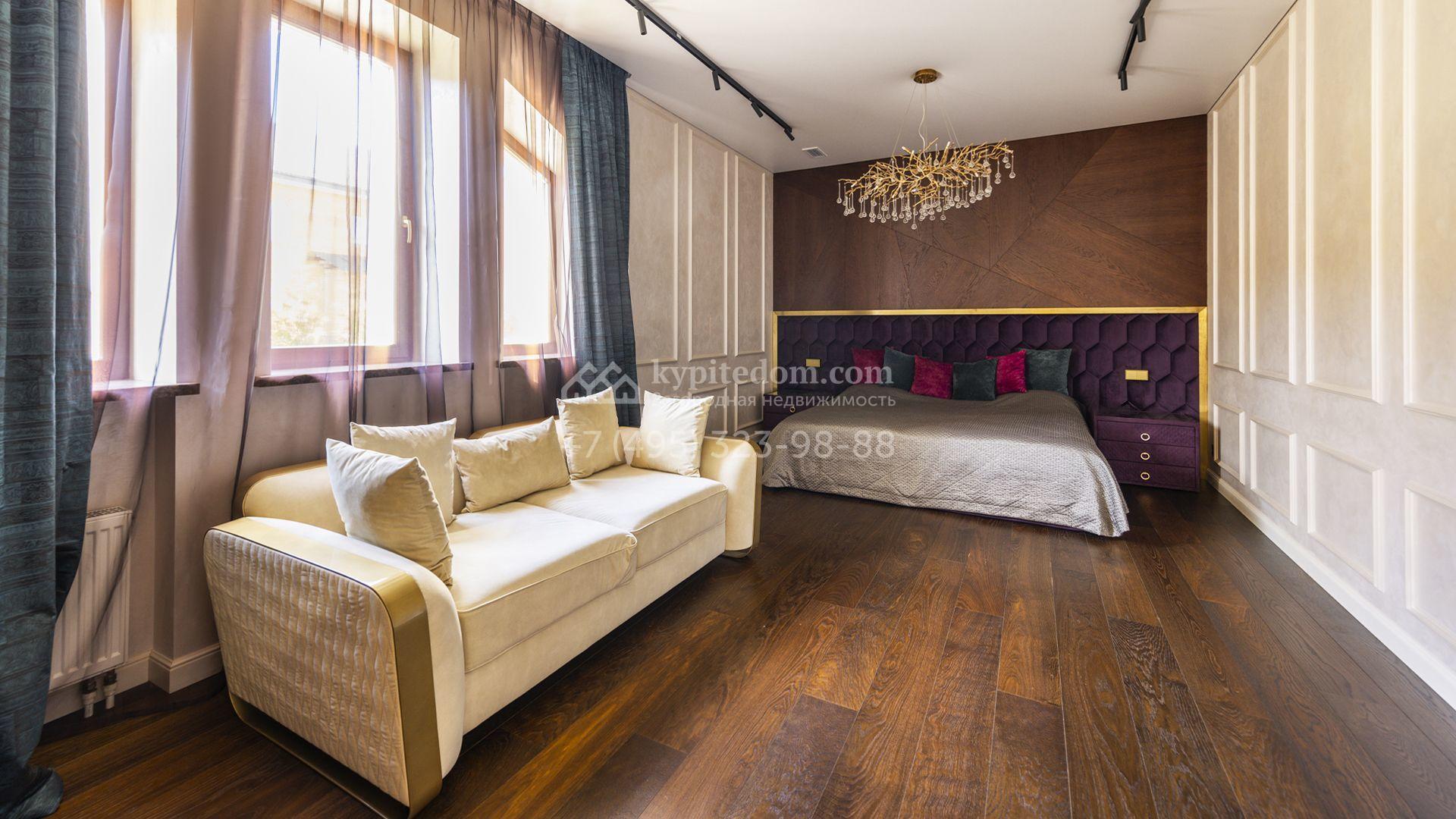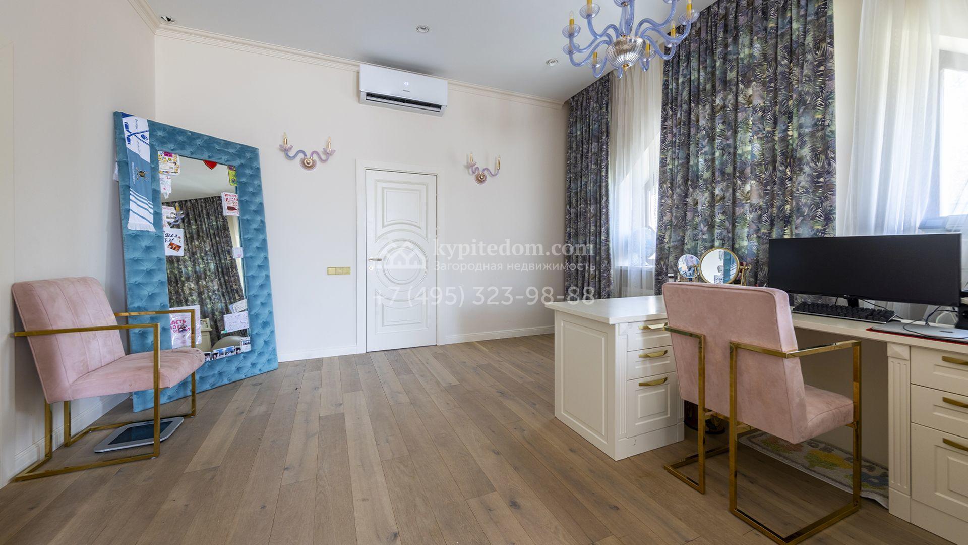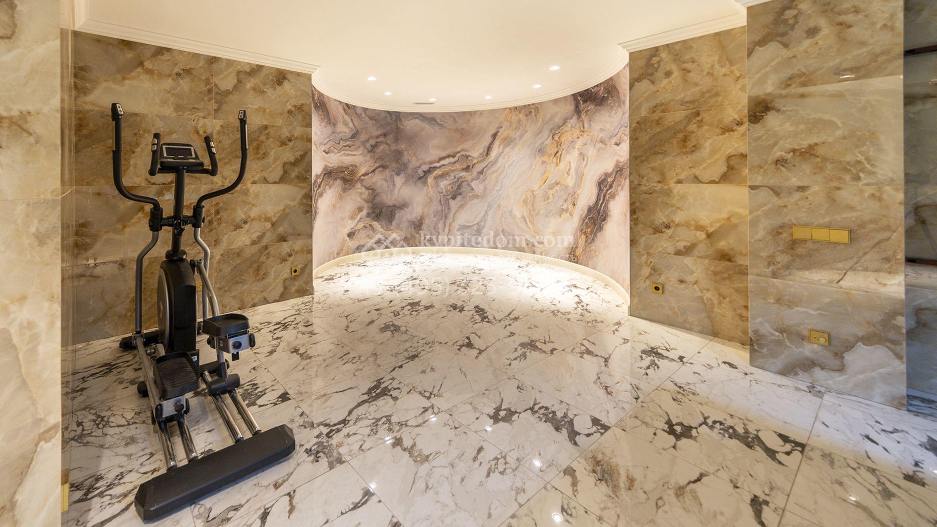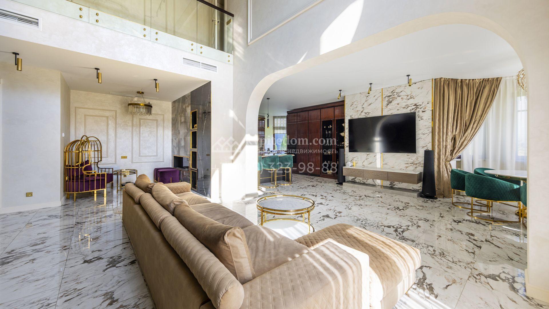 Современные интерьеры выдержаны в светлых тонах и декорированы молдингами, стеновыми панелями с геометричными золотистыми вставками и изящными люстрами. Комфортная мебель, встроенная бытовая техника и система кондиционирования дополняют образ идеального имения. Сердцем дома стала просторная двухсветная гостиная-кухня-столовая с камином. Кроме того, планировка включает четыре уютные спальни, спа-зону с бассейном, баней и хаммамом, бильярдную и комнату отдыха.