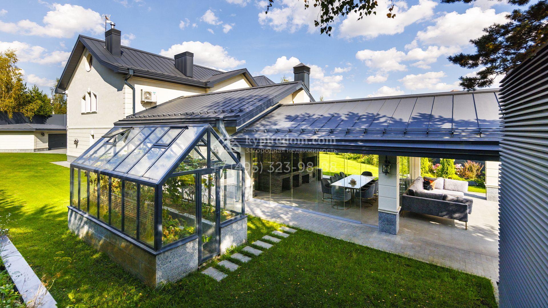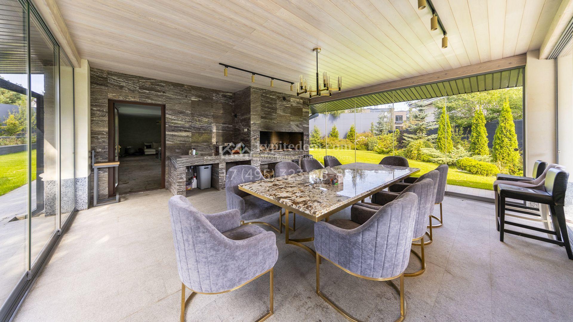 Крытая терраса с зоной для барбекю, оборудованная казаном и тандыром, станет излюбленным местом для вечерних посиделок в кругу семьи и друзей. Оставить автомобиль можно в отдельностоящем гараже, а для ценителей садоводства на территории обустроена практичная теплица. На участке вдохните запах свежескошенной травы, прогуливаясь по мощеным дорожкам, и любуйтесь декоративными кустарниками и ароматными цветниками.