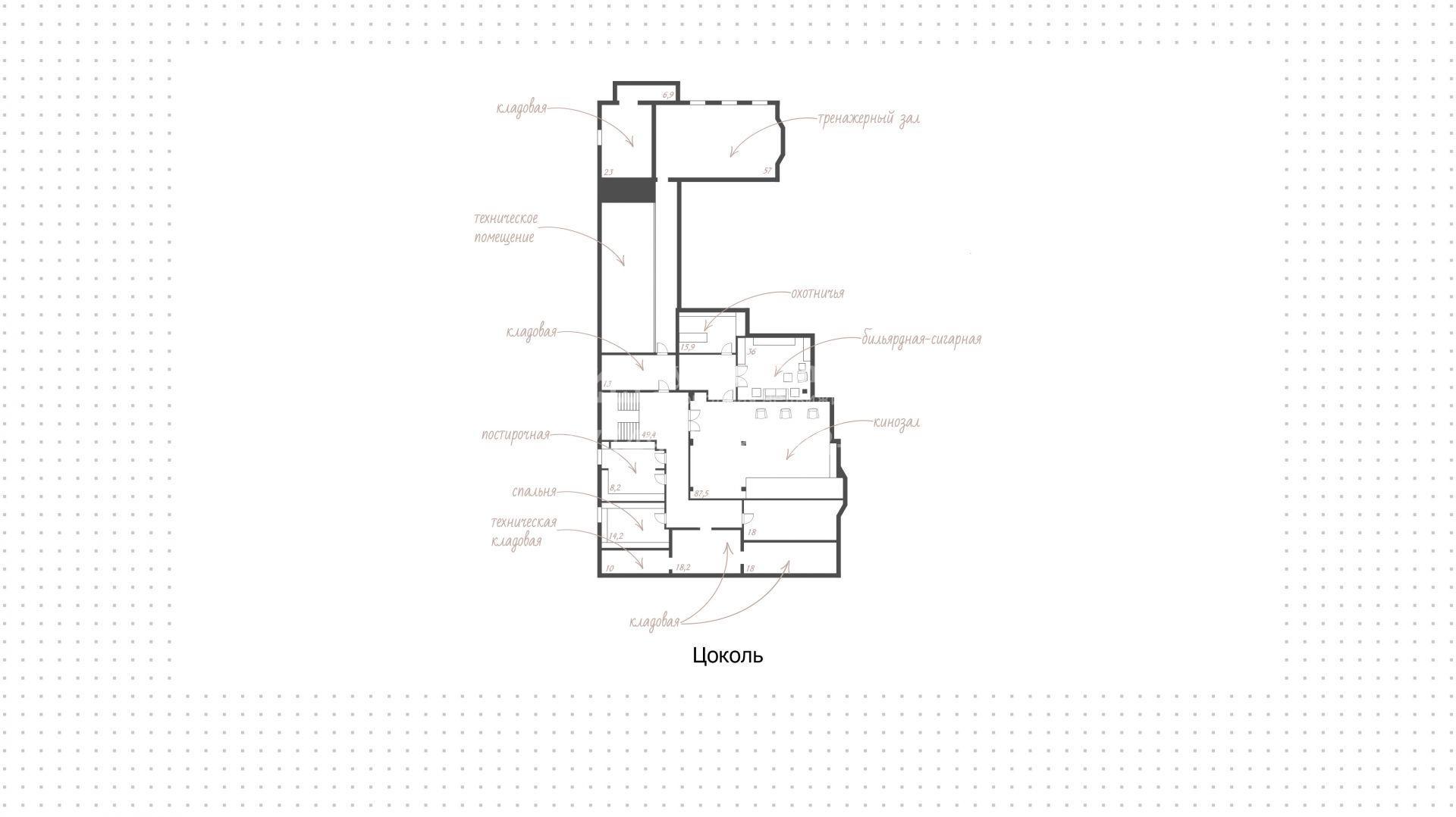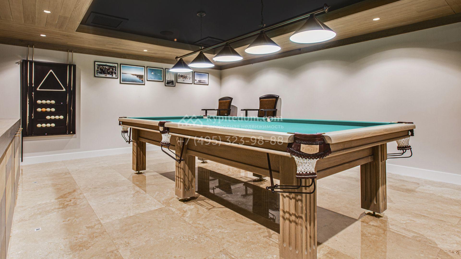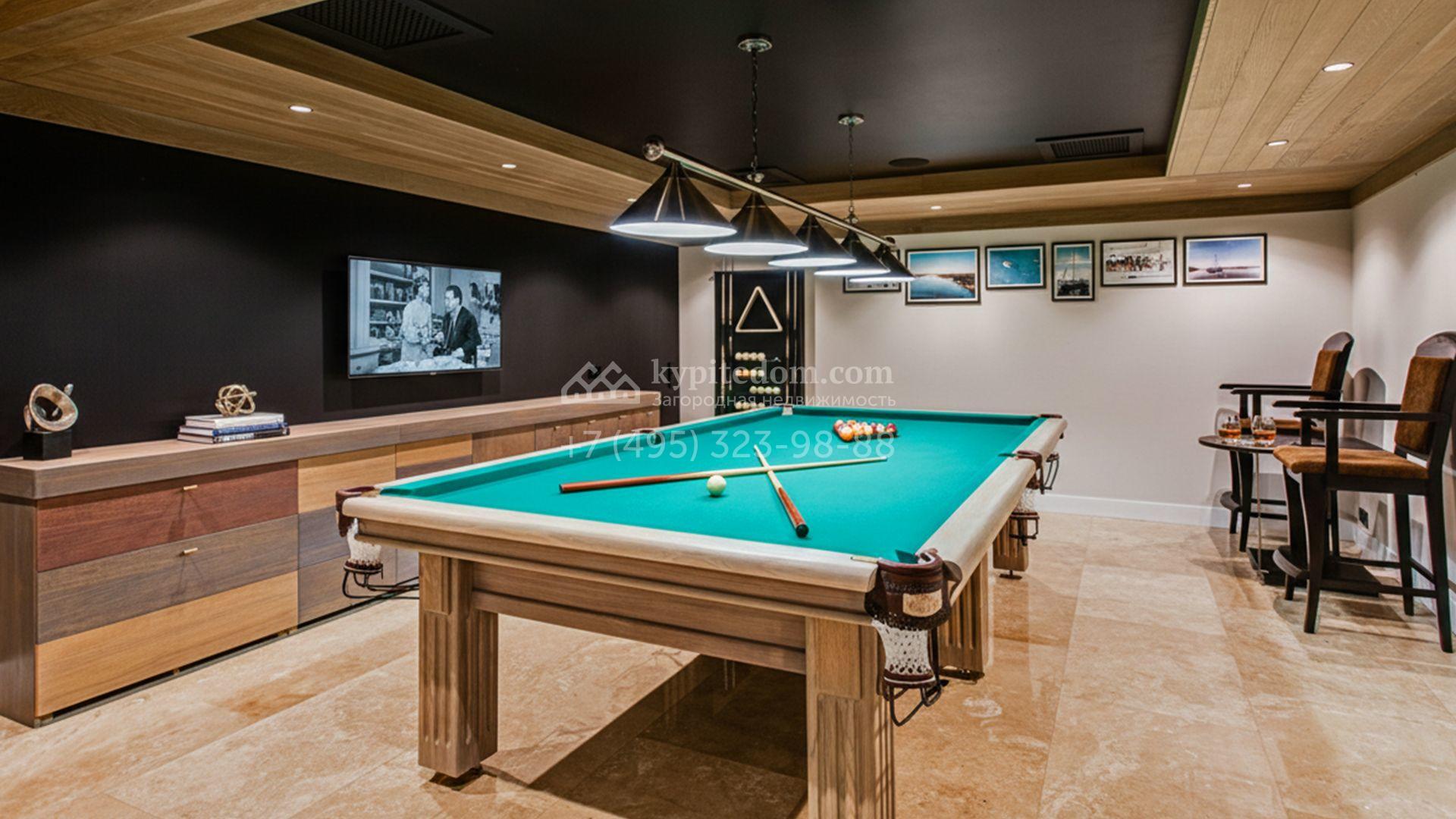 Первый уровень включает просторную гостиную с итальянским дровяным камином, кухню с гарнитуром Hank, столовую, кабинет, гостевую спальню и спа-зону с переливным бассейном длиной 10,5 метров, баней, отделанной канадским кедром, и баром с караоке. По эффектной «парящей» лестнице вы подниметесь на второй этаж — в приватную зону отдыха с тремя спальнями. Цокольный уровень посвящён развлечениям: здесь разместили кинозал, бильярдную-сигарную и тренажёрный зал. На террасе будет приятно насладиться закатом с чашкой кофе.