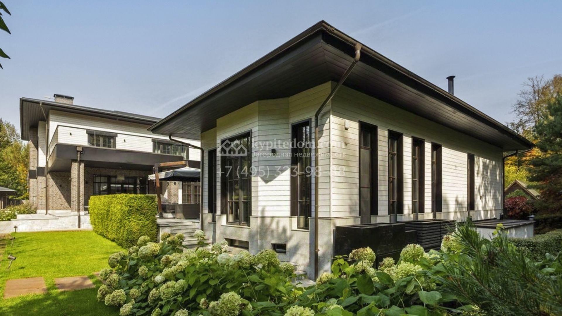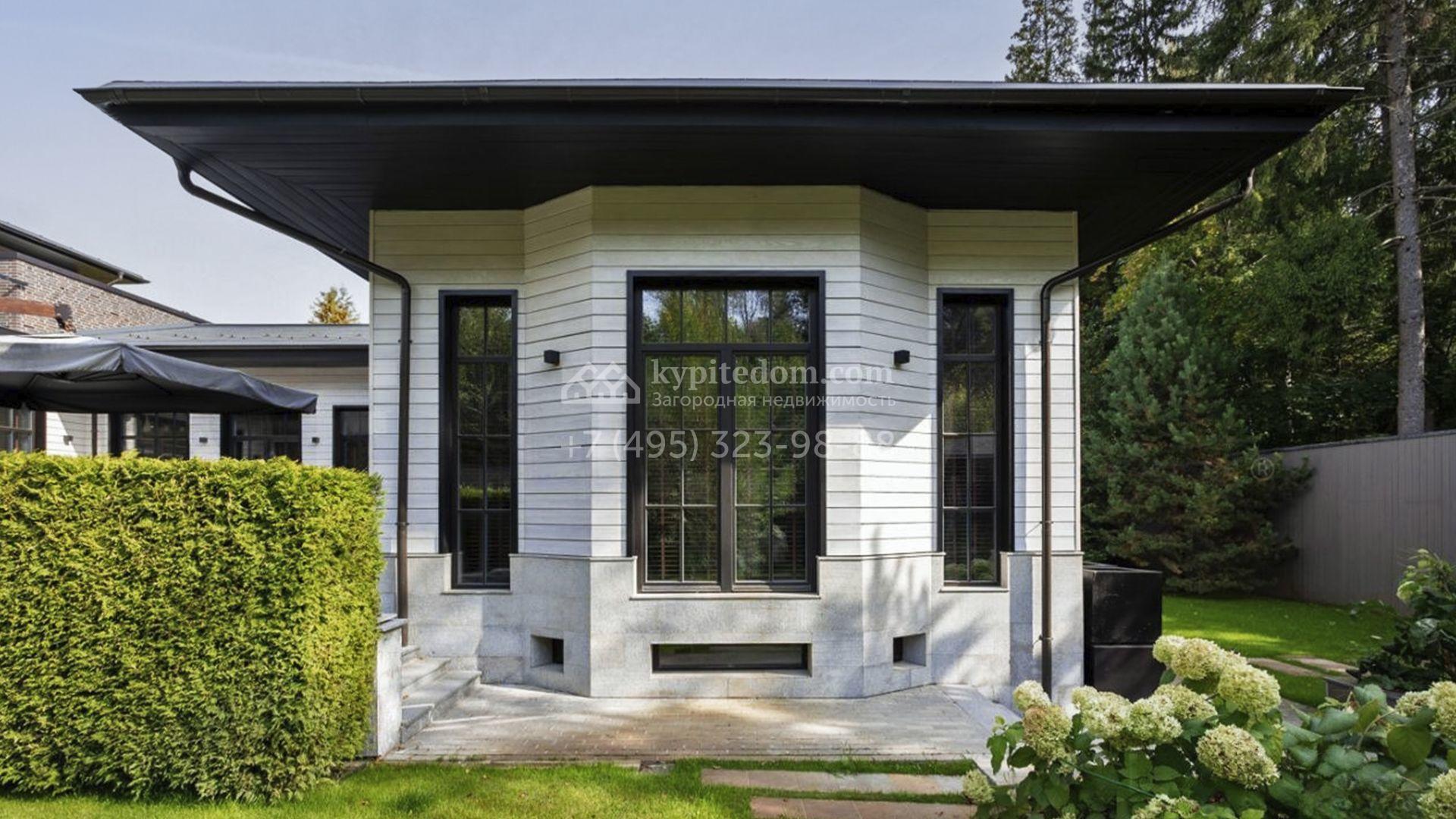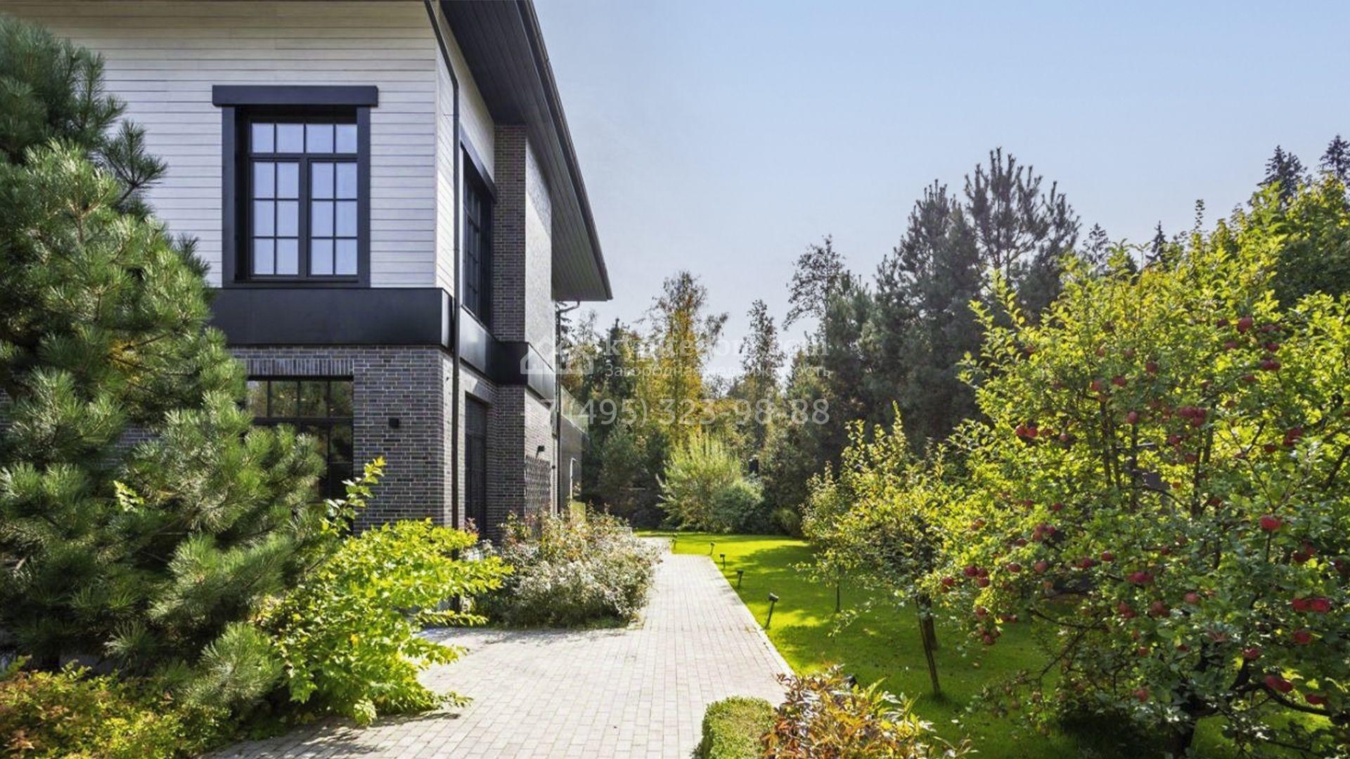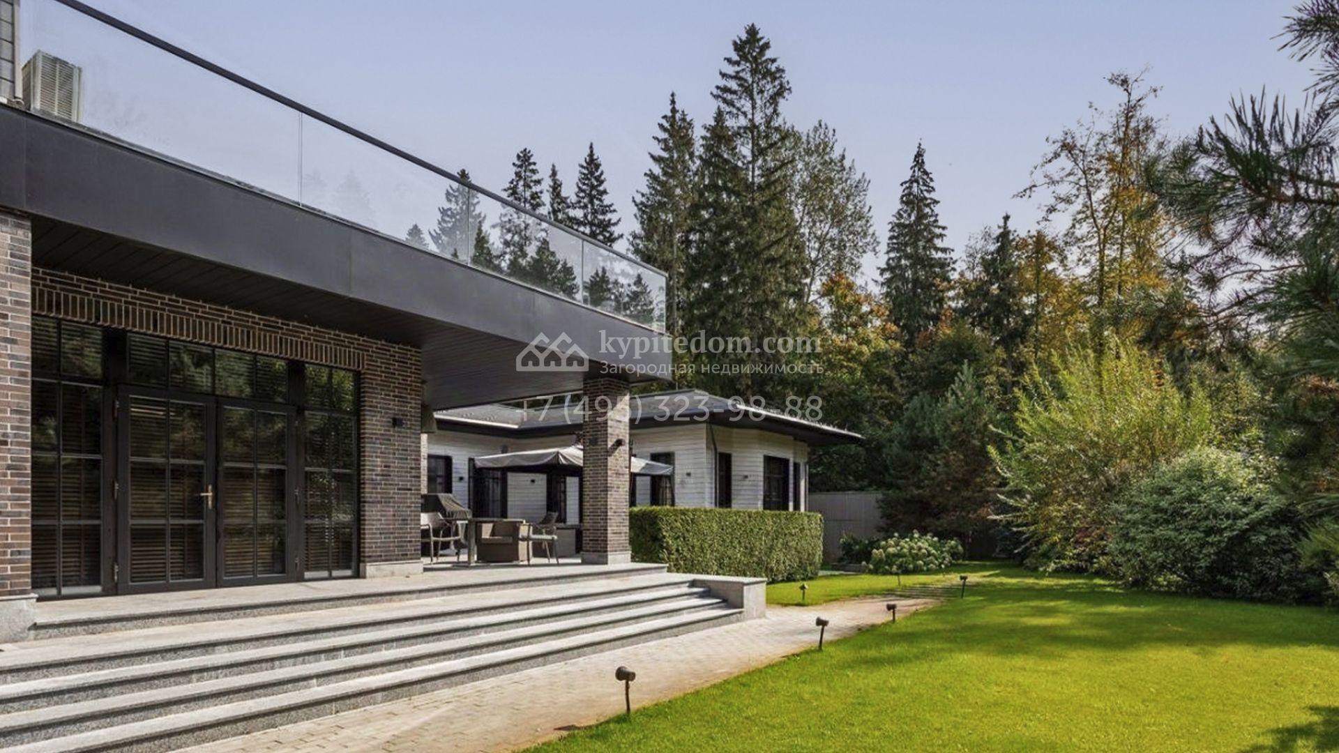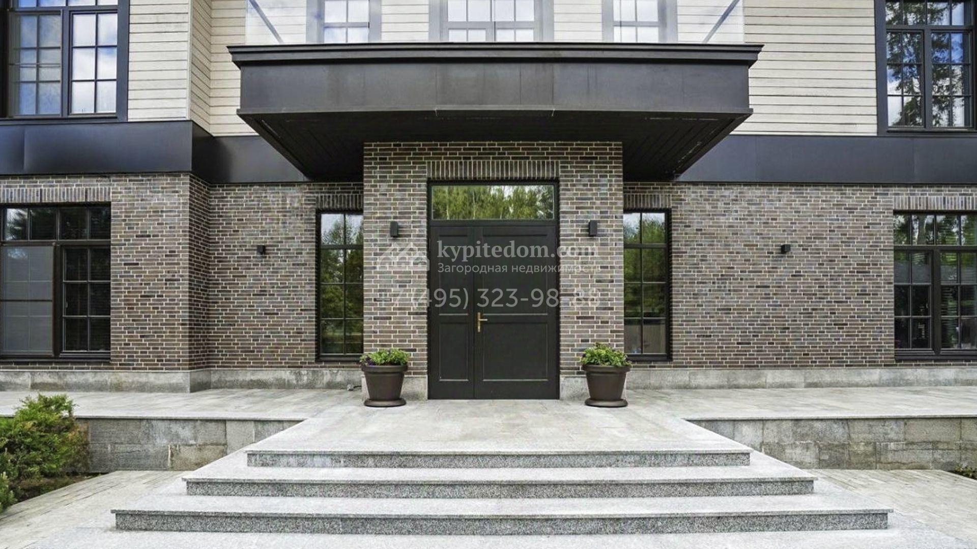 Загородный особняк площадью 1000 м² расположен на живописном участке с выходом в лес. Площадь достигает 79 соток, из которых 54 сотки находятся в аренде, а 25 — в частной собственности. Фасад, сочетающий немецкий ригельный кирпич Feldhaus Klinker, лиственницу и гранит, создаёт современный образ, который с наступлением вечера подчёркивается стильной подсветкой.