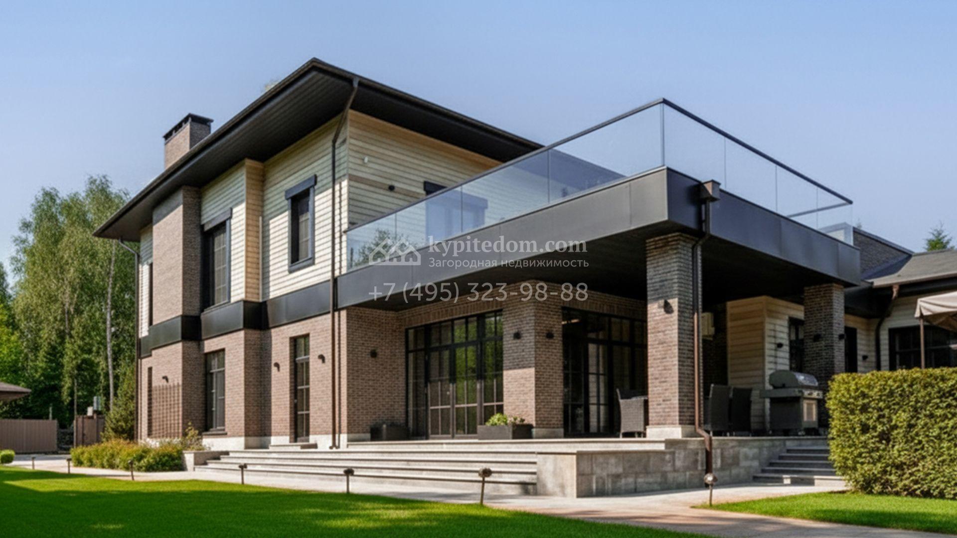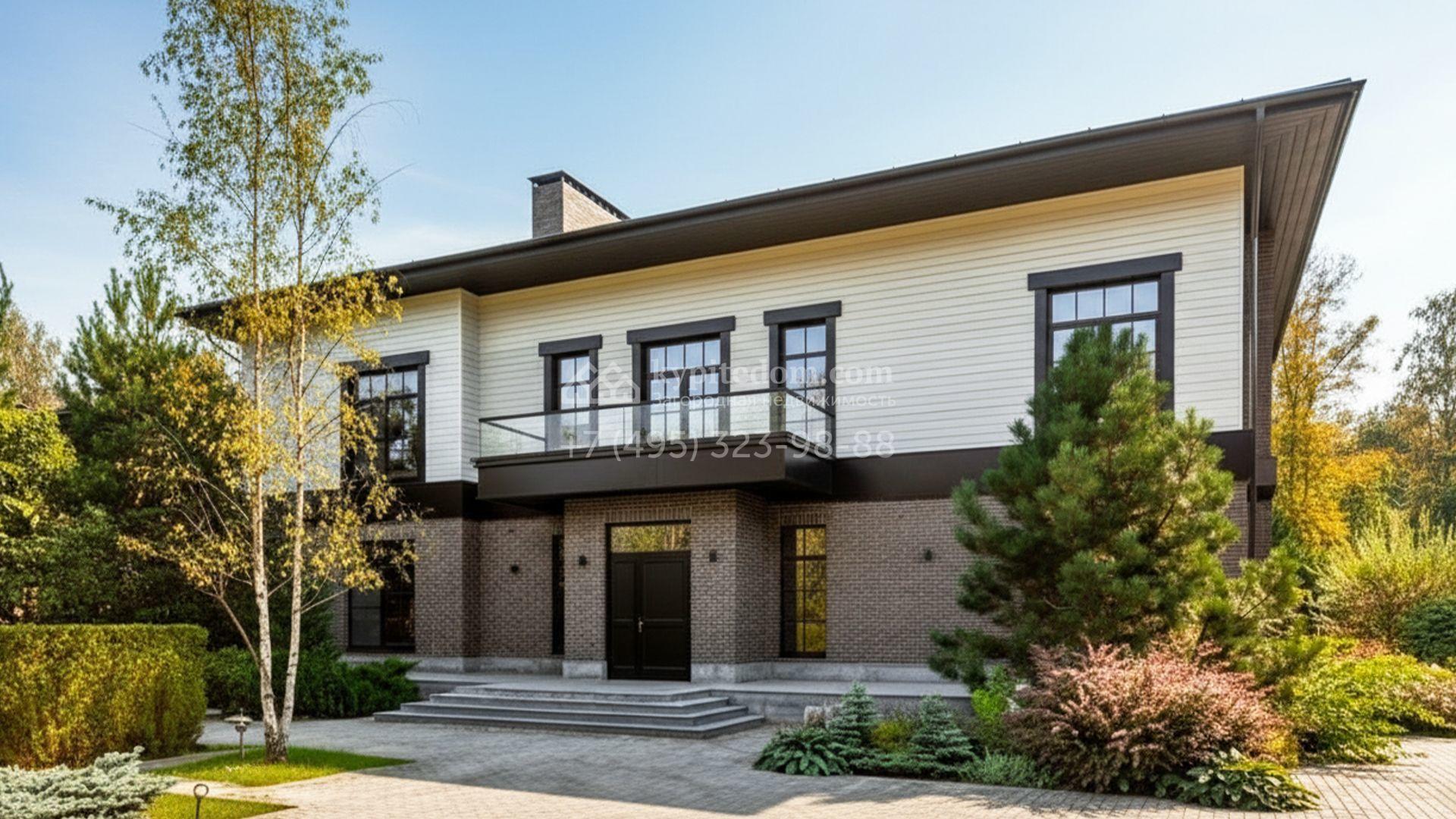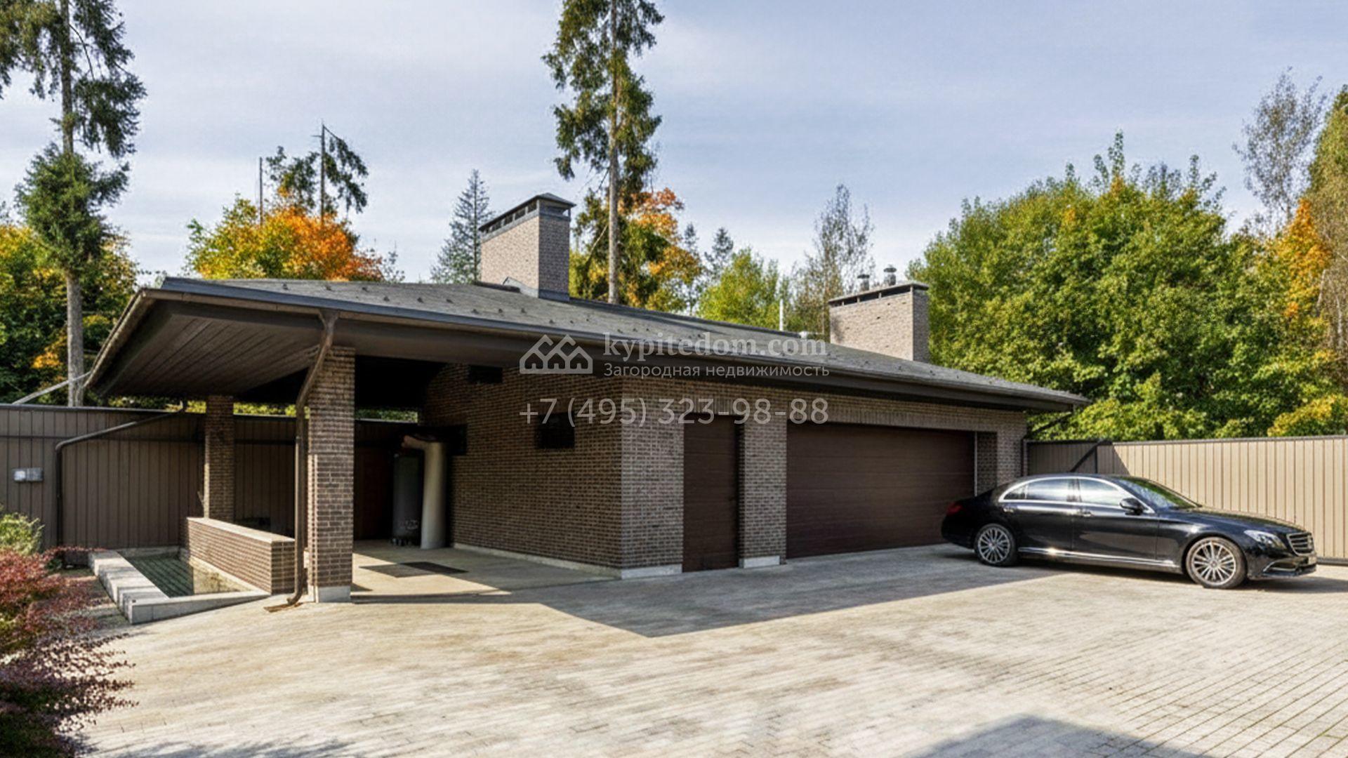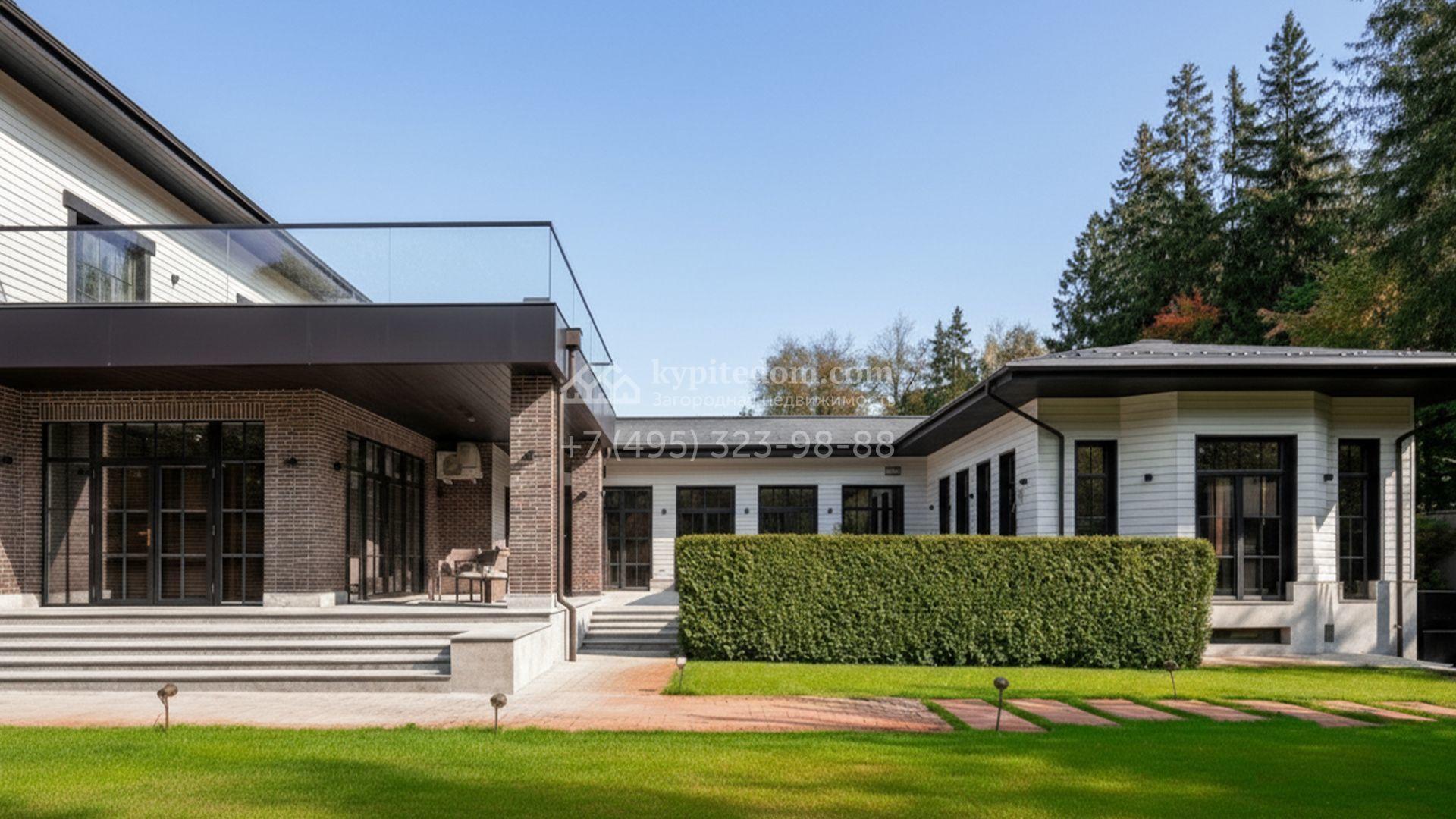 Загородный особняк площадью 1000 м² расположен на живописном участке с выходом в лес. Площадь достигает 79 соток, из которых 54 сотки находятся в аренде, а 25 — в частной собственности. Фасад, сочетающий немецкий ригельный кирпич Feldhaus Klinker, лиственницу и гранит, создаёт современный образ, который с наступлением вечера подчёркивается стильной подсветкой.