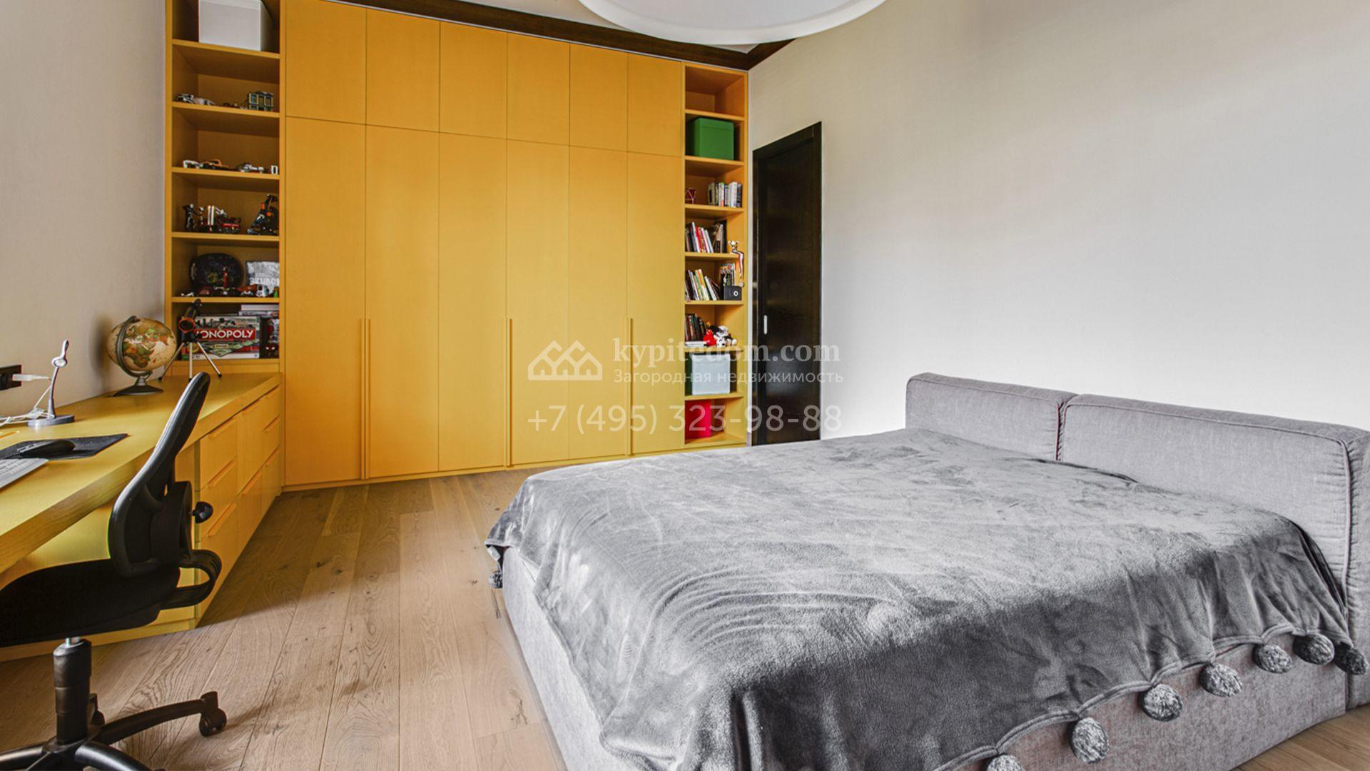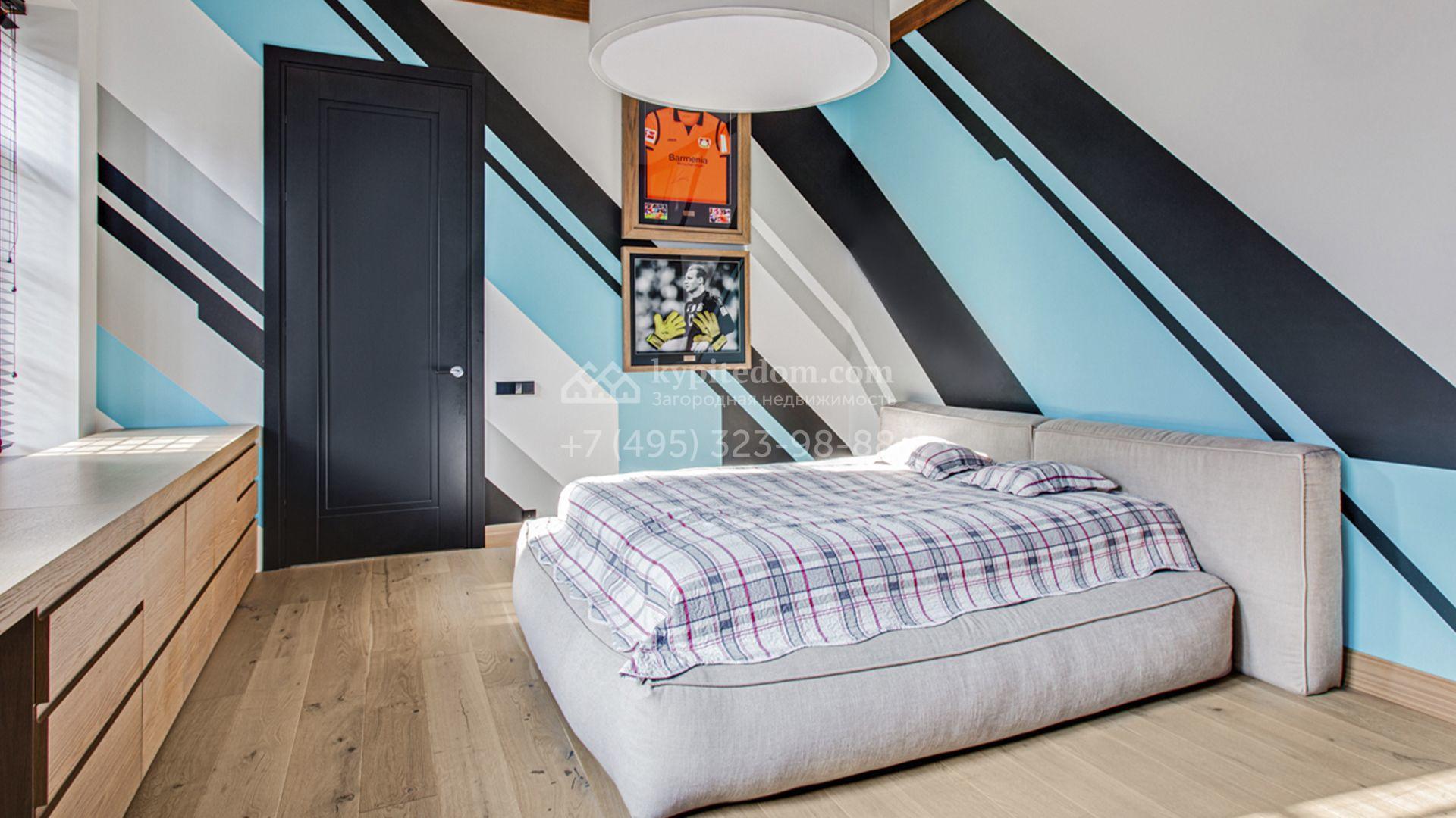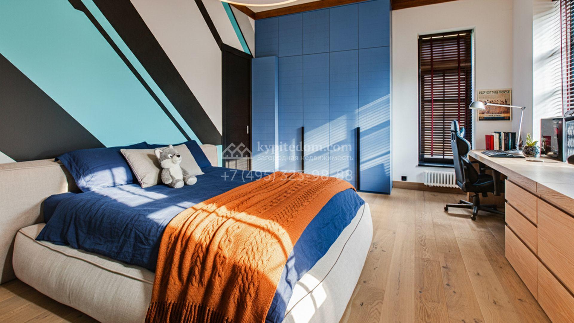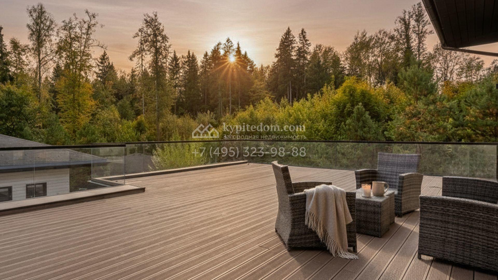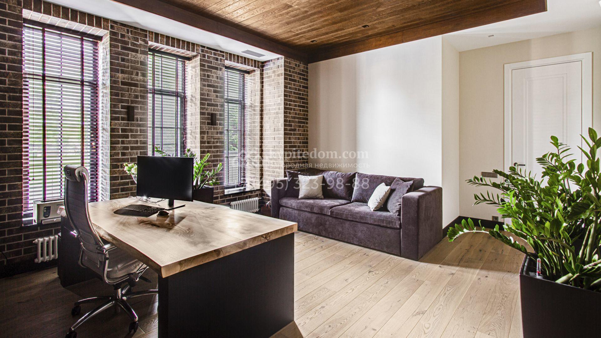 Загородный особняк площадью 1000 м² расположен на живописном участке с выходом в лес. Площадь достигает 79 соток, из которых 54 сотки находятся в аренде, а 25 — в частной собственности. Фасад, сочетающий немецкий ригельный кирпич Feldhaus Klinker, лиственницу и гранит, создаёт современный образ, который с наступлением вечера подчёркивается стильной подсветкой.