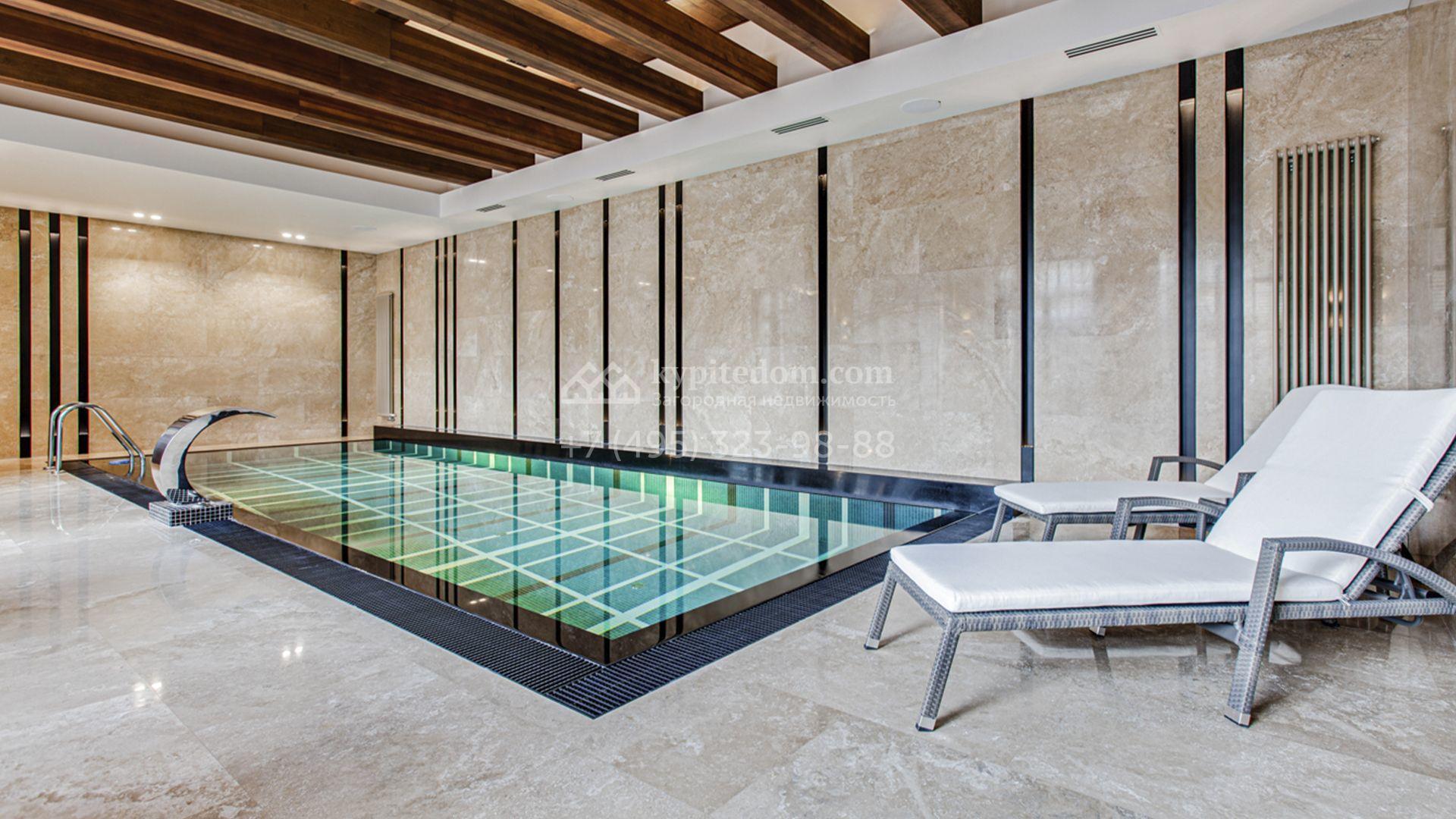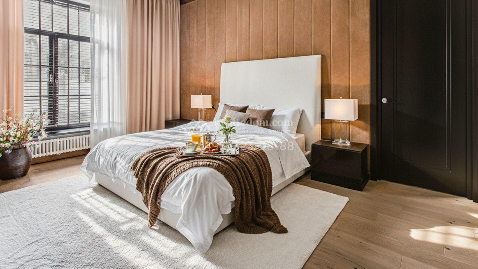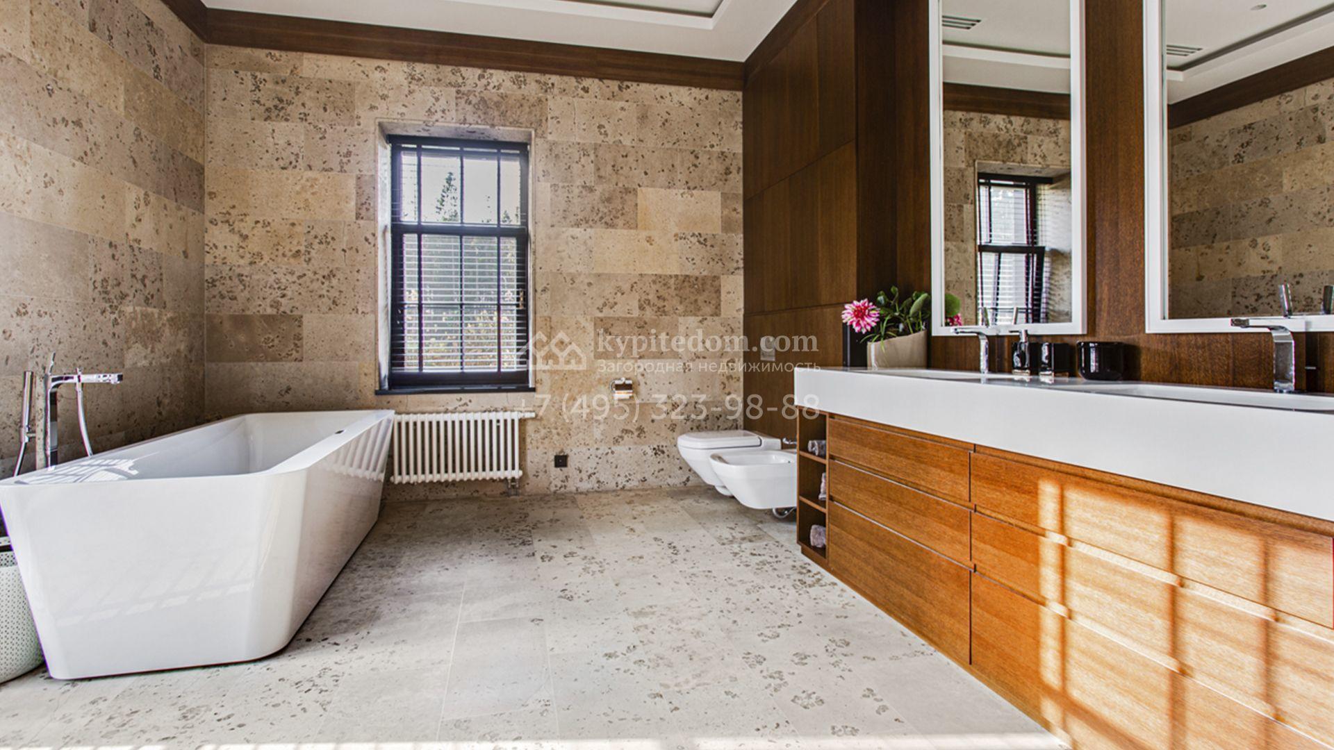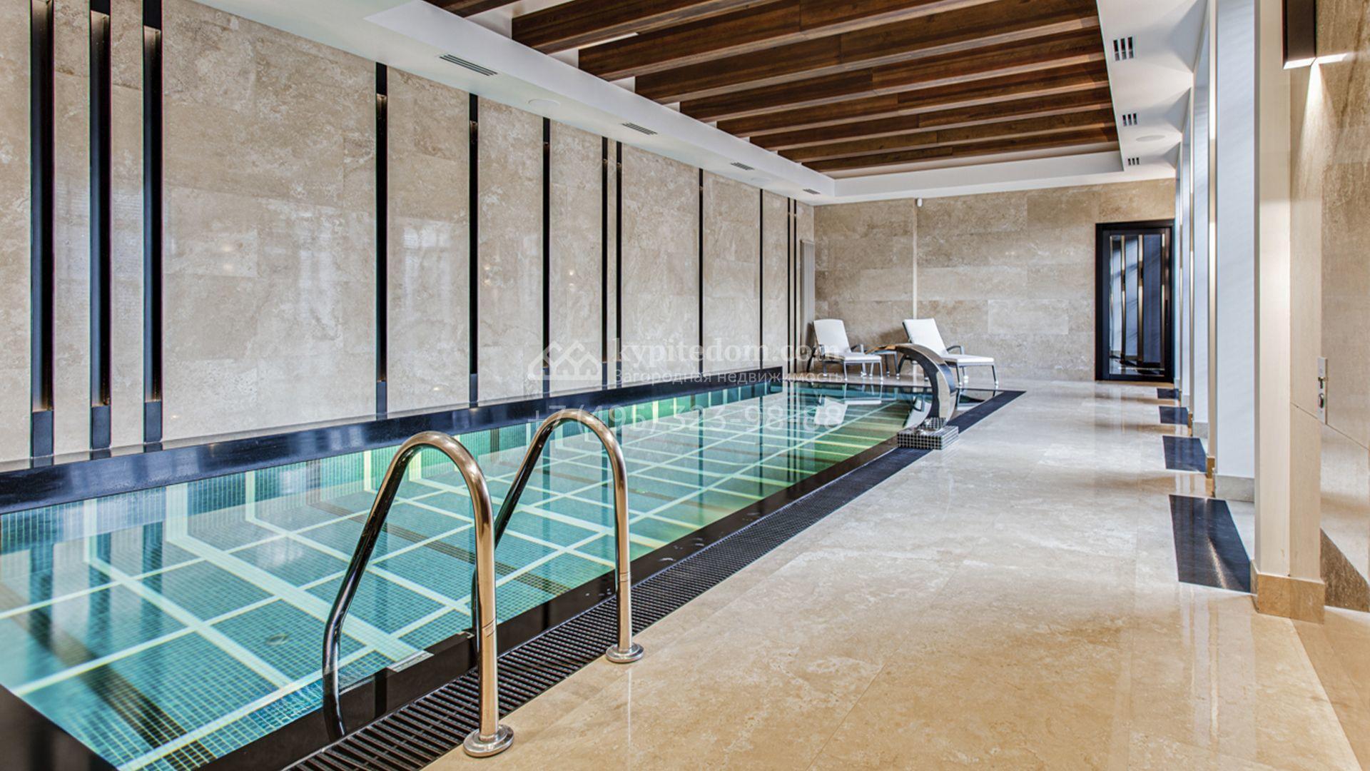 Светлые дизайнерские интерьеры отделаны с использованием натуральных мрамора, травертина и ценных пород дерева. На полу уложены инженерная доска Finex и плитка с подогревом. Коттедж укомплектован элегантной мебелью, техникой Miele и Liebherr и сантехникой Villeroy&Boch, а особую атмосферу формируют светильники Delta Light. Комфорт обеспечивают системы кондиционирования, приточно-вытяжной вентиляции Systemair и «умный дом» от Control 4.