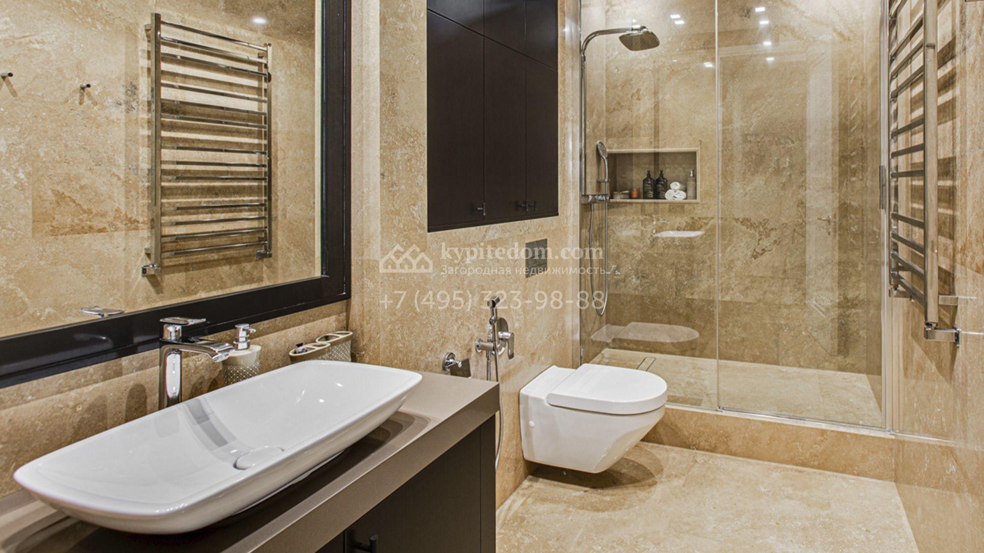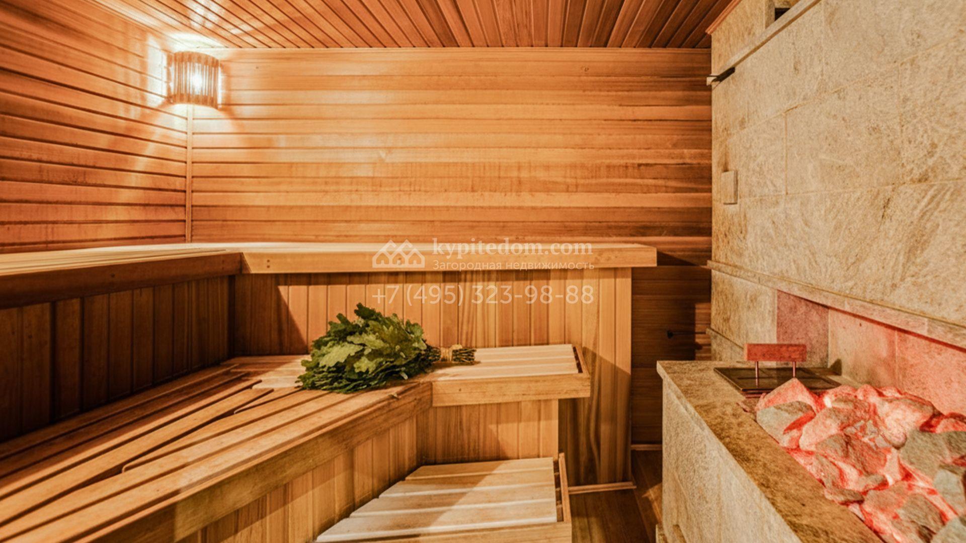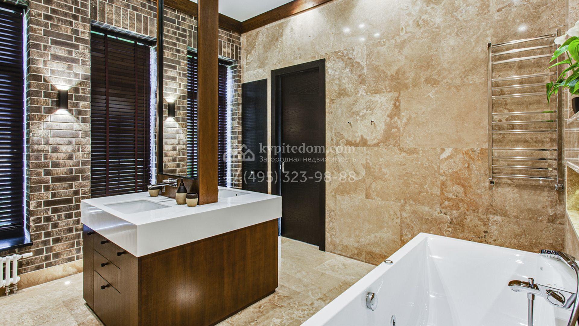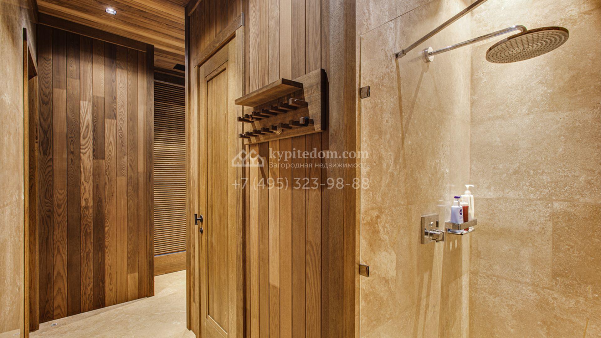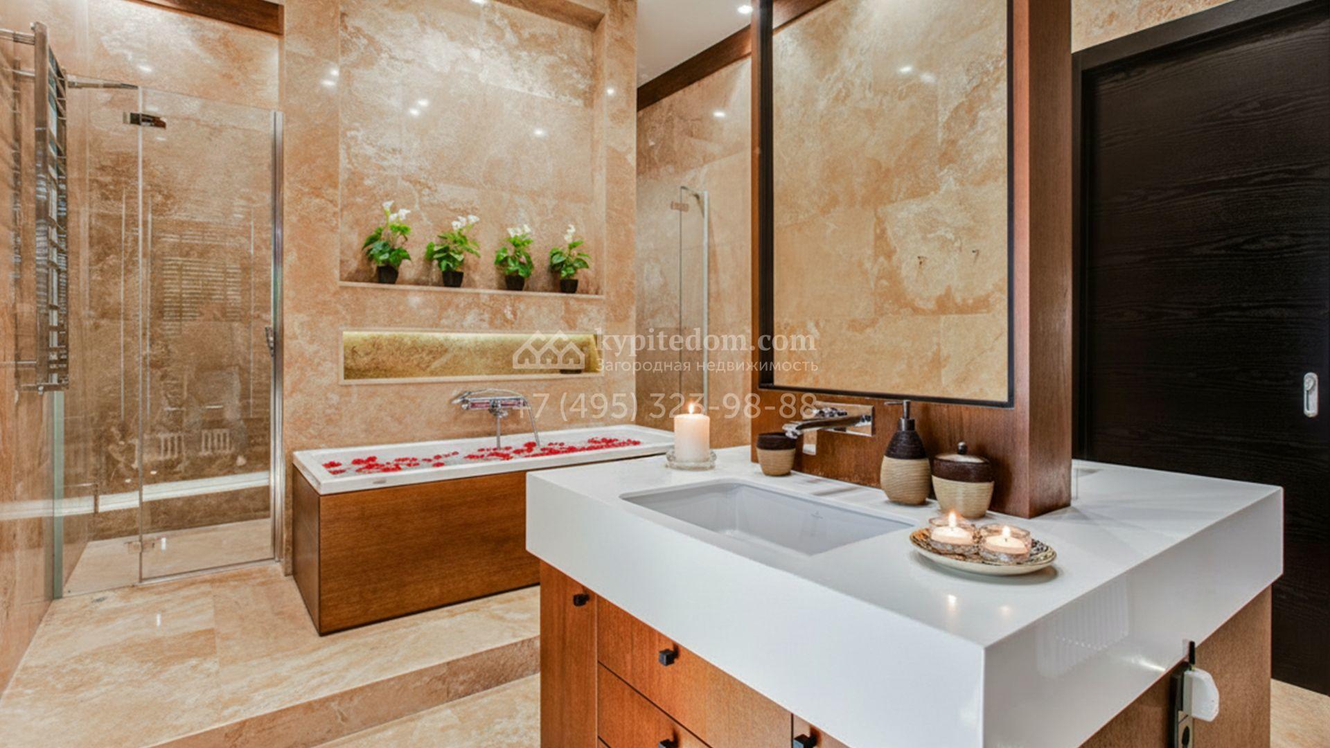 Светлые дизайнерские интерьеры отделаны с использованием натуральных мрамора, травертина и ценных пород дерева. На полу уложены инженерная доска Finex и плитка с подогревом. Коттедж укомплектован элегантной мебелью, техникой Miele и Liebherr и сантехникой Villeroy&Boch, а особую атмосферу формируют светильники Delta Light. Комфорт обеспечивают системы кондиционирования, приточно-вытяжной вентиляции Systemair и «умный дом» от Control 4.