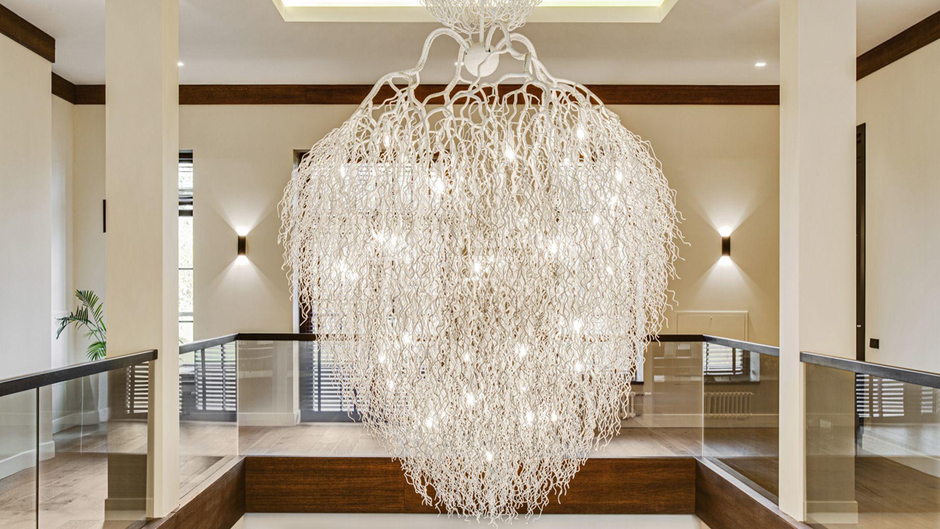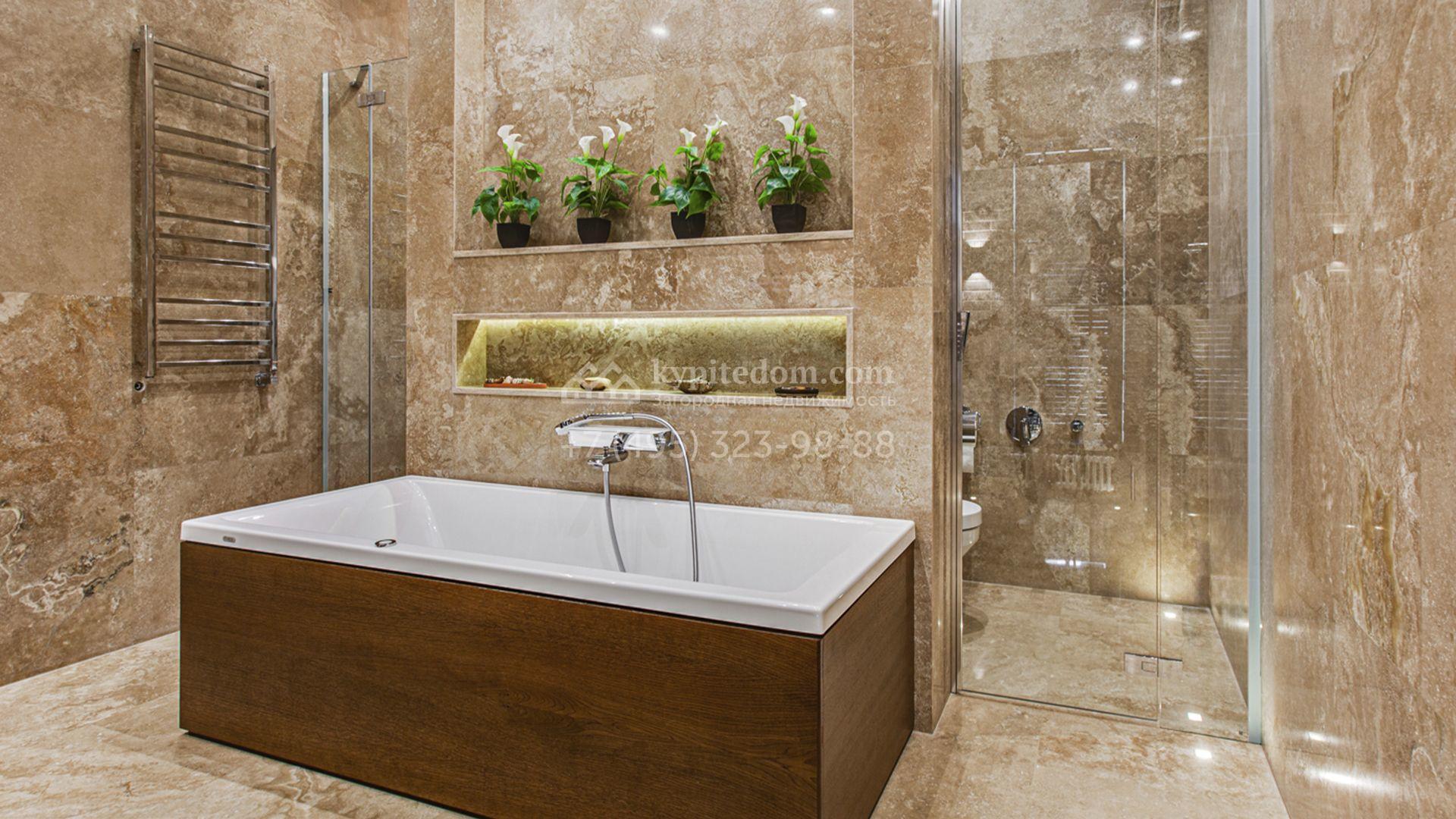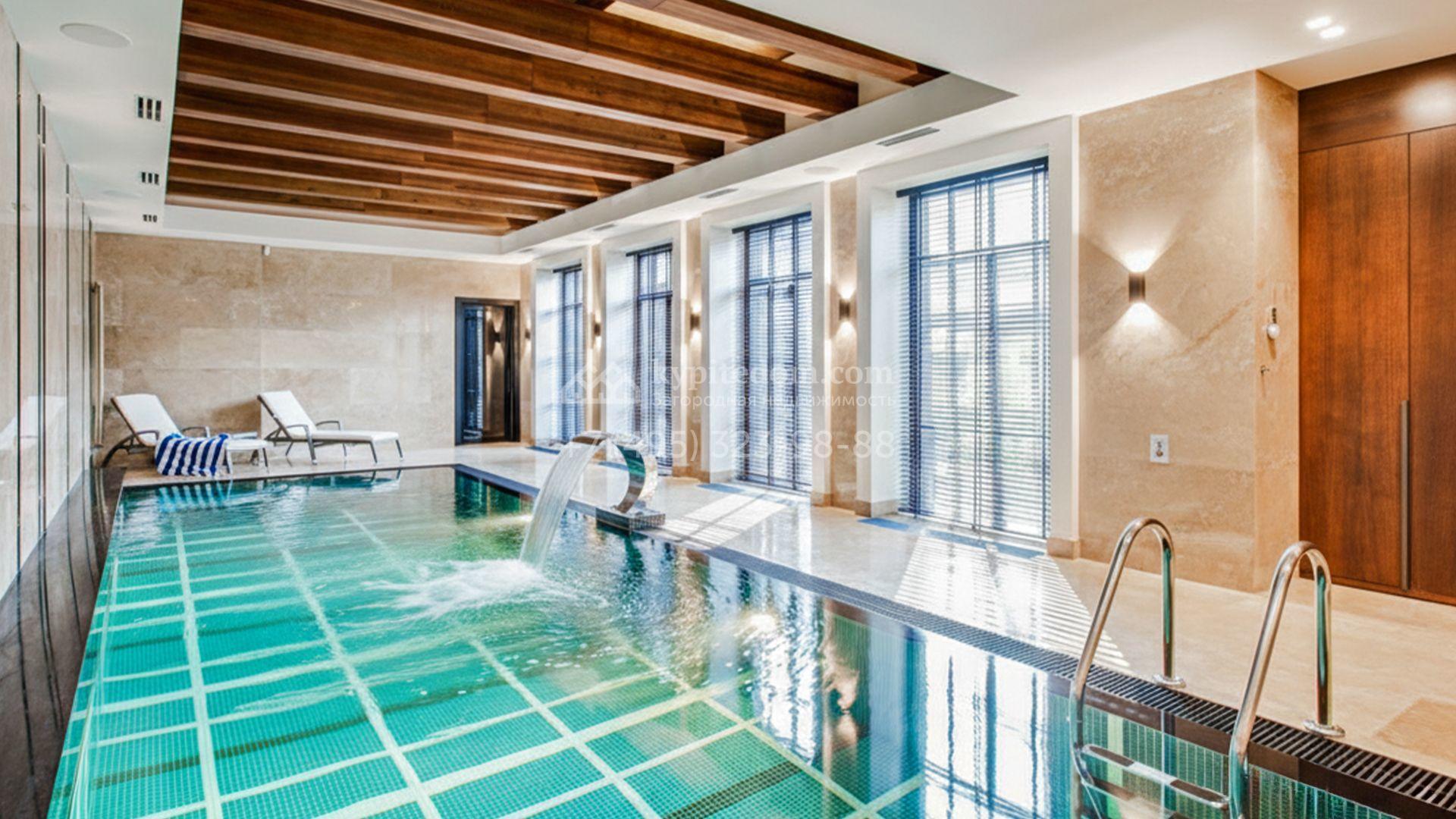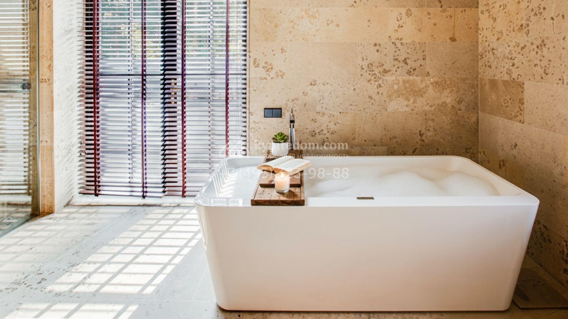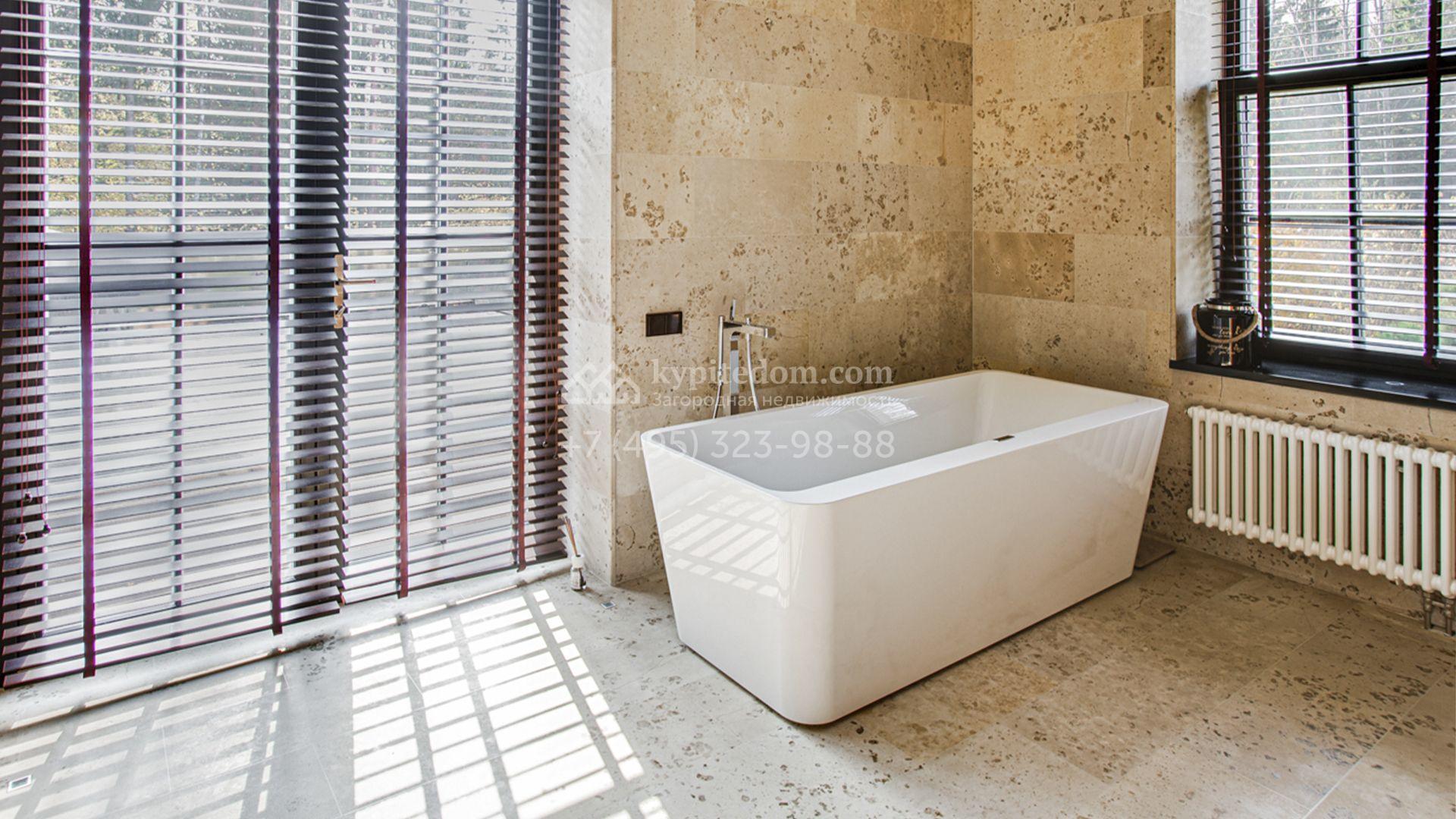 Светлые дизайнерские интерьеры отделаны с использованием натуральных мрамора, травертина и ценных пород дерева. На полу уложены инженерная доска Finex и плитка с подогревом. Коттедж укомплектован элегантной мебелью, техникой Miele и Liebherr и сантехникой Villeroy&Boch, а особую атмосферу формируют светильники Delta Light. Комфорт обеспечивают системы кондиционирования, приточно-вытяжной вентиляции Systemair и «умный дом» от Control 4.