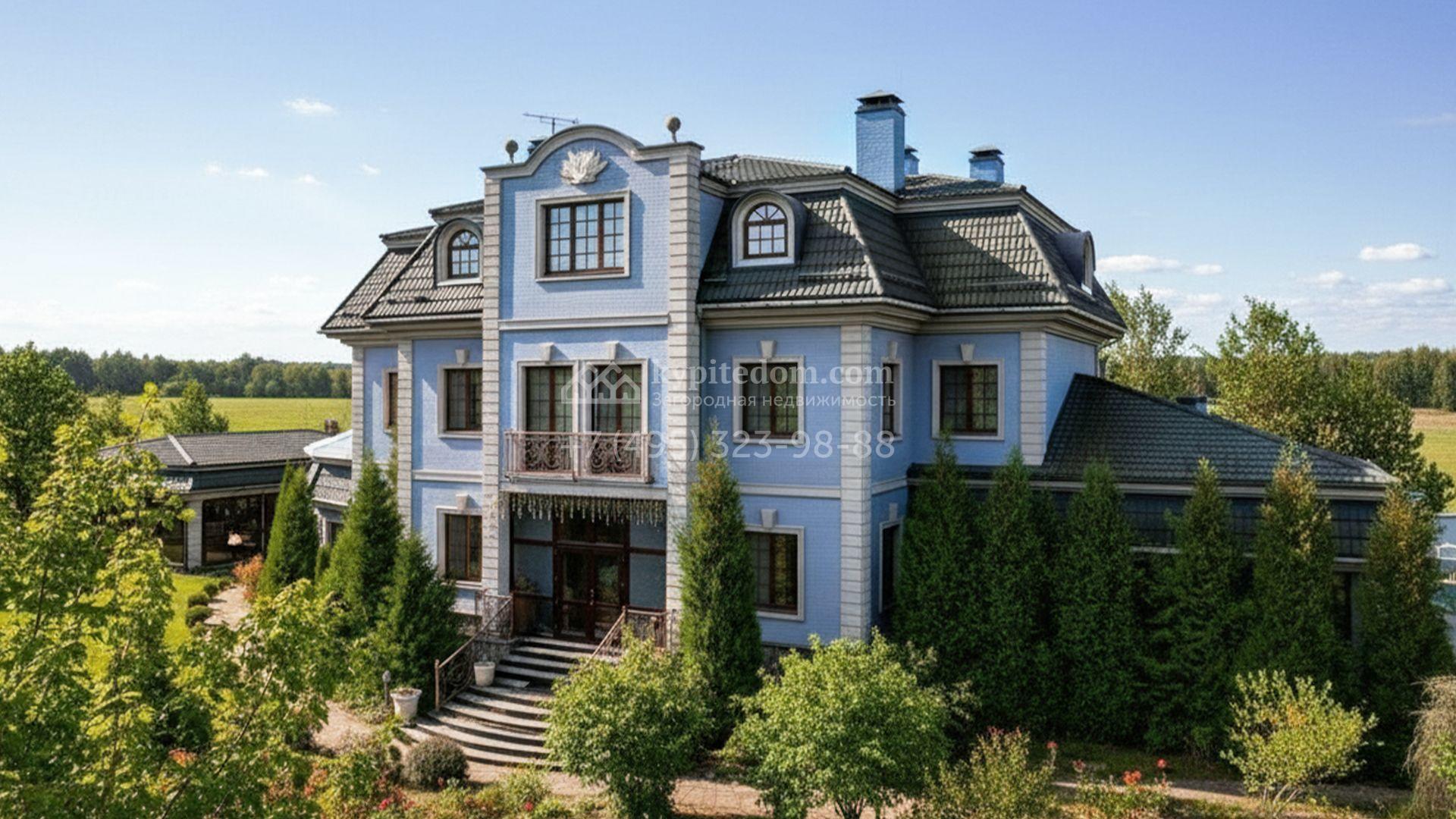 Загородный особняк площадью 940 м² расположен на участке 28 соток рядом с реликтовым Масловским лесом. Архитектура выполнена в изящном неоклассическом стиле: фасад из клинкерного кирпича небесно-голубого оттенка украшен замковым камнем, рустовкой и лепниной, а из деревянных окон открываются живописные виды на природу. Интерьеры, выдержанные в светлых тонах, укомплектованы мебелью и встроенной бытовой техникой. Система «тёплый пол» поддерживает идеальный микроклимат в течение всего года.