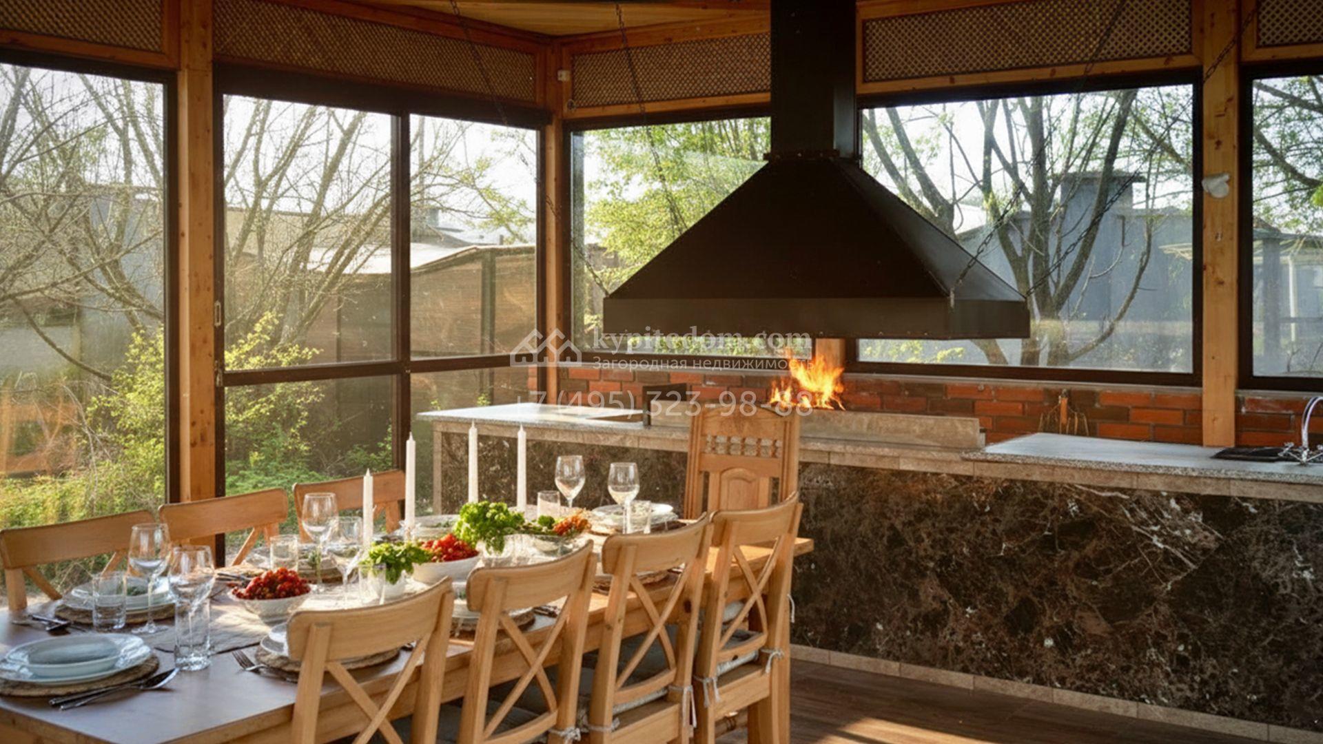 Кроме того, на территории разместили отдельностоящий трёхместный гараж с квартирой для гостей или персонала, удобный автомобильный навес, всесезонный зал для мероприятий и банкетов с барбекю-зоной и панорамным остеклением, беседки и парник размером 6х2 метра. Ярким преимуществом стал открытый летний бассейн, примыкающий к большой веранде.
