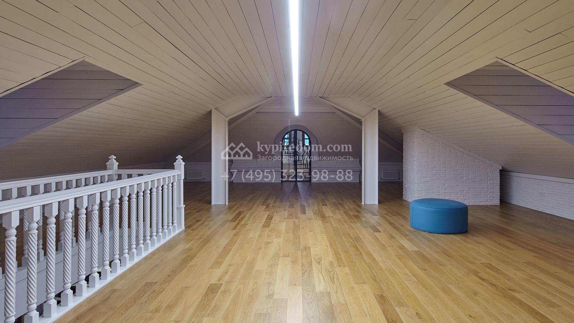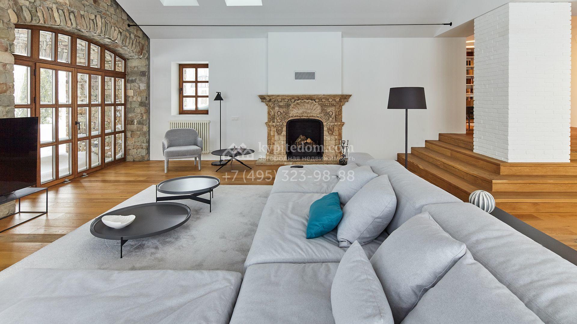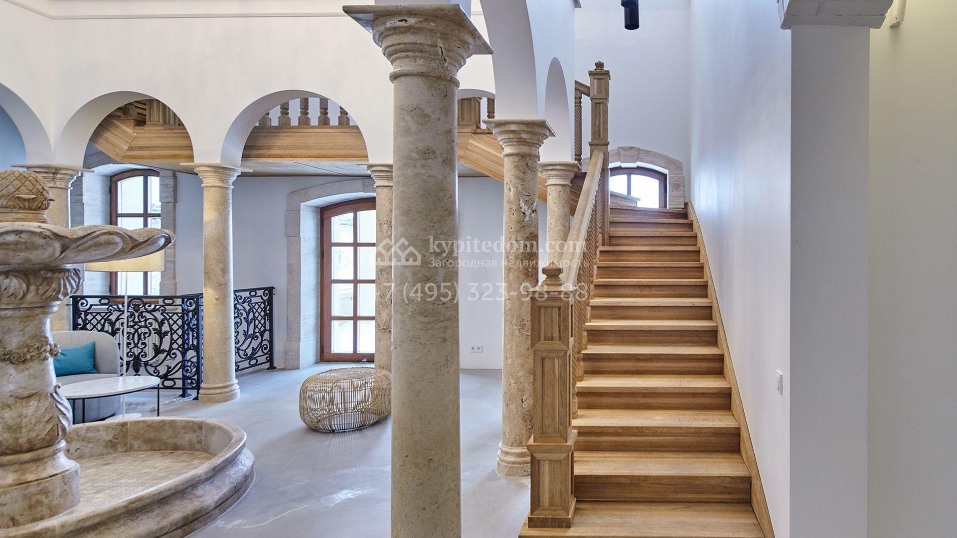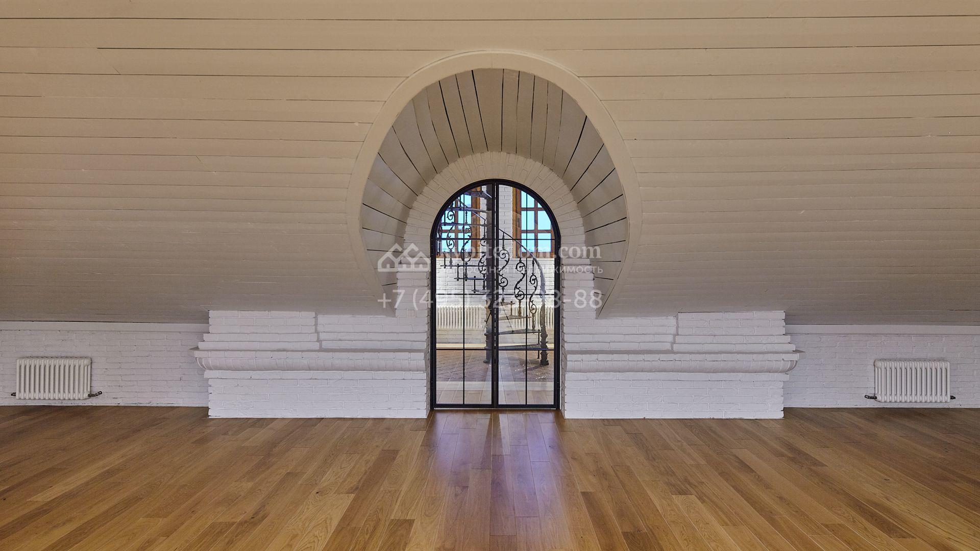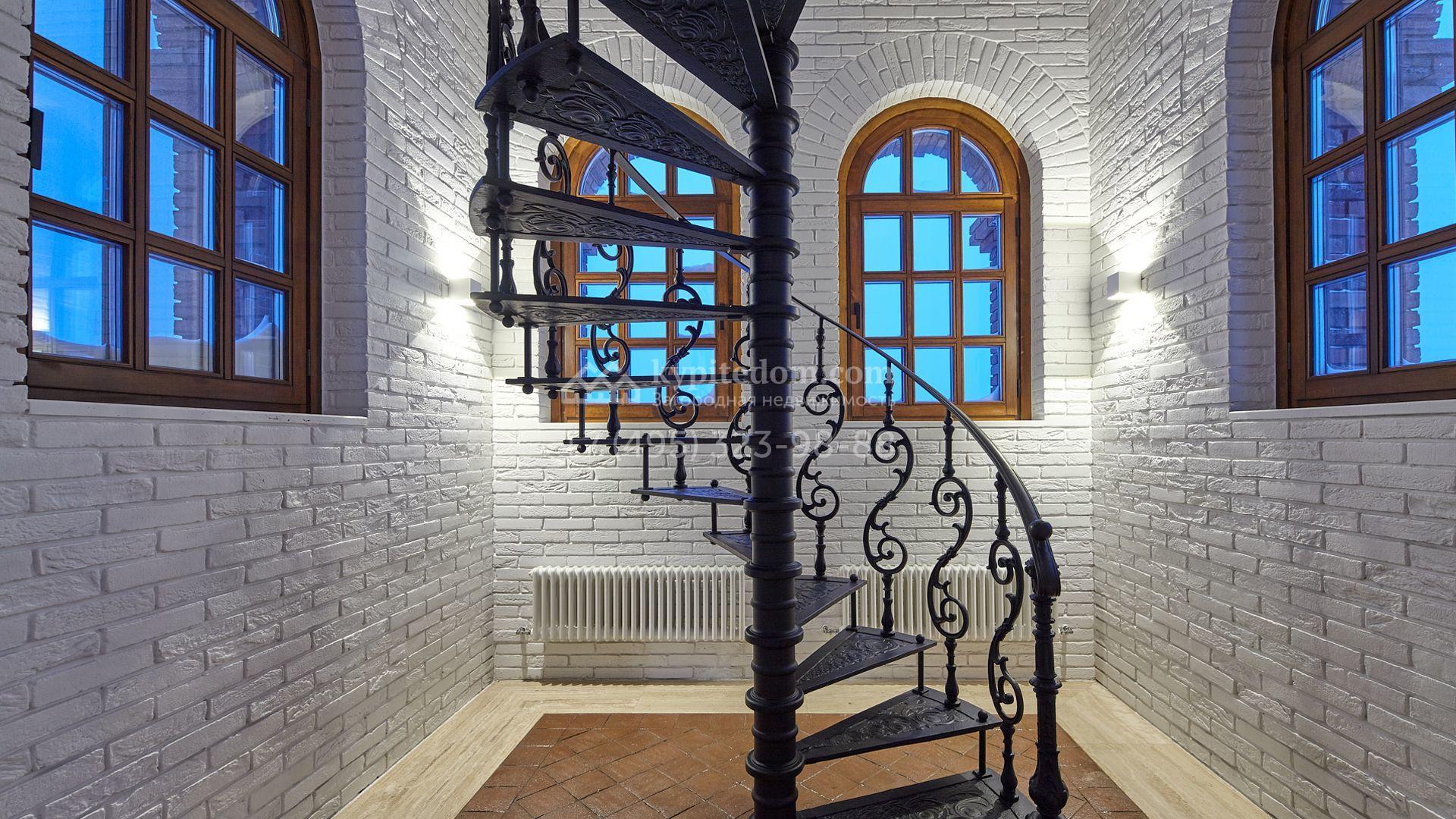 Загородная резиденция площадью 1500 м² построена на просторном полевом участке 32 сотки. Фасад здания с башней оформлен в итальянском стиле, облицован бежевой штукатуркой и украшен резными и коваными элементами. В отделке интерьера использованы травертин, гранит, дерево, а также интегрированы современные решения — стекло, ультрамодные световые технологии, системы хранения. Планировка дома включает двухсветный холл с фонтаном, 3 спальни, уютную гостиную с камином, объединенную со столовой, кухню, чайную комнату, кабинет-библиотеку, кинозал и террасу с уличным камином. Рядом с особняком расположены гараж на 1 машину, дом персонала и SPA-комплекс с бассейном. На участке выполнен ландшафтный дизайн, вымощена брусчастка, обустроена большая прогулочная зона с привезёнными из Италии деревьями.