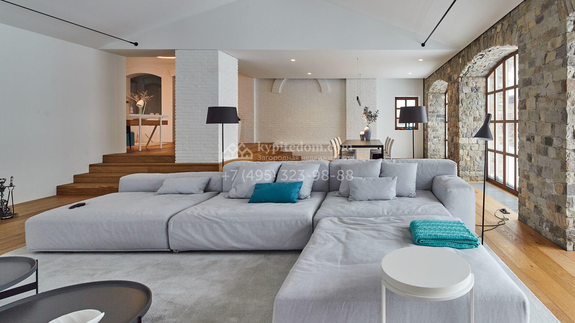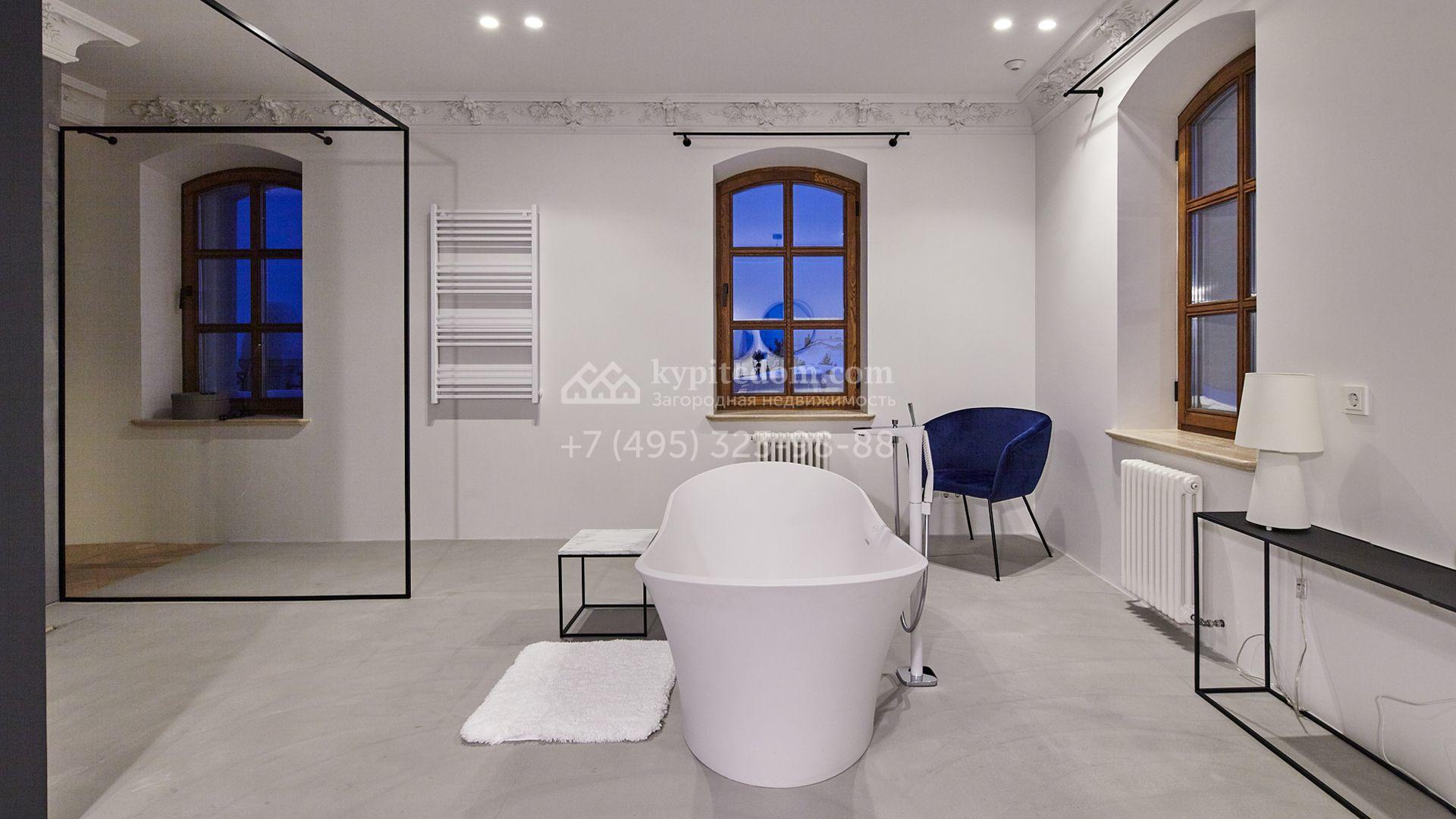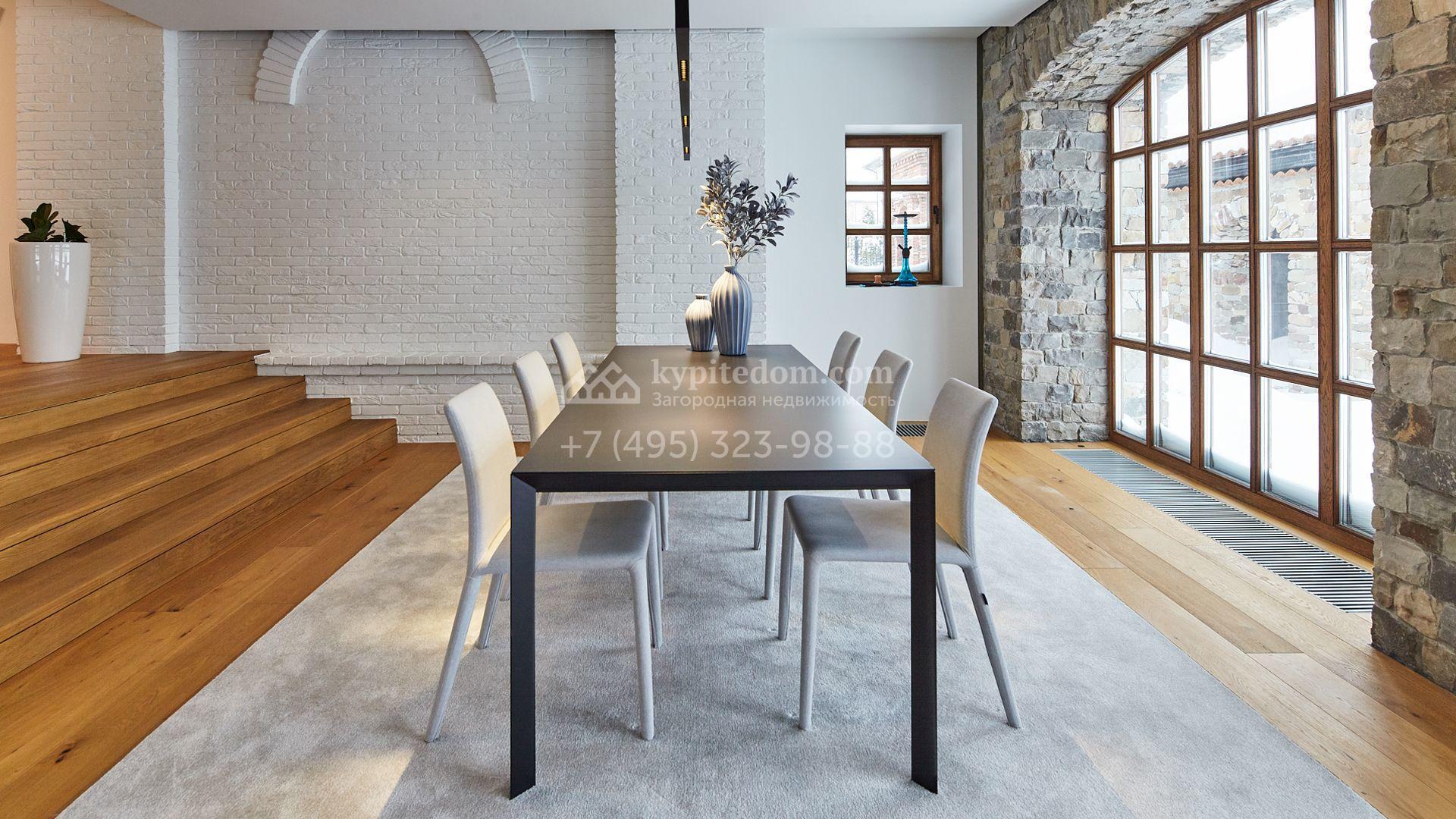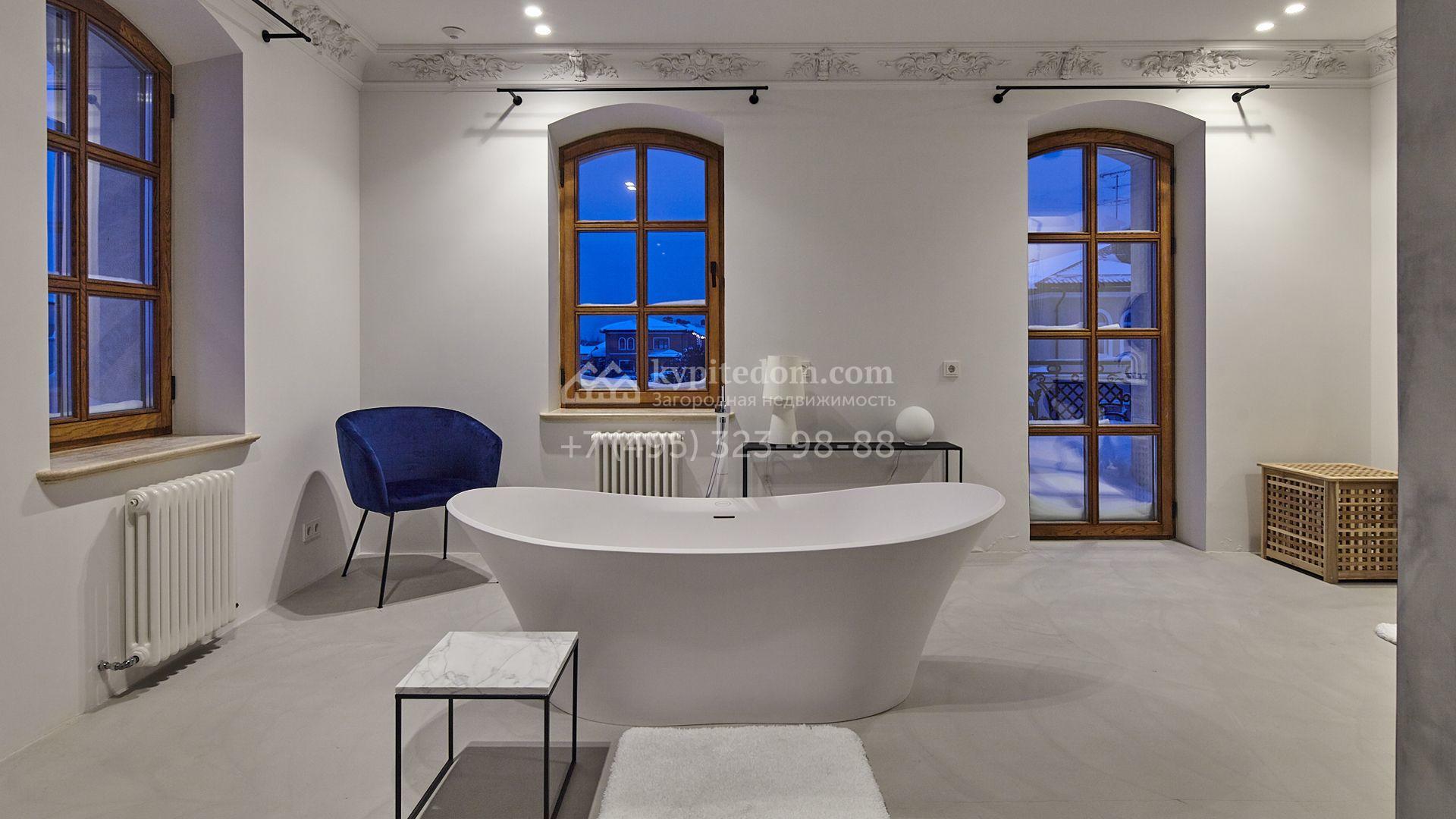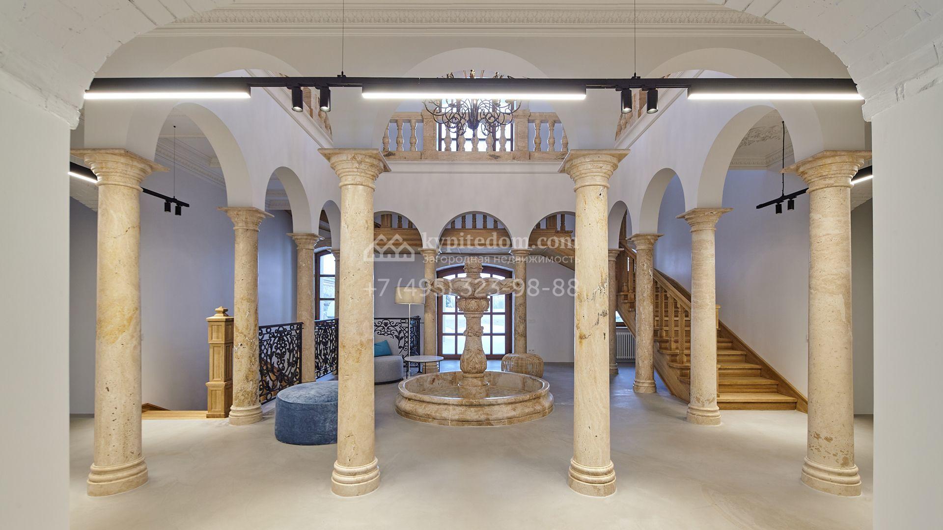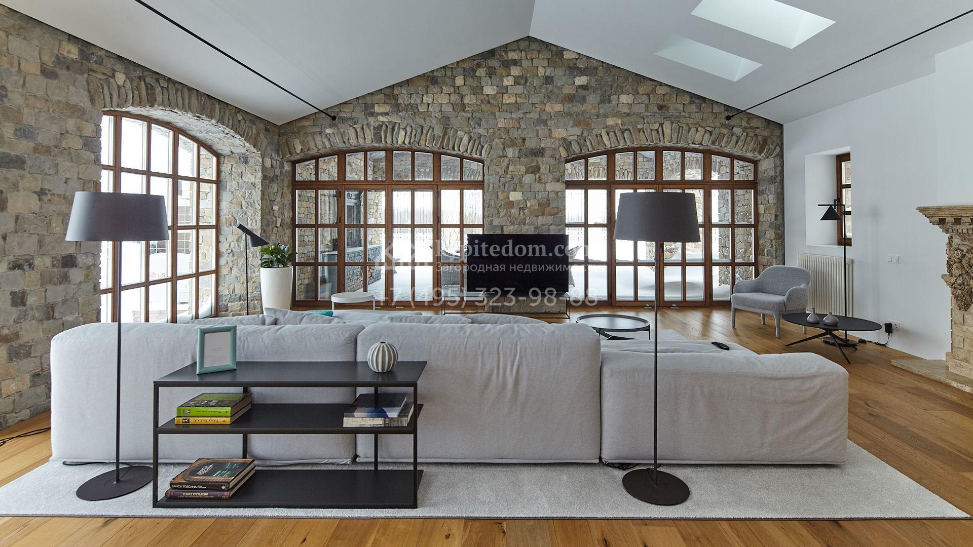 Загородная резиденция площадью 1500 м² построена на просторном полевом участке 32 сотки. Фасад здания с башней оформлен в итальянском стиле, облицован бежевой штукатуркой и украшен резными и коваными элементами. В отделке интерьера использованы травертин, гранит, дерево, а также интегрированы современные решения — стекло, ультрамодные световые технологии, системы хранения. Планировка дома включает двухсветный холл с фонтаном, 3 спальни, уютную гостиную с камином, объединенную со столовой, кухню, чайную комнату, кабинет-библиотеку, кинозал и террасу с уличным камином. Рядом с особняком расположены гараж на 1 машину, дом персонала и SPA-комплекс с бассейном. На участке выполнен ландшафтный дизайн, вымощена брусчастка, обустроена большая прогулочная зона с привезёнными из Италии деревьями.