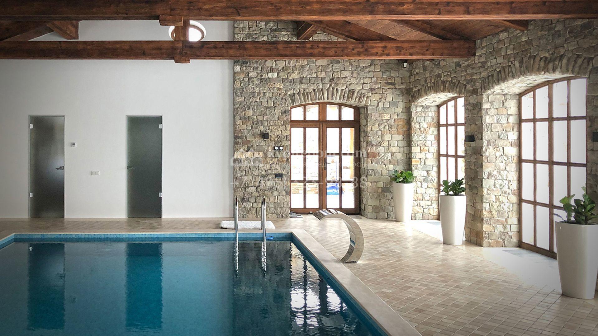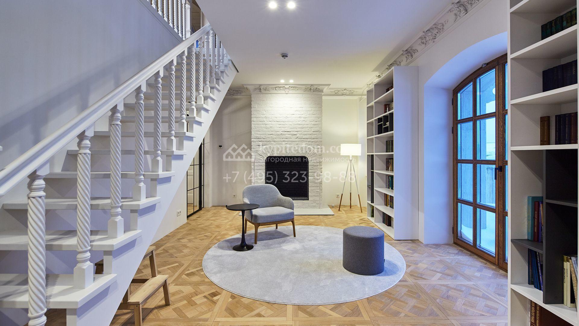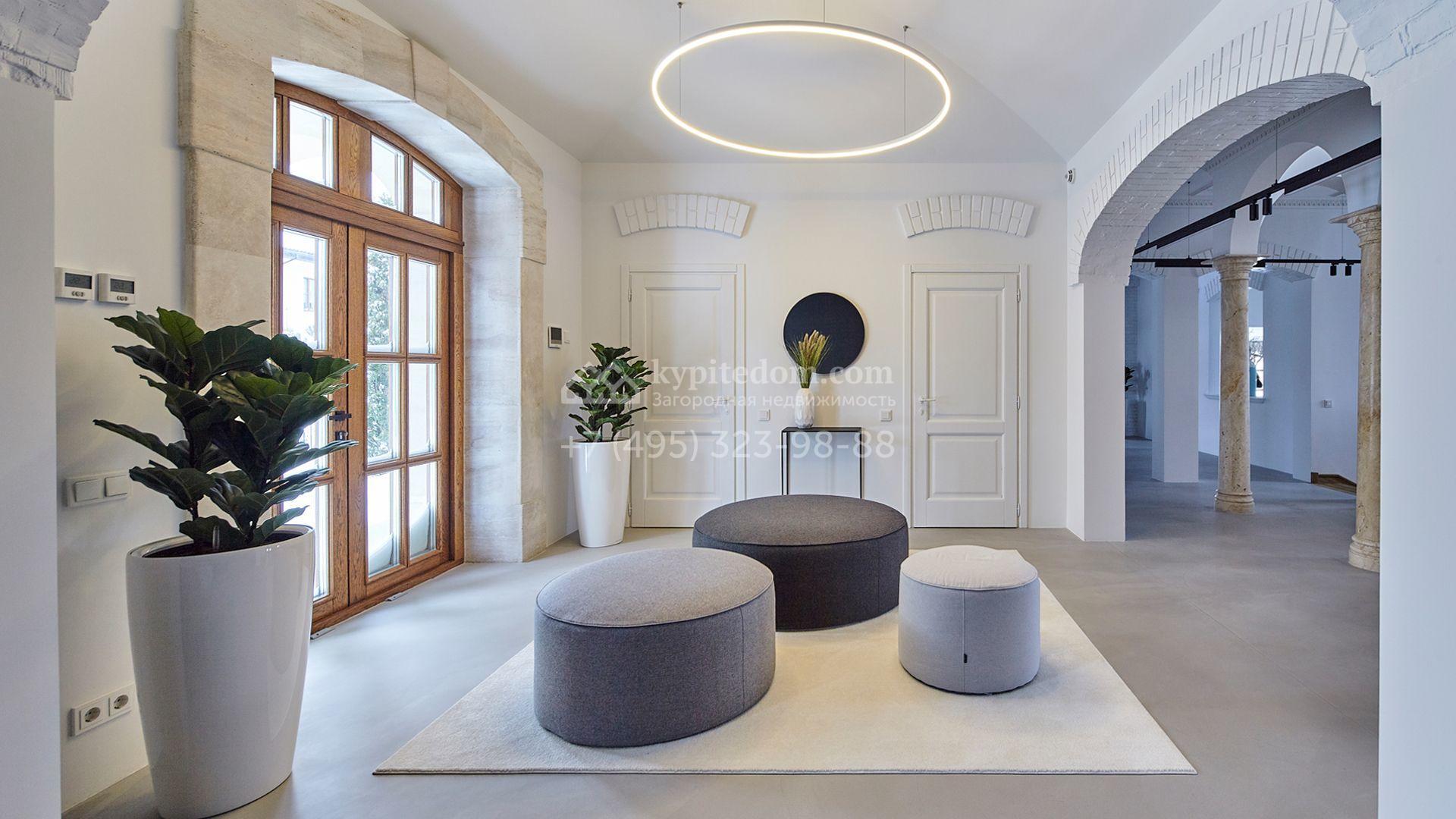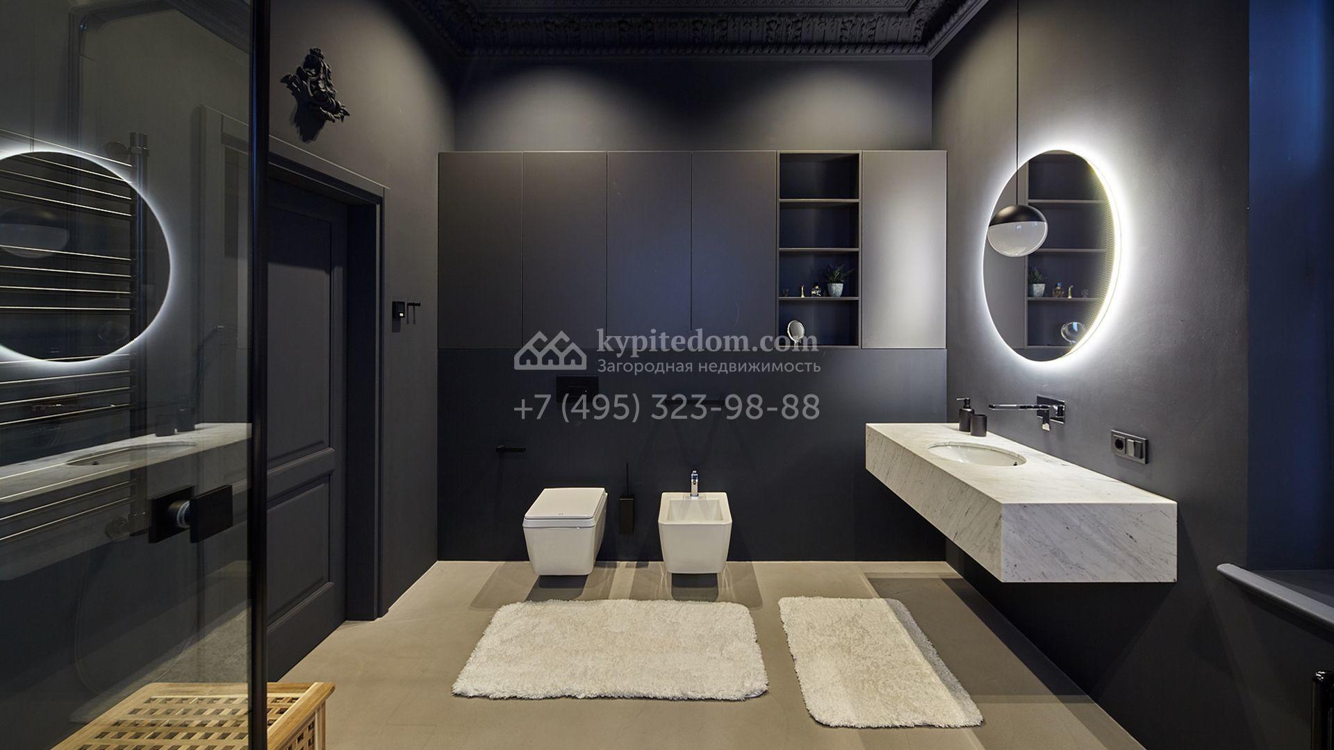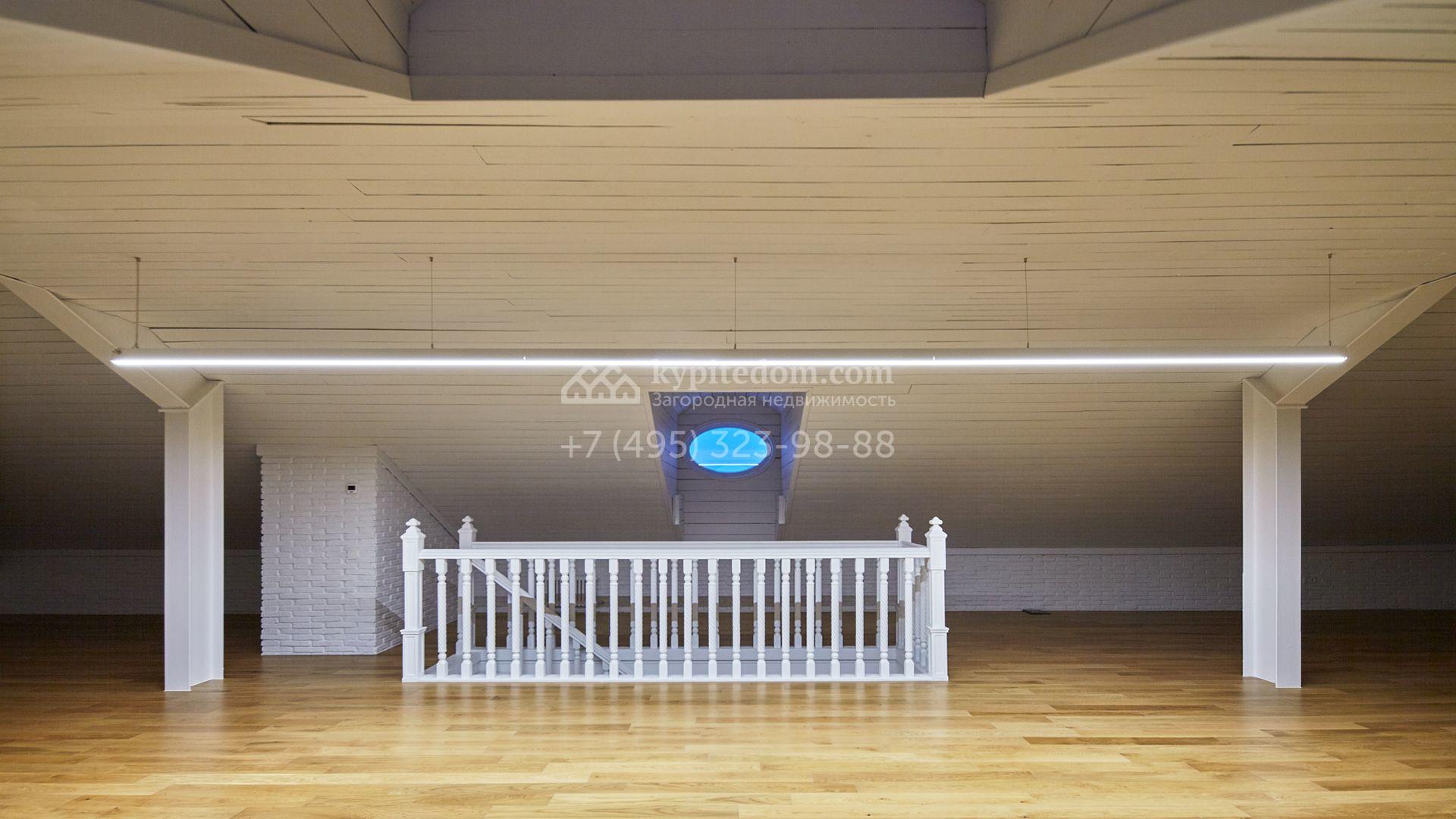 Загородная резиденция площадью 1500 м² построена на просторном полевом участке 32 сотки. Фасад здания с башней оформлен в итальянском стиле, облицован бежевой штукатуркой и украшен резными и коваными элементами. В отделке интерьера использованы травертин, гранит, дерево, а также интегрированы современные решения — стекло, ультрамодные световые технологии, системы хранения. Планировка дома включает двухсветный холл с фонтаном, 3 спальни, уютную гостиную с камином, объединенную со столовой, кухню, чайную комнату, кабинет-библиотеку, кинозал и террасу с уличным камином. Рядом с особняком расположены гараж на 1 машину, дом персонала и SPA-комплекс с бассейном. На участке выполнен ландшафтный дизайн, вымощена брусчастка, обустроена большая прогулочная зона с привезёнными из Италии деревьями.