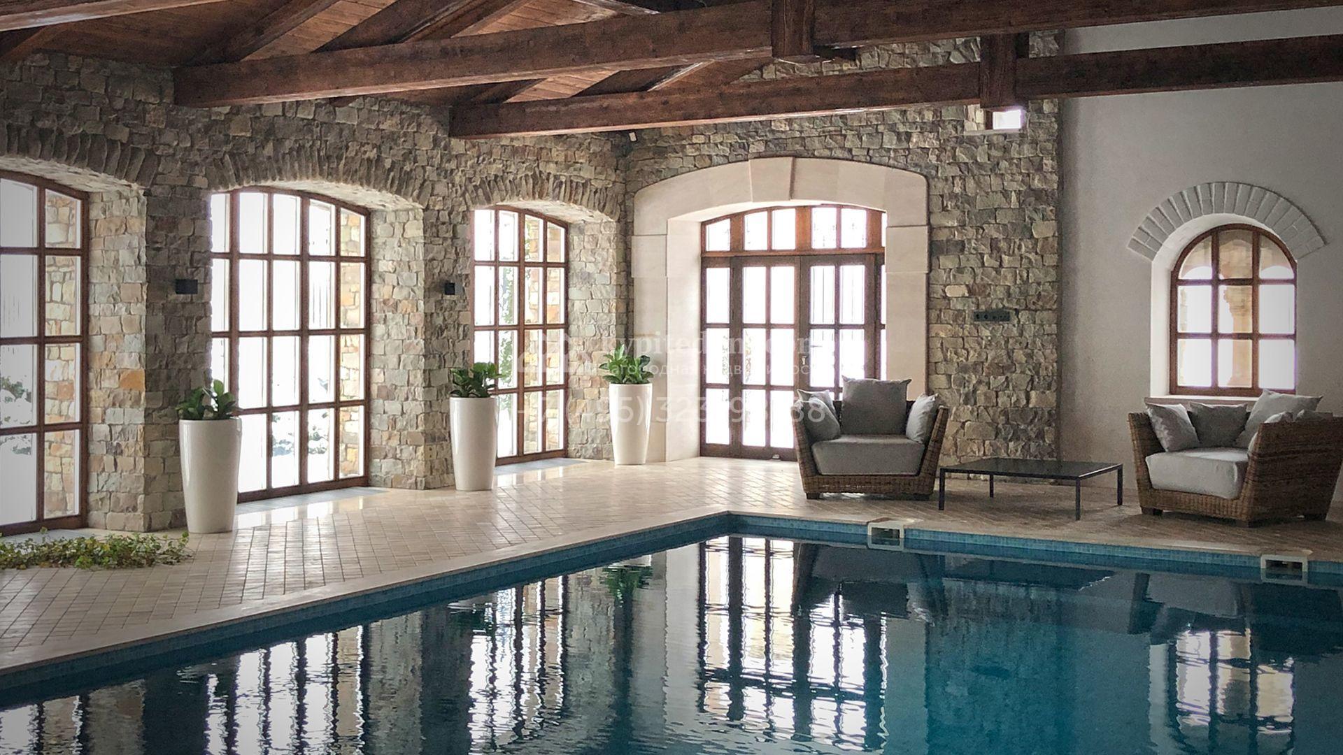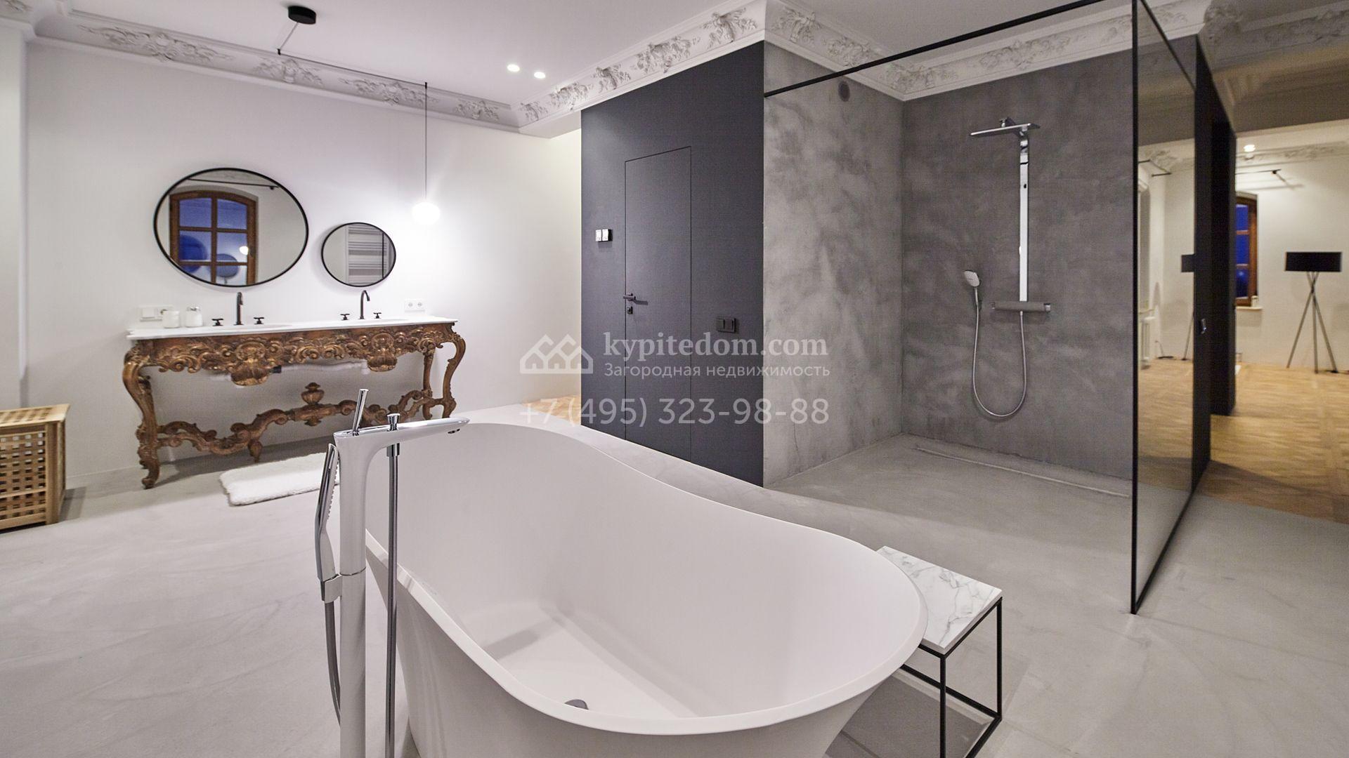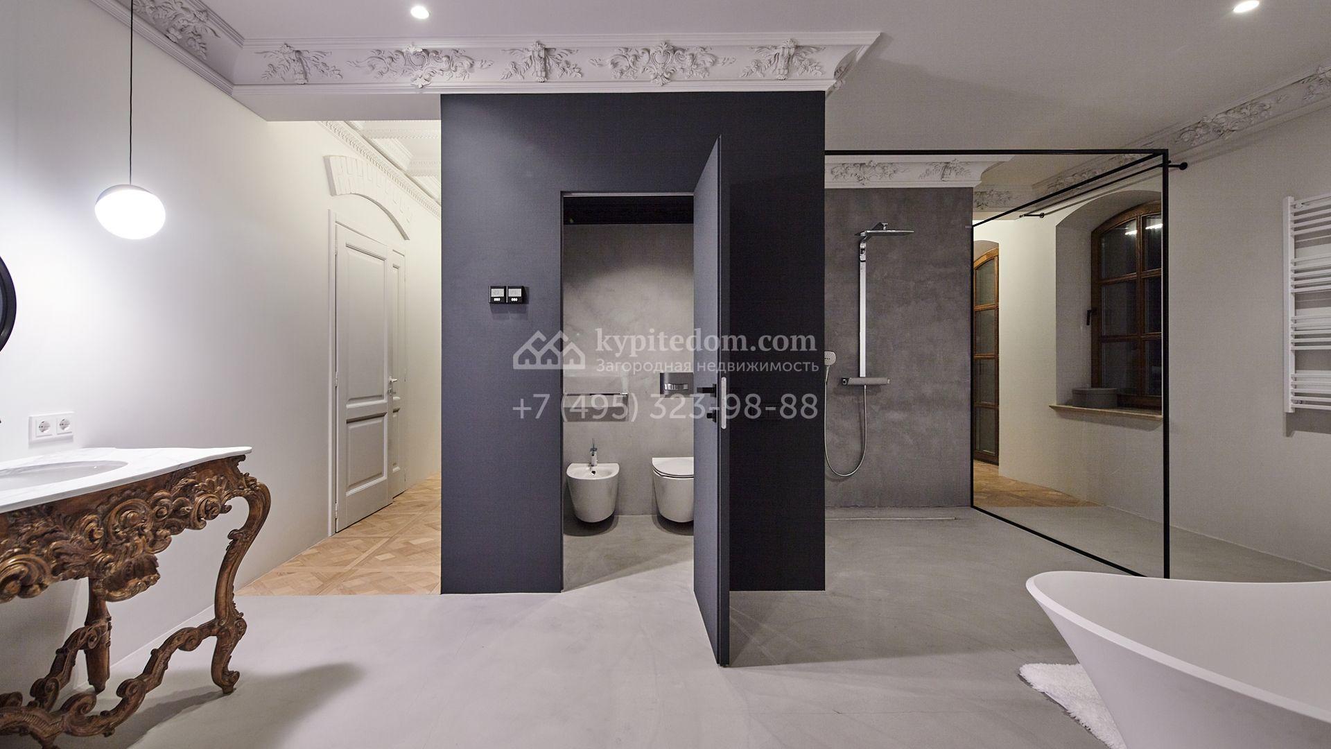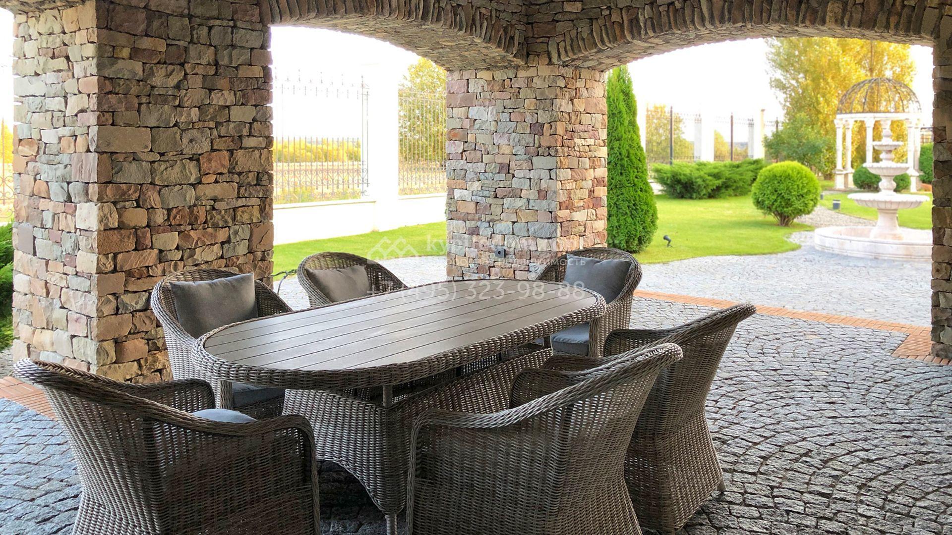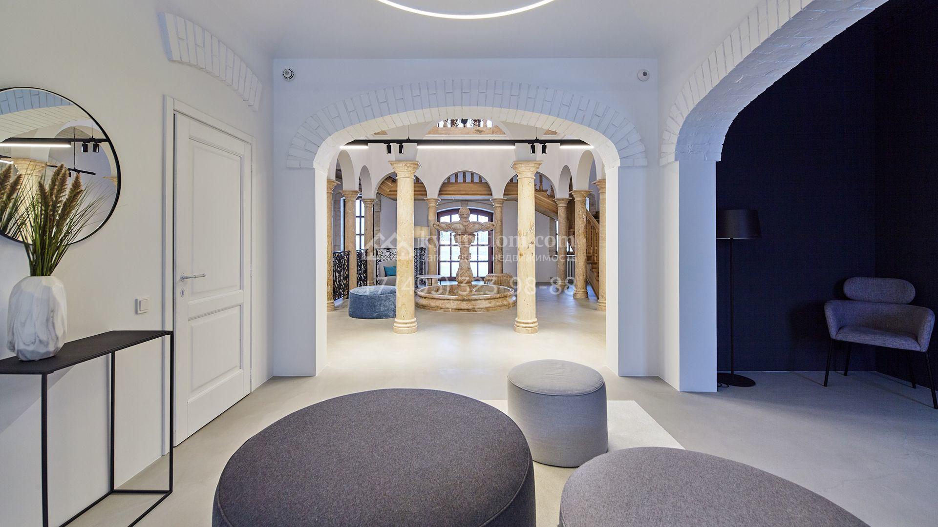 Загородная резиденция площадью 1500 м² построена на просторном полевом участке 32 сотки. Фасад здания с башней оформлен в итальянском стиле, облицован бежевой штукатуркой и украшен резными и коваными элементами. В отделке интерьера использованы травертин, гранит, дерево, а также интегрированы современные решения — стекло, ультрамодные световые технологии, системы хранения. Планировка дома включает двухсветный холл с фонтаном, 3 спальни, уютную гостиную с камином, объединенную со столовой, кухню, чайную комнату, кабинет-библиотеку, кинозал и террасу с уличным камином. Рядом с особняком расположены гараж на 1 машину, дом персонала и SPA-комплекс с бассейном. На участке выполнен ландшафтный дизайн, вымощена брусчастка, обустроена большая прогулочная зона с привезёнными из Италии деревьями.