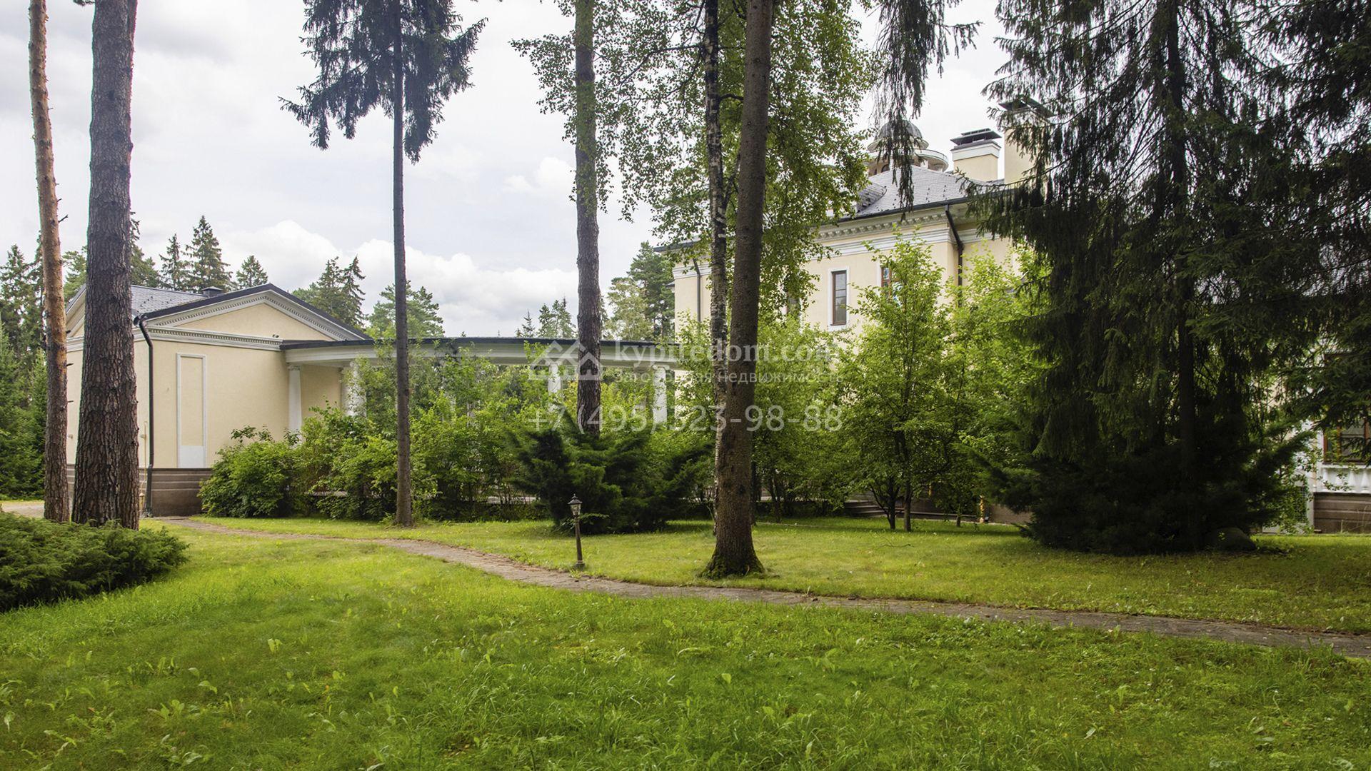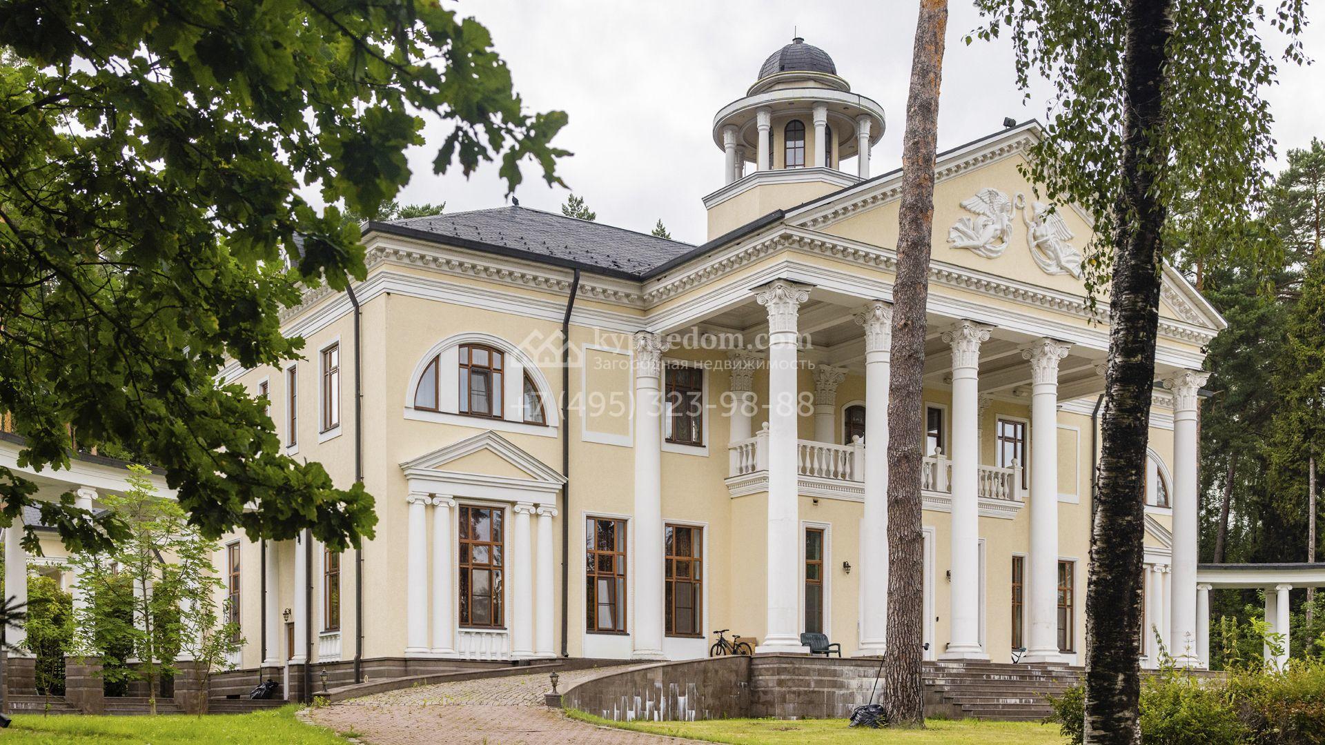 Особняк площадью 2000 м² расположен на участке 2 гектара среди вековых деревьев. Архитектура выдержана в классическом стиле второй половины XVIII века: фасад облицован светлой штукатуркой и украшен белыми колоннами с капителями, изящными наличниками, балясинами и резными декоративными элементами. Интерьеры продолжают дворцовый образ, заданный архитектурой — отделка выполнена из благородных материалов, а мебель изготовлена на заказ из натурального дерева и тканей.