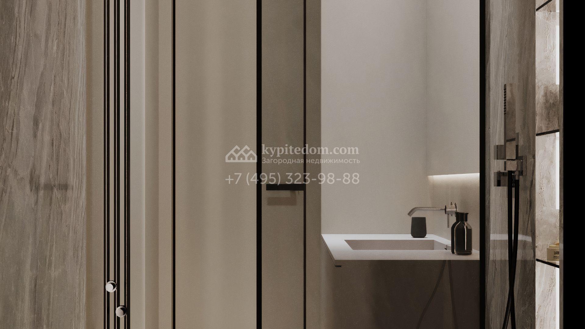Загородный дом по проекту «Эдельвейс» площадью 399 м² построен на полевом участке 10,9 соток с газоном. Лаконичный фасад с большими окнами выполнен в бело-серых цветах и декорирован подсветкой. Коттедж без отделки позволяет реализовать индивидуальный дизайн-проект. В доме разместили 4 спальни с гардеробными и санузлами, просторную гостиную, перетекающую в столовую, кухню с кладовой. Предусмотрены встроенный гараж на 2 машины и несколько террас, где можно обустроить зоны отдыха.