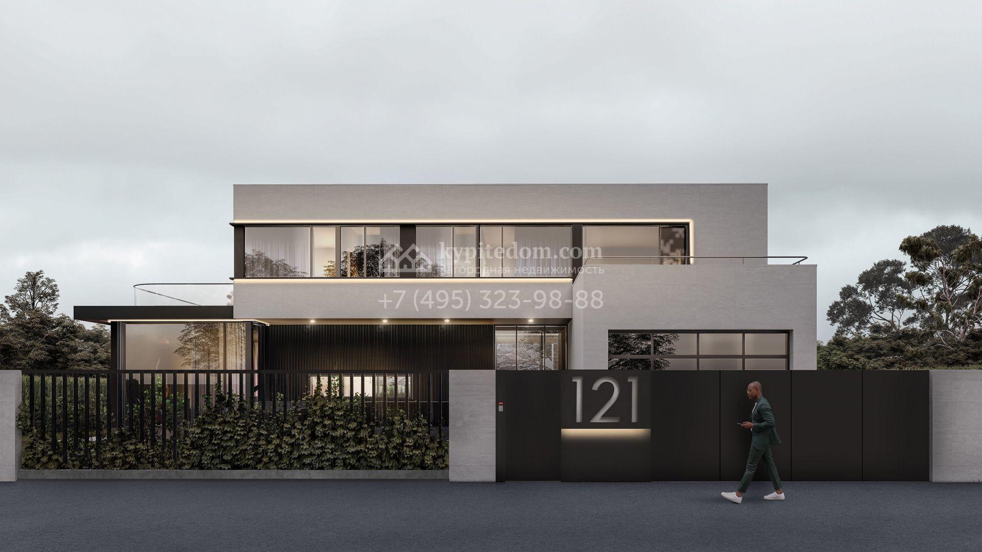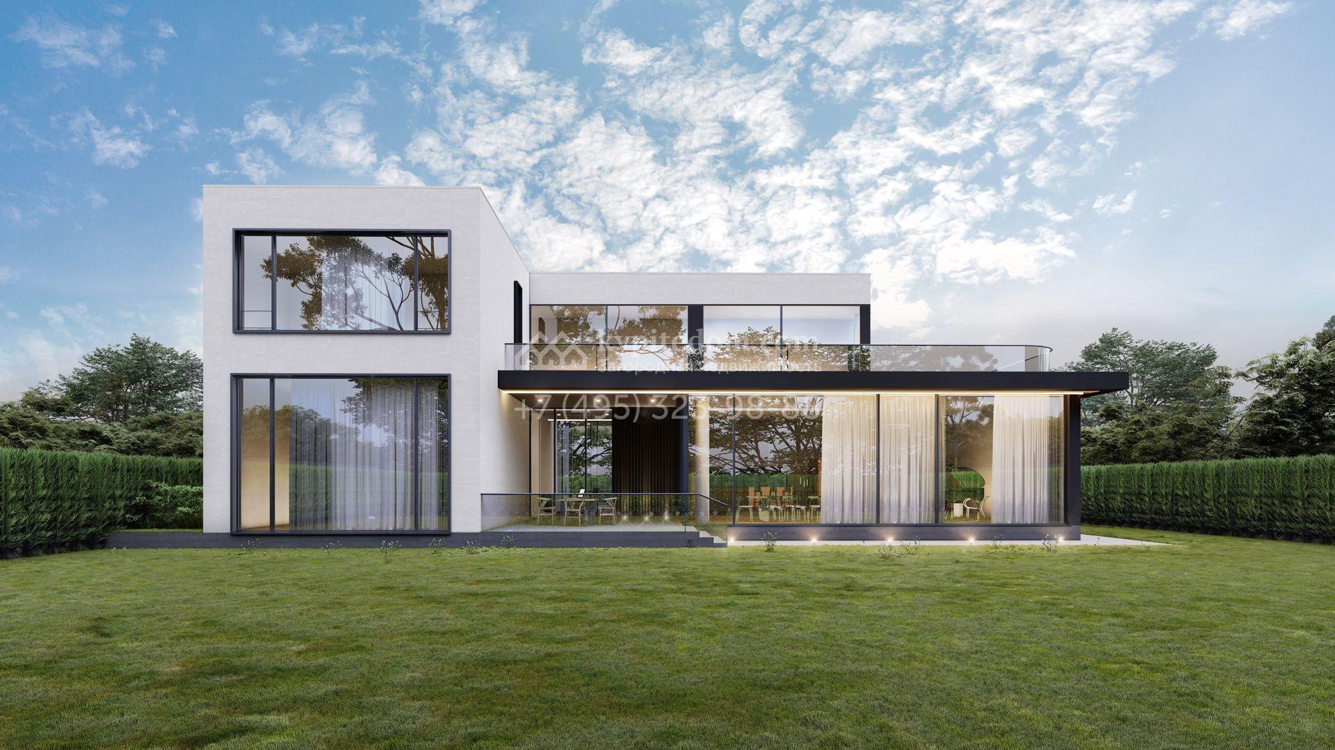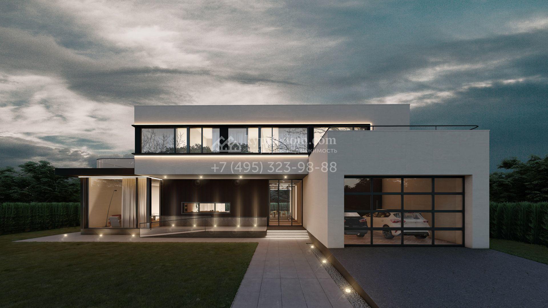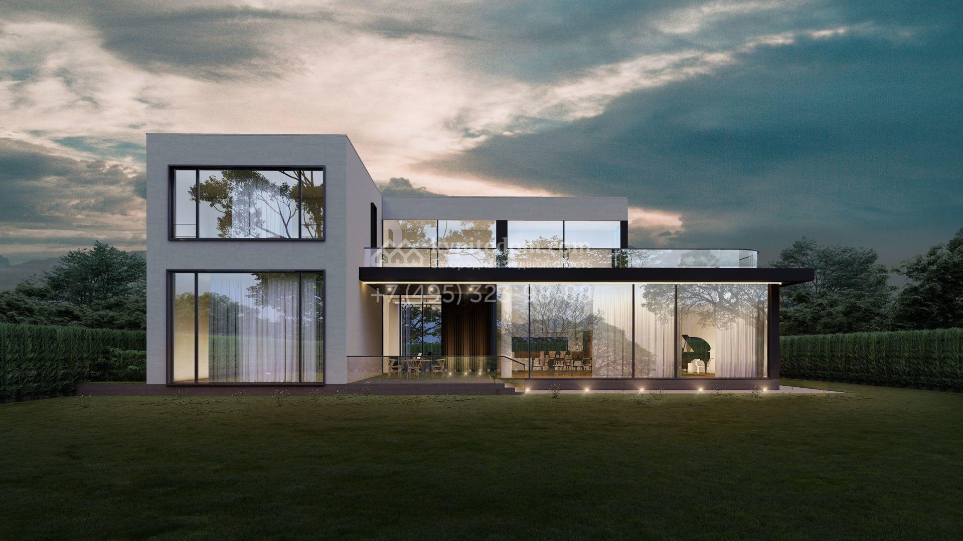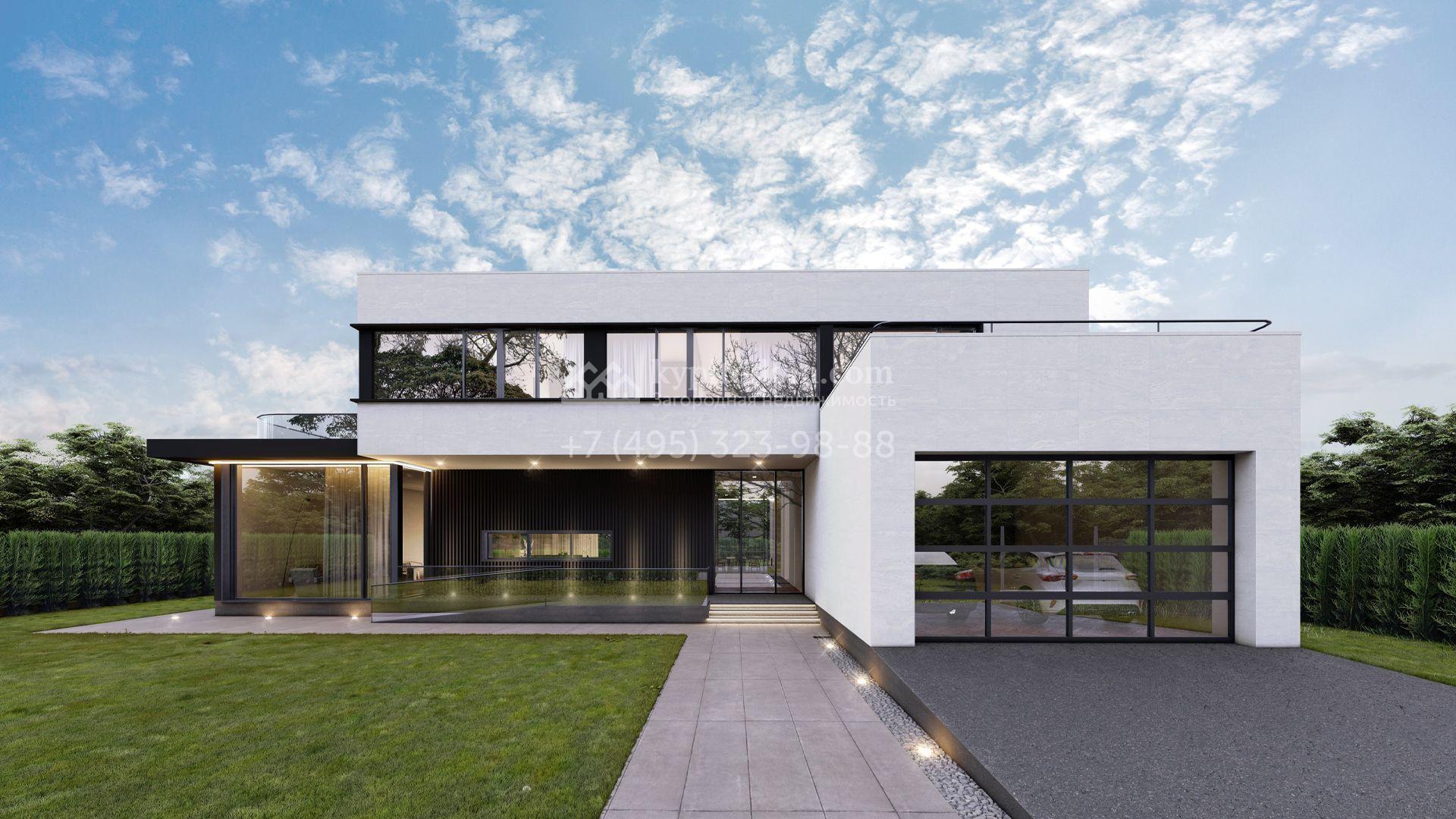 Загородный дом по проекту «Эдем» площадью 581 м² построен на просторном полевом участке 16,2 сотки с газоном. Минималистичный фасад с панорамными окнами в стиле «хай-тек» выполнен в белом цвете и декорирован подсветкой. Коттедж без отделки позволяет реализовать индивидуальный дизайн-проект. В доме разместили 5 спален с гардеробными и санузлами, просторную гостиную, перетекающую в столовую, кухню с кладовой. Предусмотрены встроенный гараж на 2 машины и несколько террас, где можно обустроить зоны отдыха.